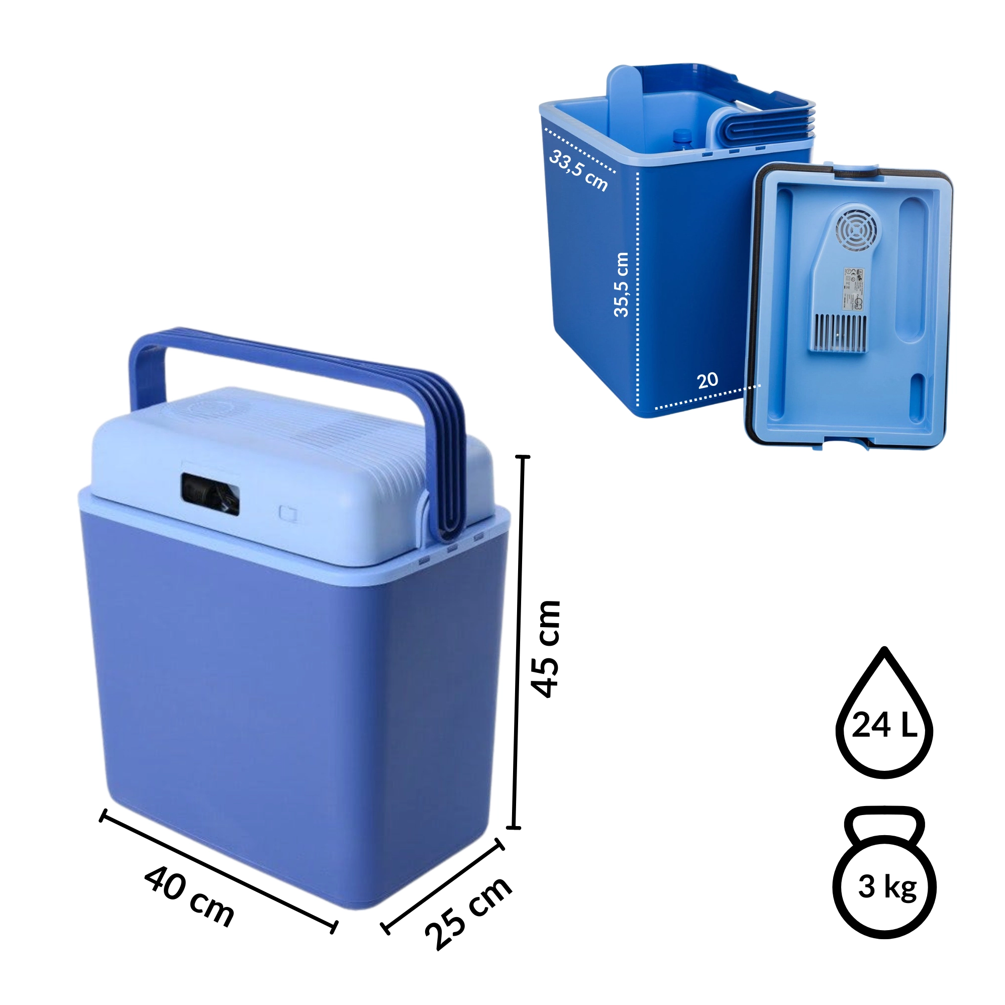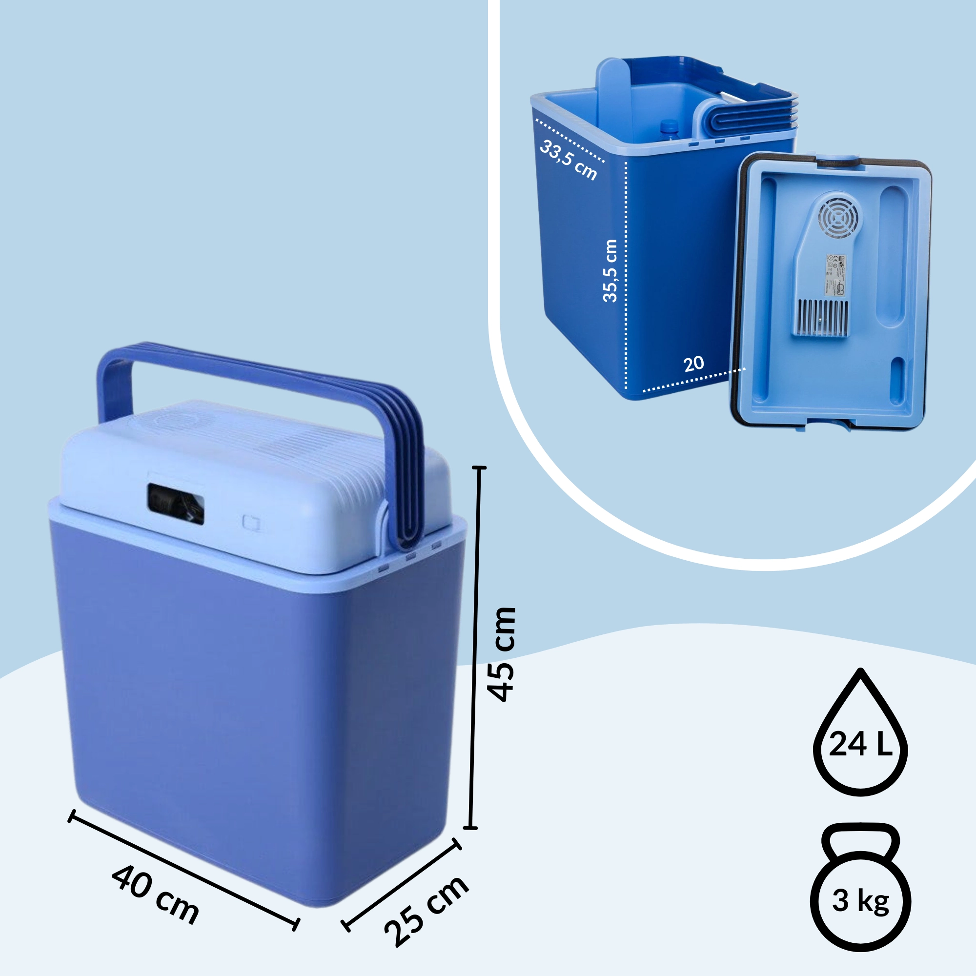 • Praktische capaciteit van 24 l – ruimte voor hoge flessen en voldoende proviand.
