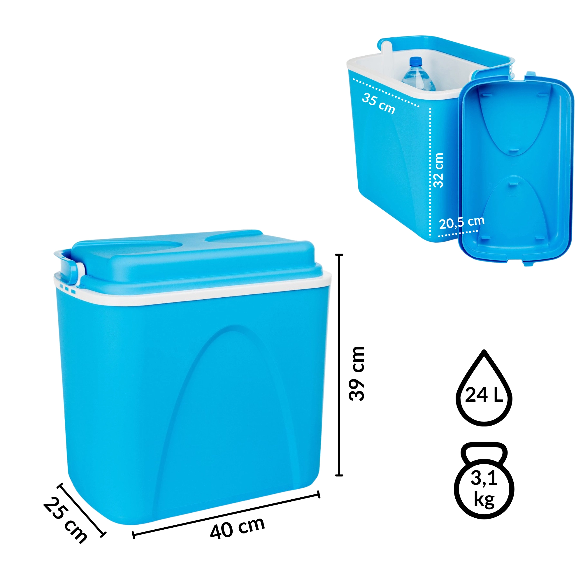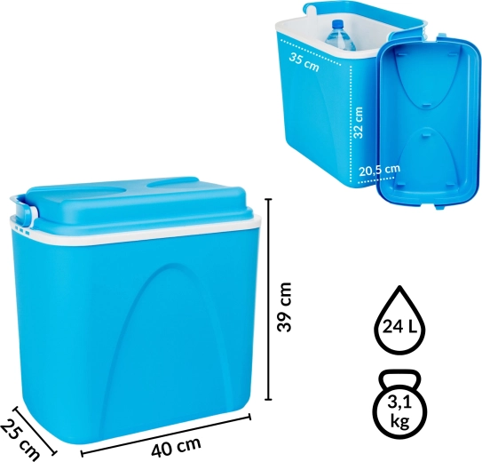 De KAMAI koelbox met een inhoud van 24 liter houdt je etenswaren en dranken langer koel dankzij de hoogwaardige EPS-isolatie en doordachte circulatie van koude lucht. De binnenruimte is ontworpen om comfortabel hoge flessen van 1,5–2 l evenals blikjes, lunchboxen of fruit te herbergen.