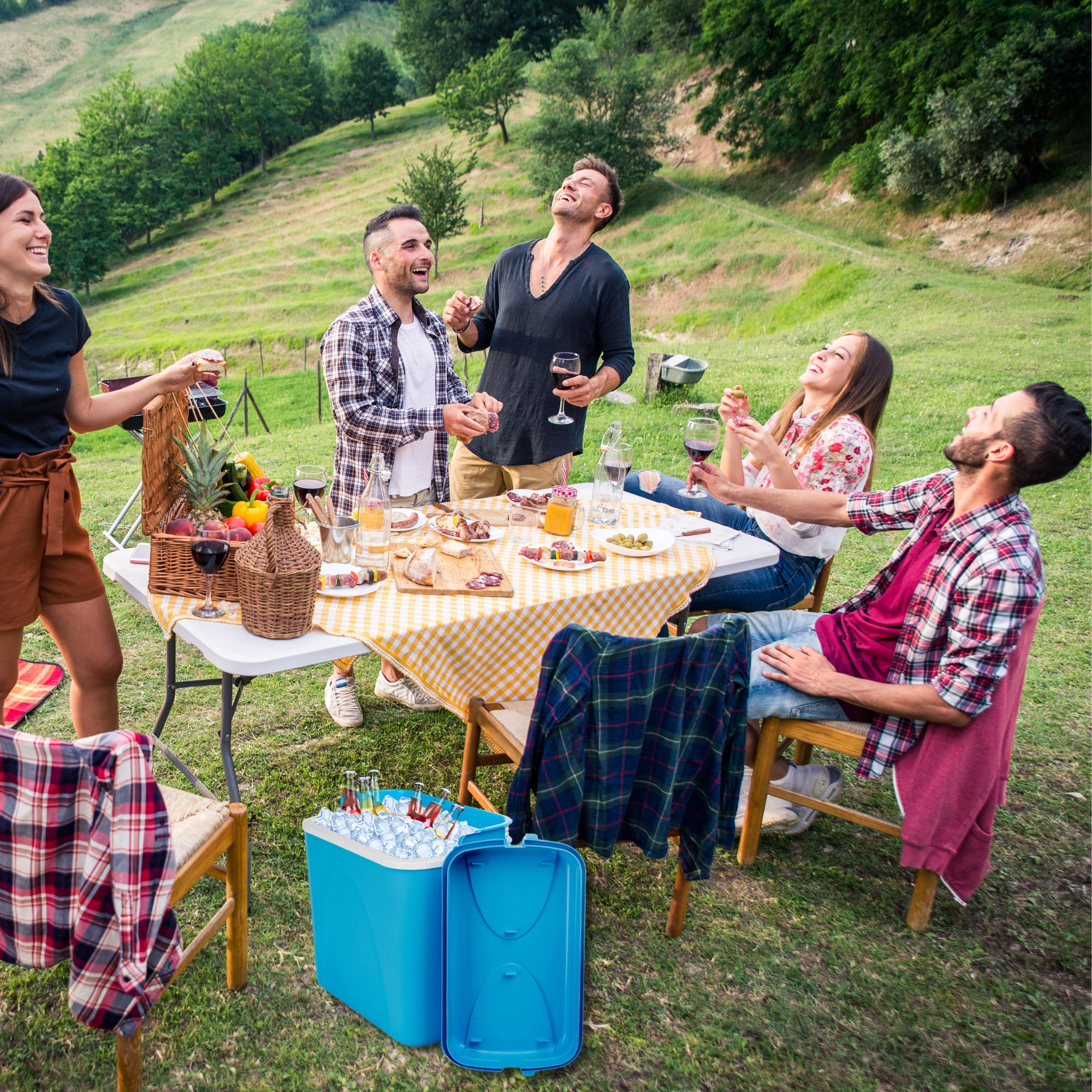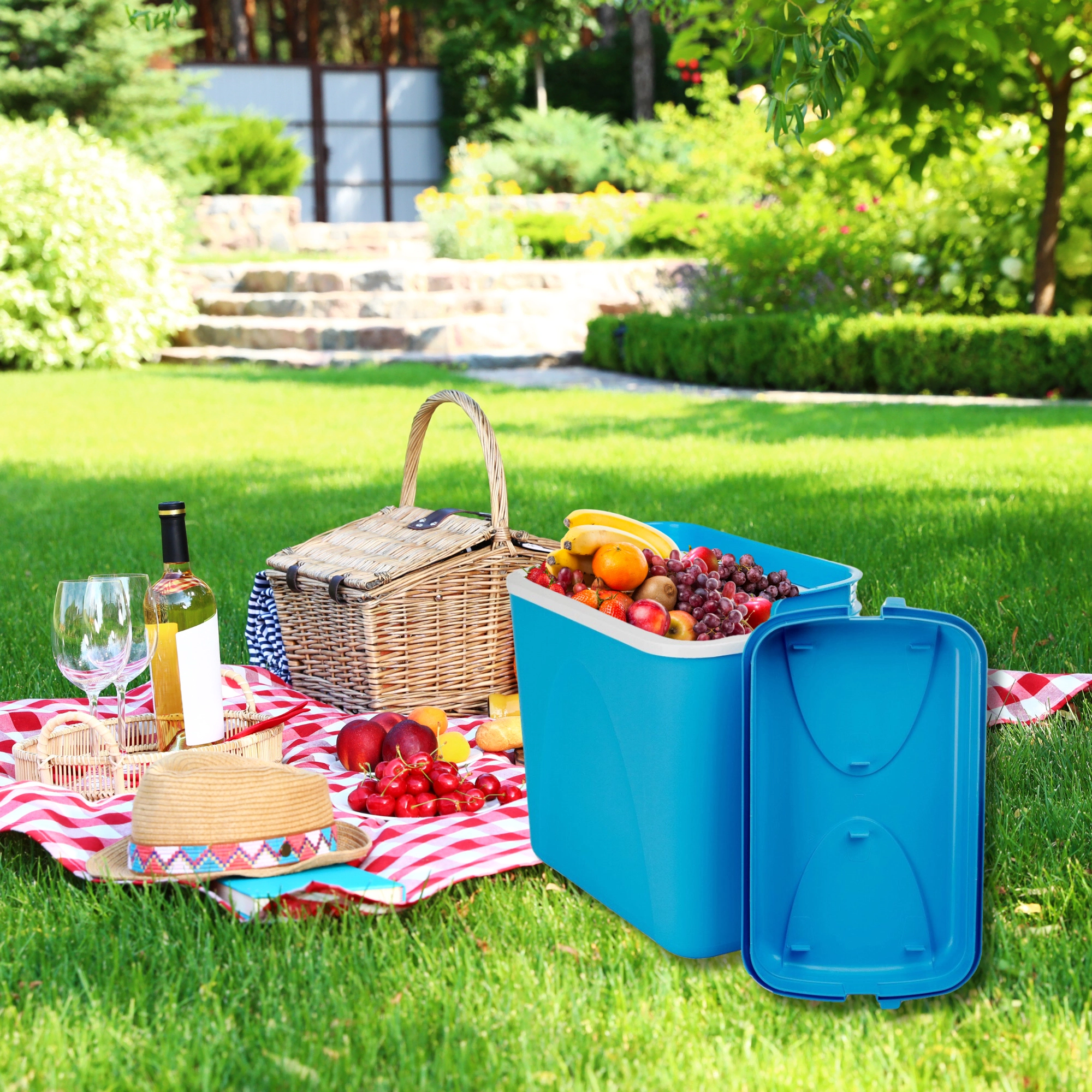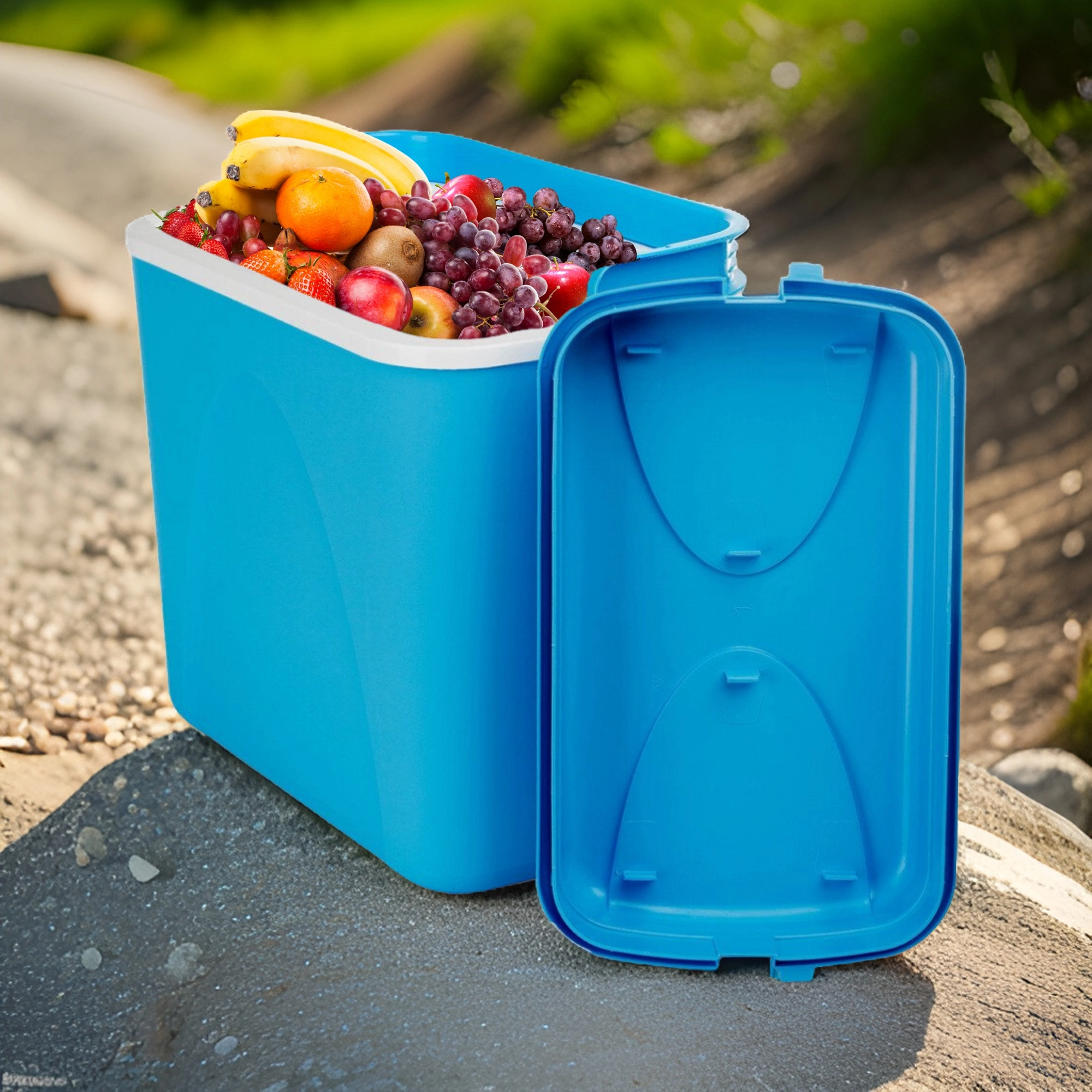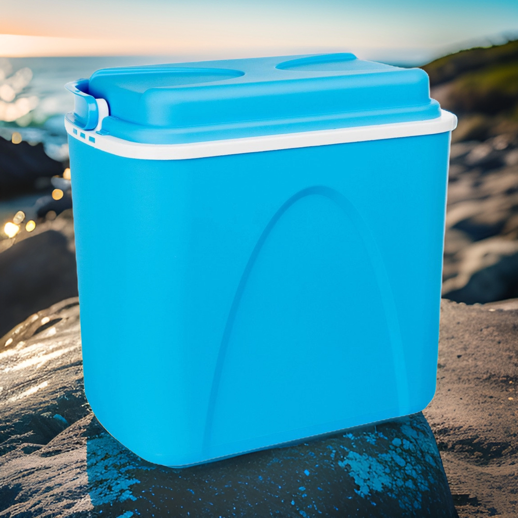 Licht en stevig polypropyleen en een geprofileerd handvat voor comfortabel dragen. Perfect voor picknicks, kamperen en het strand.