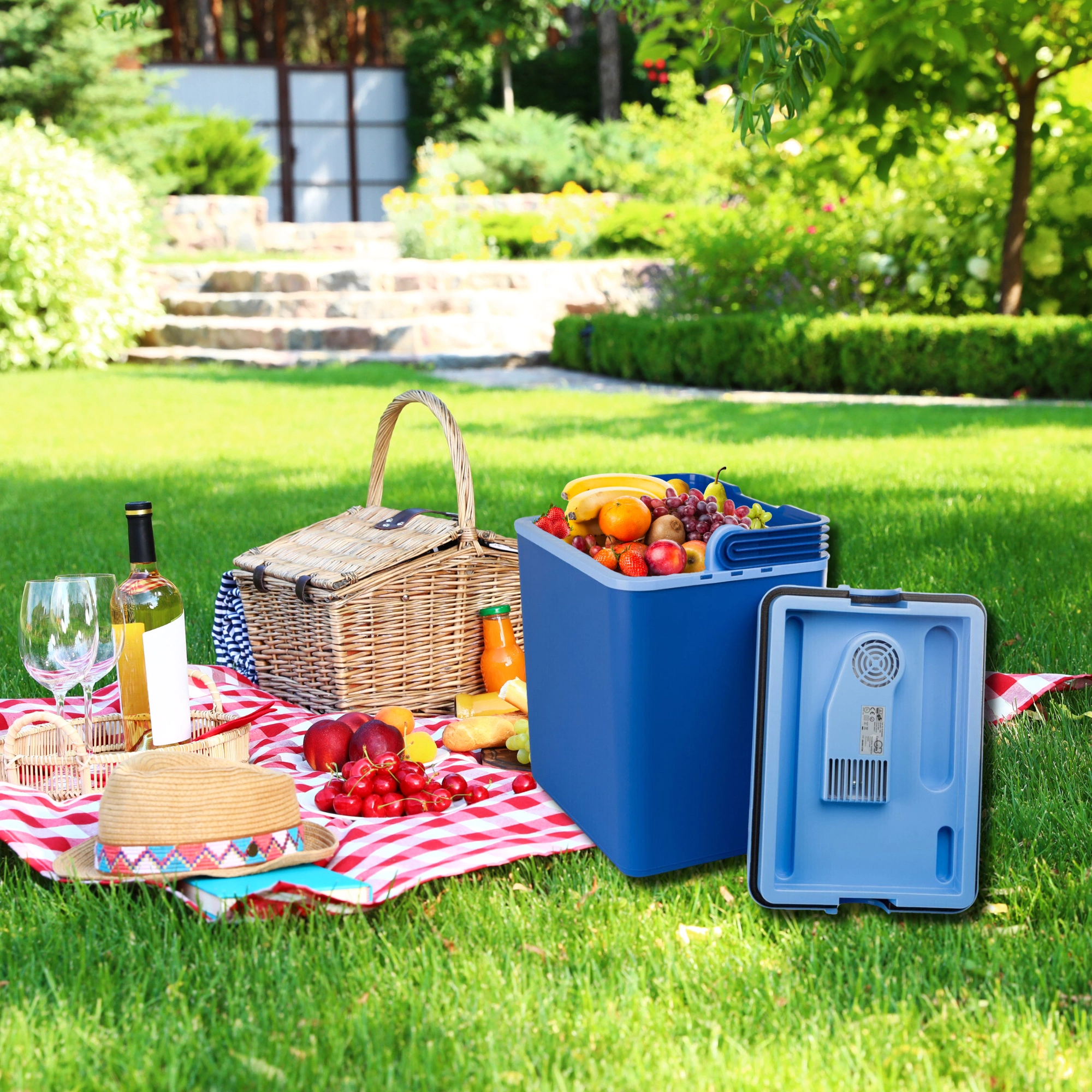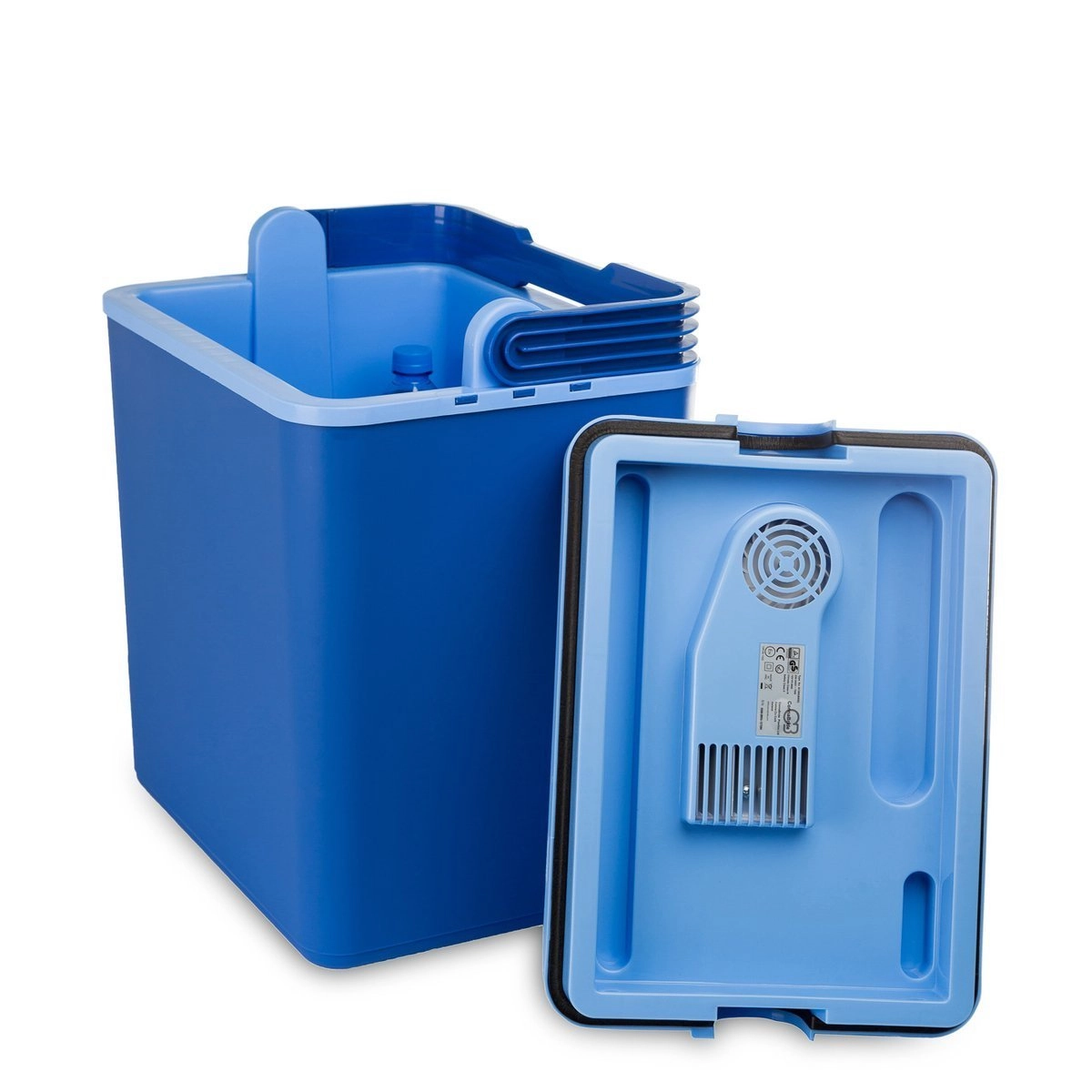 Het model met ECO-stand draait merkbaar stiller en zuiniger, waardoor het ook geschikt is voor nachtelijk gebruik in een hotel of vakantiehuisje. Veilig dragen wordt vergemakkelijkt door een vergrendelbare draaghendel die ongewenst openen van het deksel voorkomt. De binnenruimte biedt plaats aan 1,5 l-flessen in verticale positie; de kabels zijn inbegrepen en hebben een eigen geïntegreerd opbergvak.