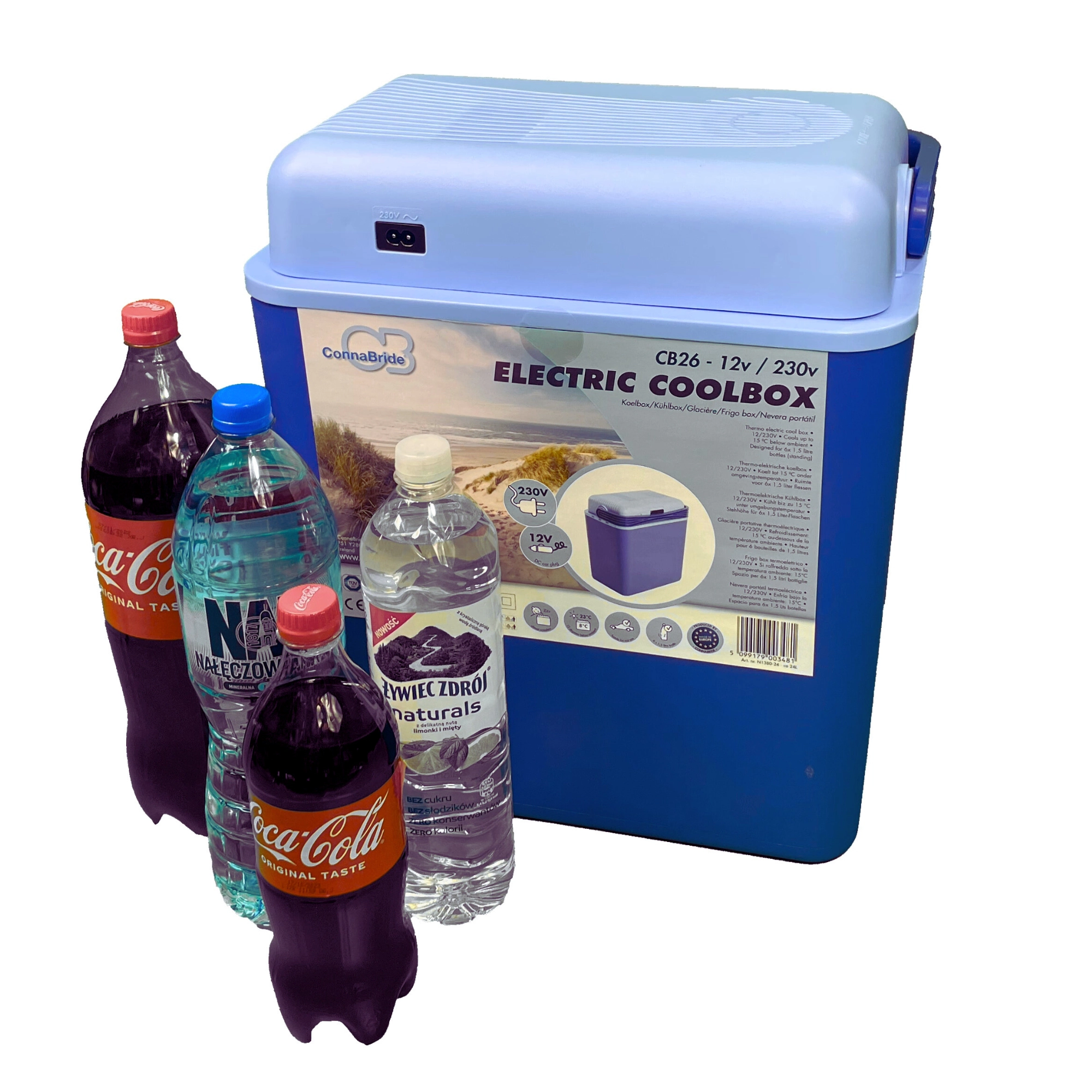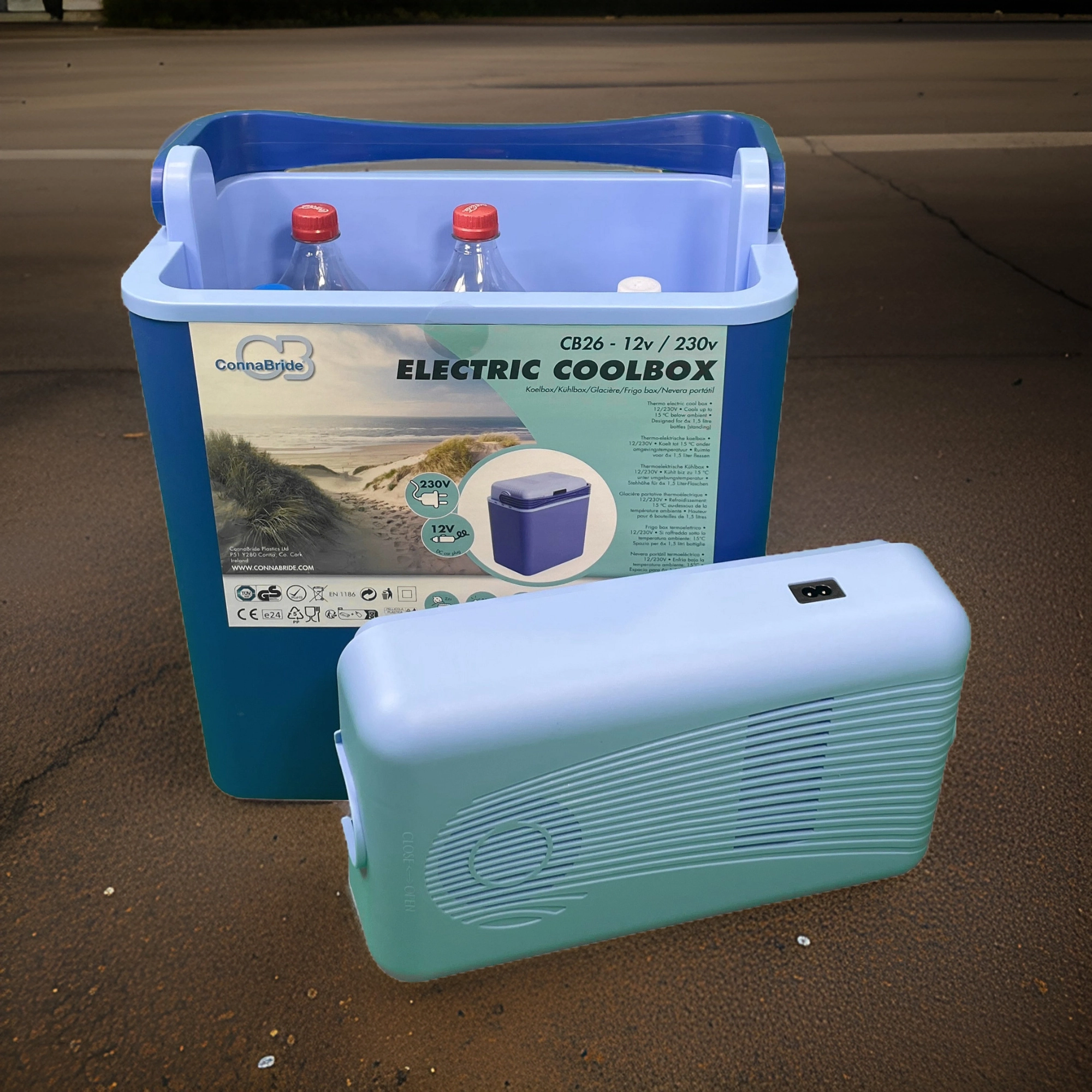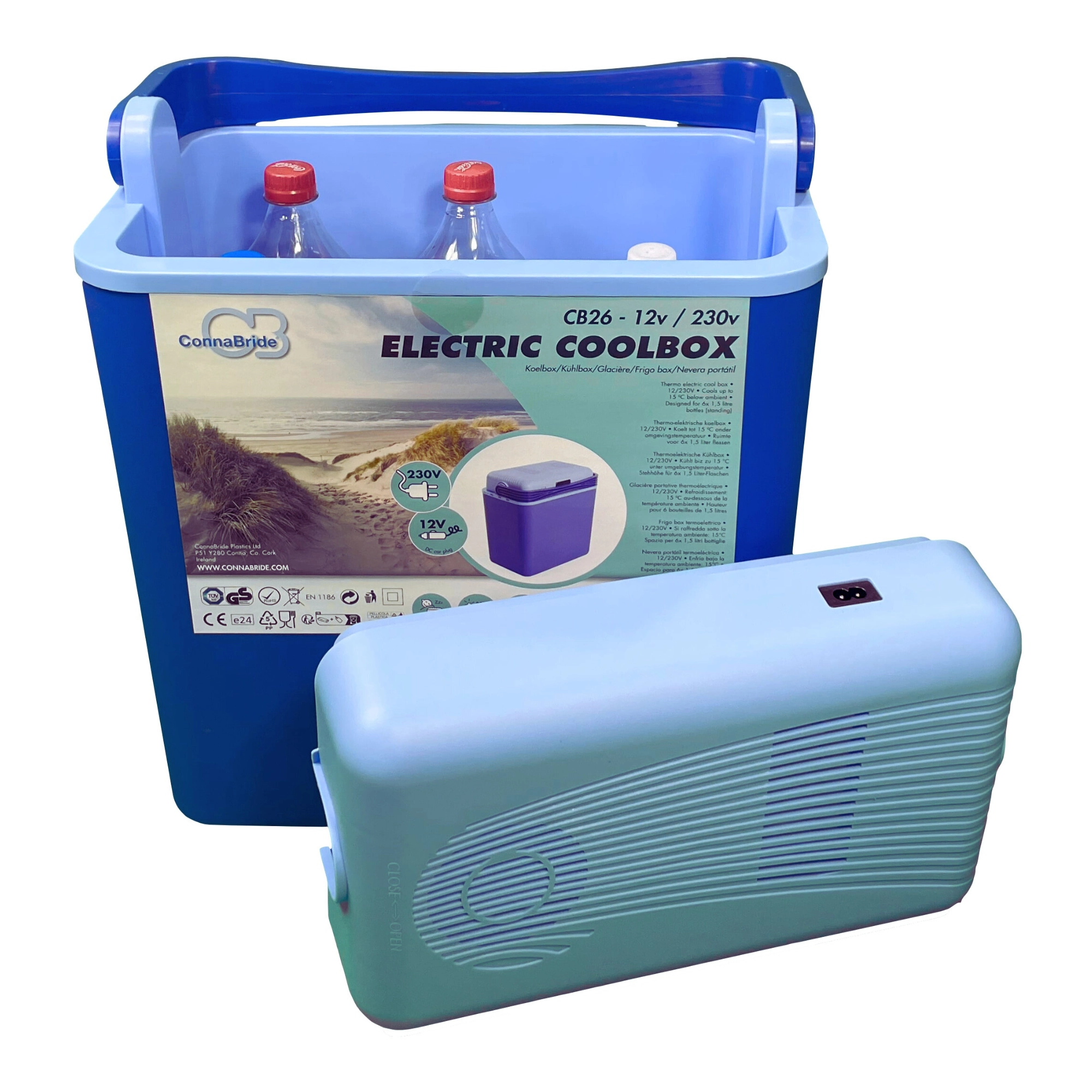 Koel onderweg via de 12V-aansluiting of schakel na aankomst over op 230V. De geïntegreerde transformator en beide voedingskabels in de verpakking geven je maximale flexibiliteit.