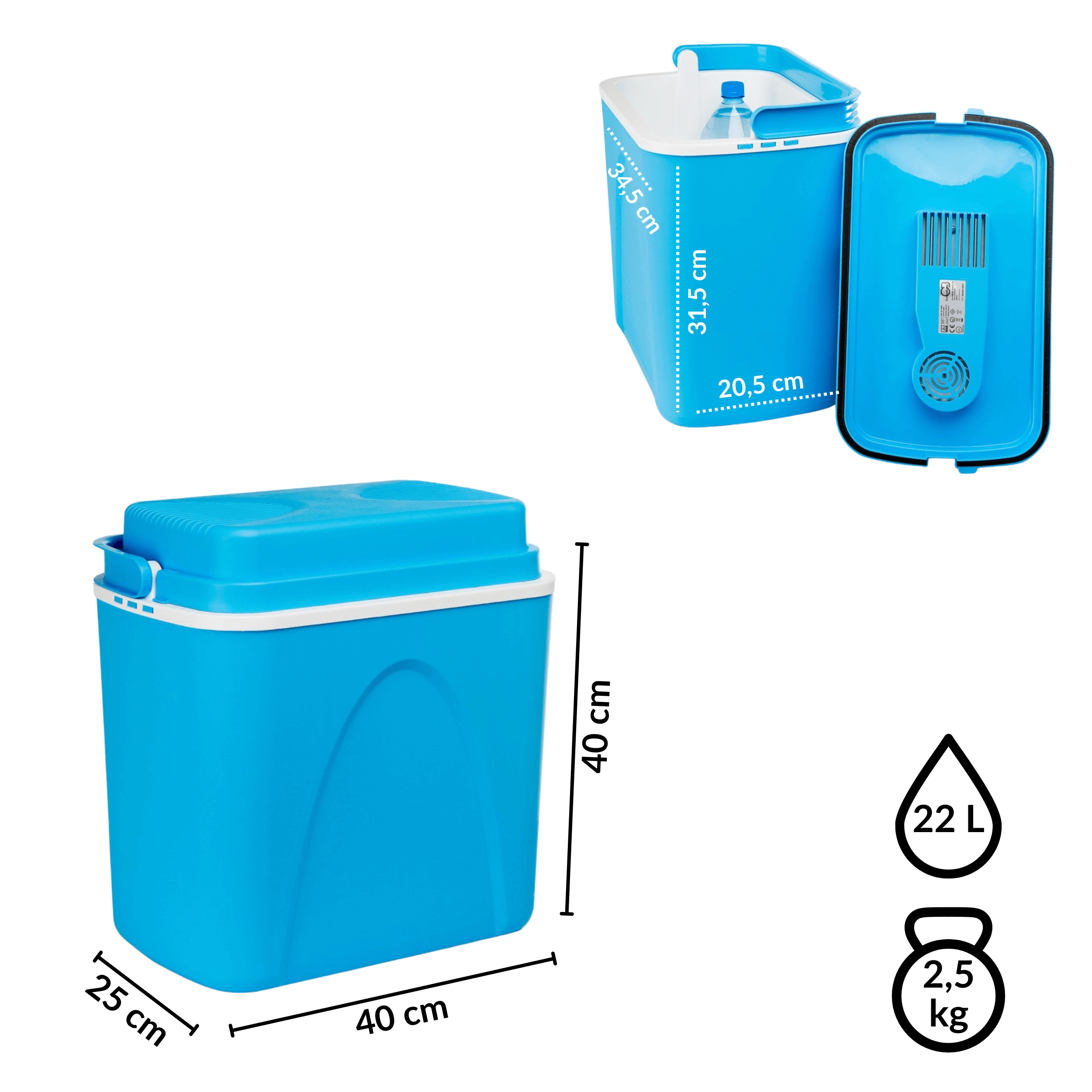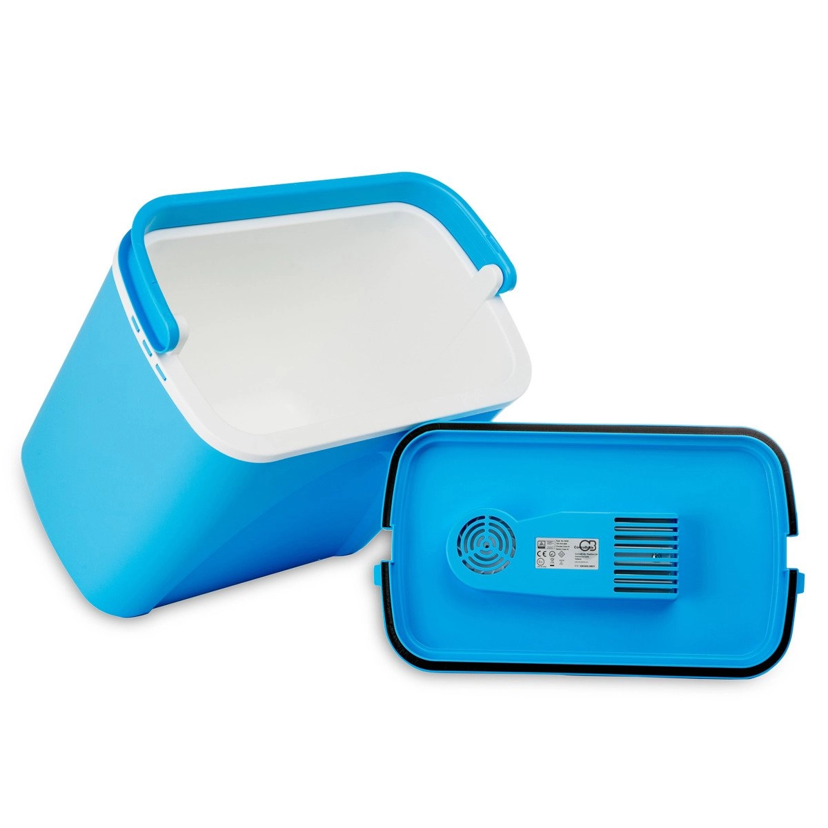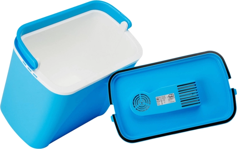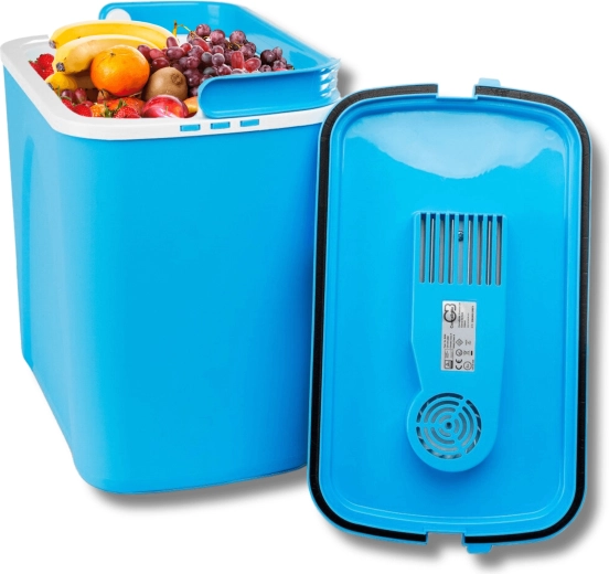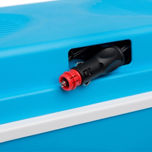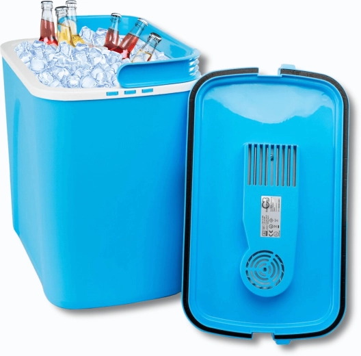 Doordachte afmetingen maken het mogelijk om 1,5 l flessen rechtop te plaatsen en snacks en drankjes overzichtelijk te rangschikken. De lichte maar stevige behuizing van polypropyleen is duurzaam en eenvoudig te reinigen. Het stijlvolle blauwe design past perfect op het strand, op de camping en in de kofferbak.