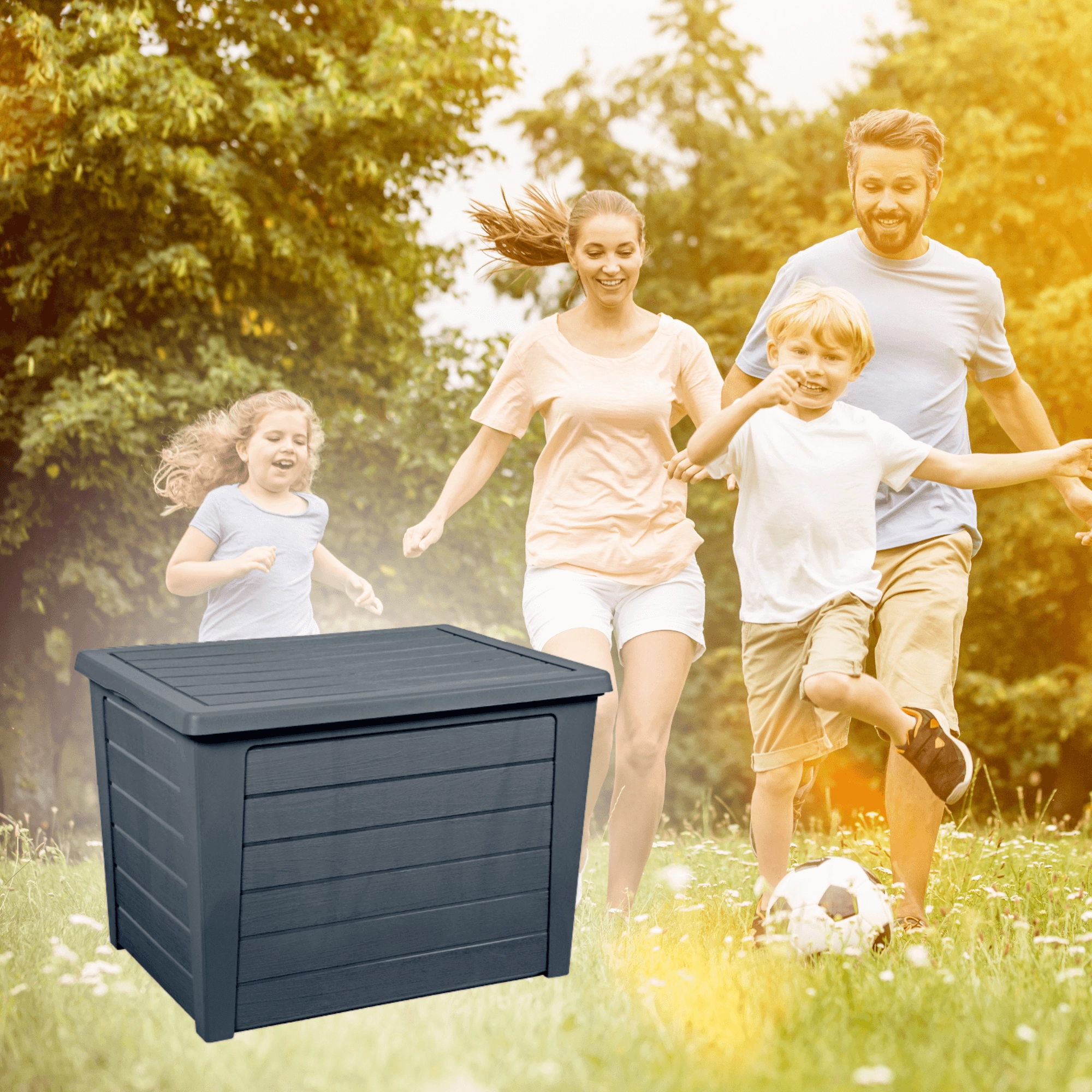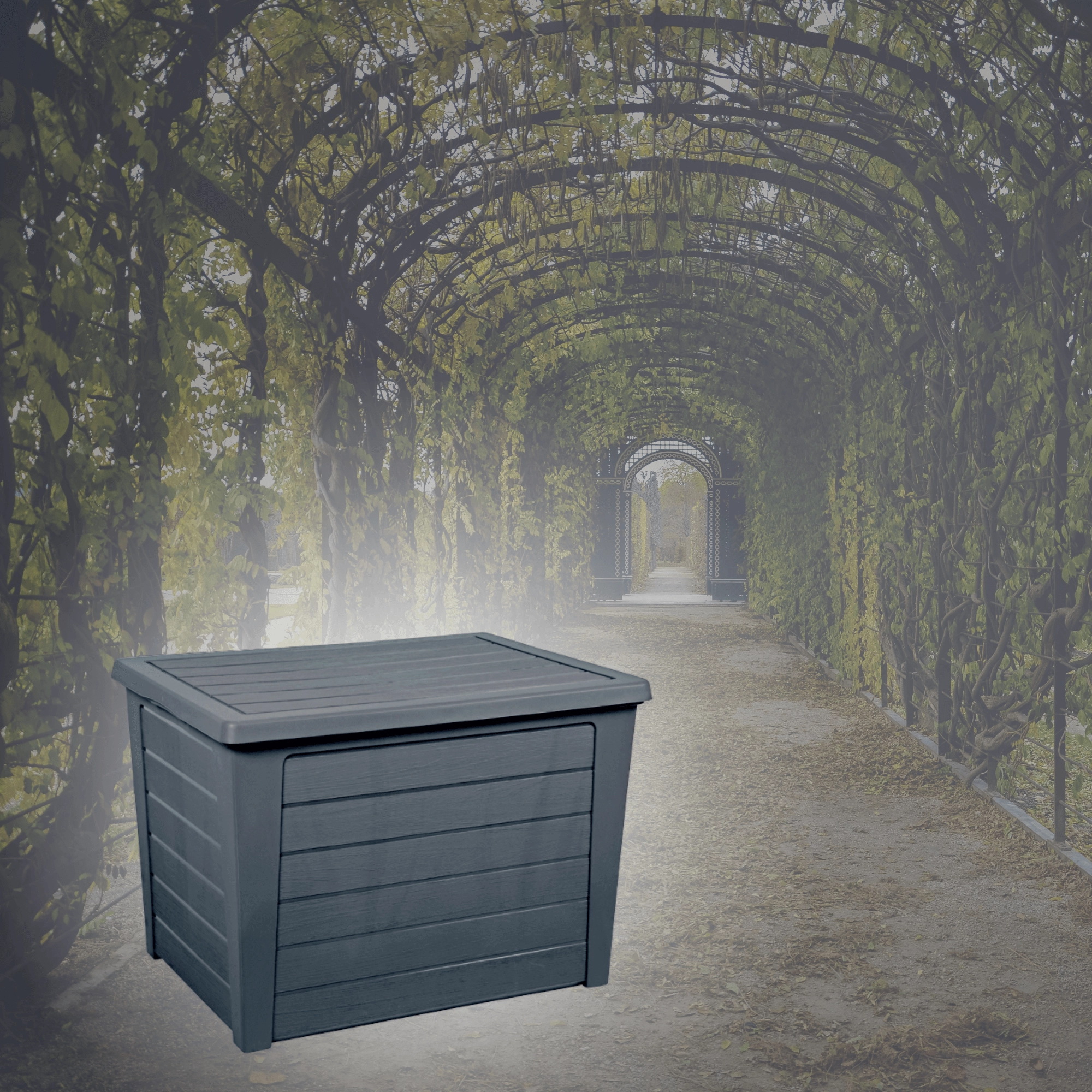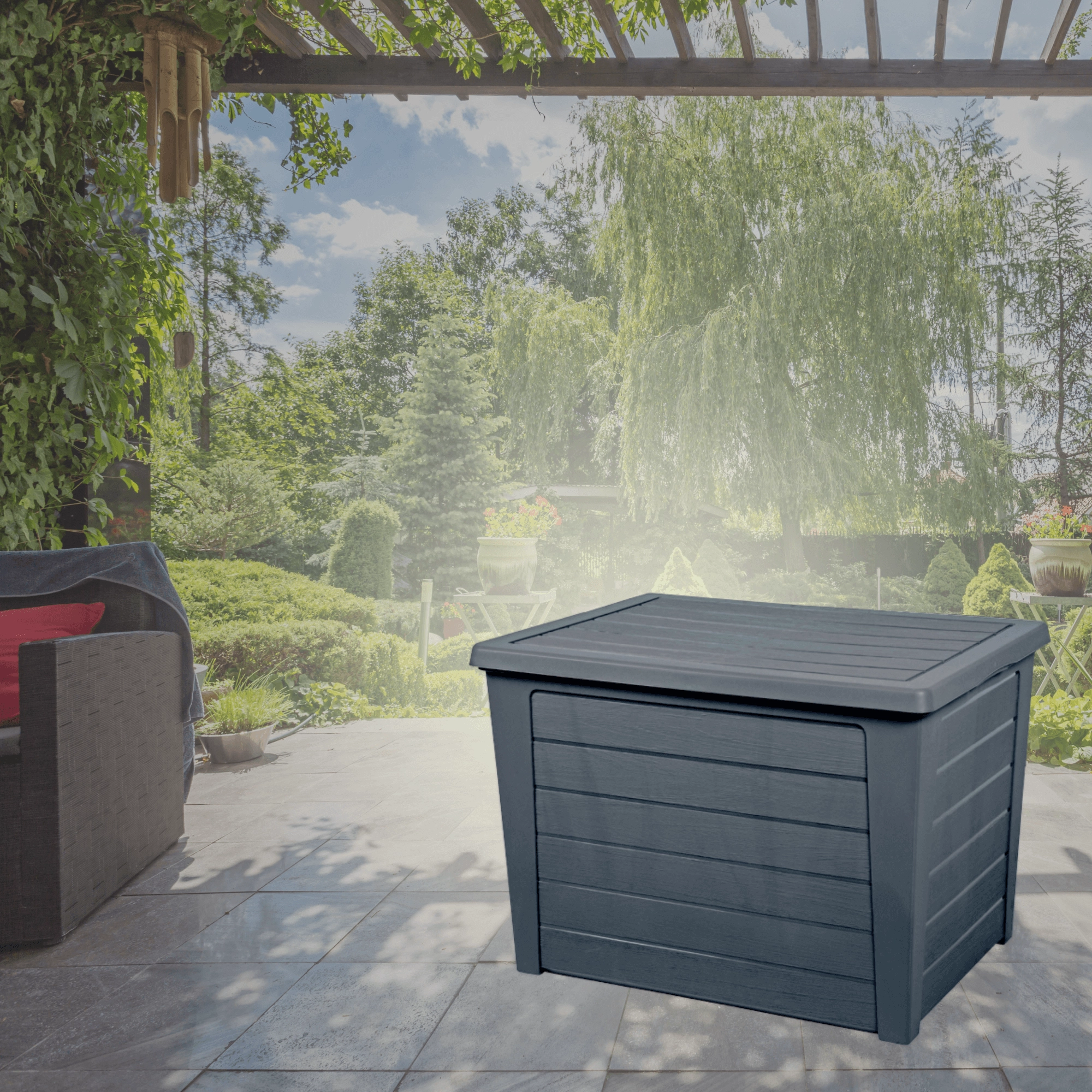De constructie van duurzaam kunststof beschermt opgeslagen items tegen vocht en vuil – ideaal voor kussens en gereedschap, het hele jaar door.