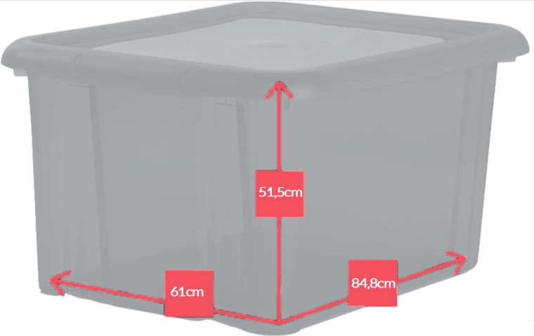 Doordachte details zoals vier stevige klemmen voor het sluiten van het deksel en twee transportwielen vergemakkelijken dagelijks gebruik en verplaatsing, zelfs wanneer de kist volledig beladen is. De lichte maar stevige constructie van polypropyleen garandeert een lange levensduur en eenvoudig onderhoud.