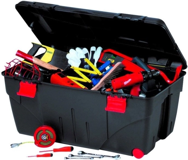 Deze universele zwarte opbergkist is een uitstekende oplossing voor overzichtelijke en veilige opslag in de werkplaats, tuin, op het terras en in huis. Dankzij de hoge weerstand tegen weersinvloeden kan hij vorst en vocht aan en houdt hij uw spullen droog en netjes.