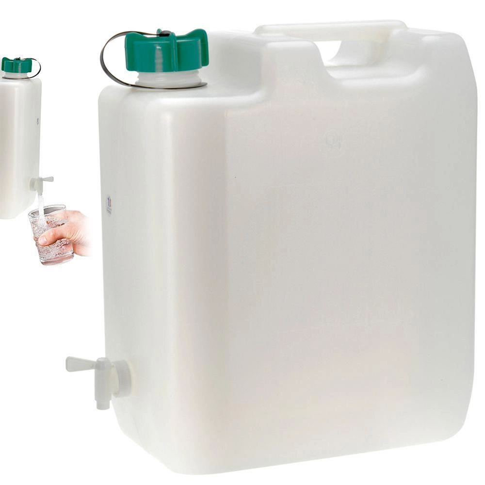 Praktische waterkan met een inhoud van 35 l, voorzien van een stevig handvat voor eenvoudig dragen en een geïntegreerde kraan voor nauwkeurige dosering. Geschikt voor reizen, kamperen en thuisgebruik. Gemaakt van materiaal geschikt voor contact met levensmiddelen.