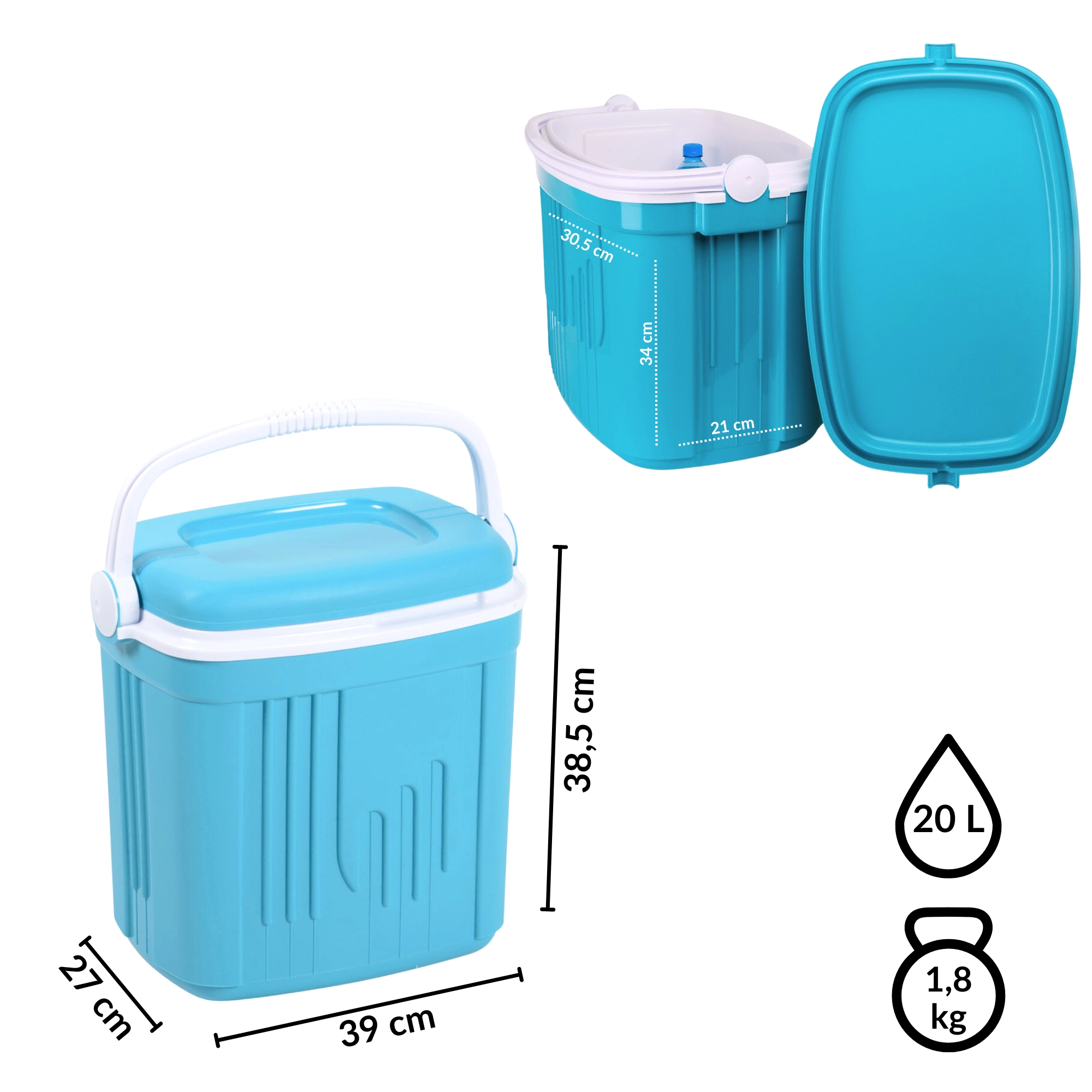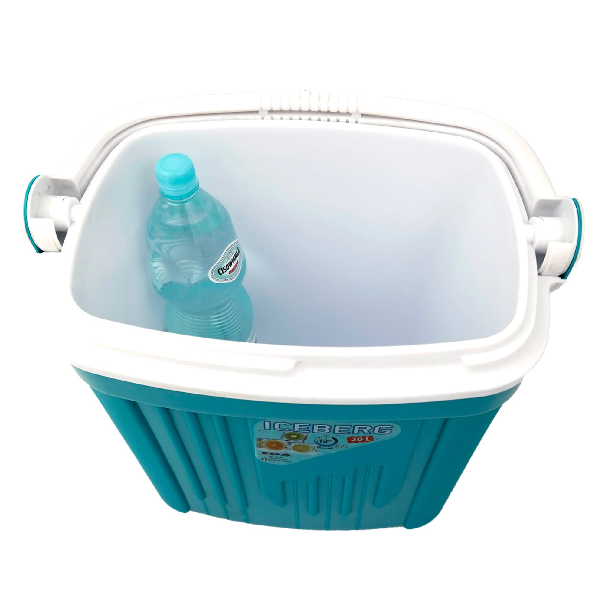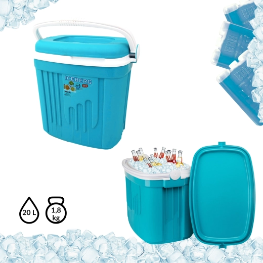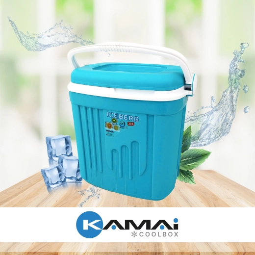 Toeristische koelbox 20 l KAMAI ICEBERG, turquoise met wit handvat
