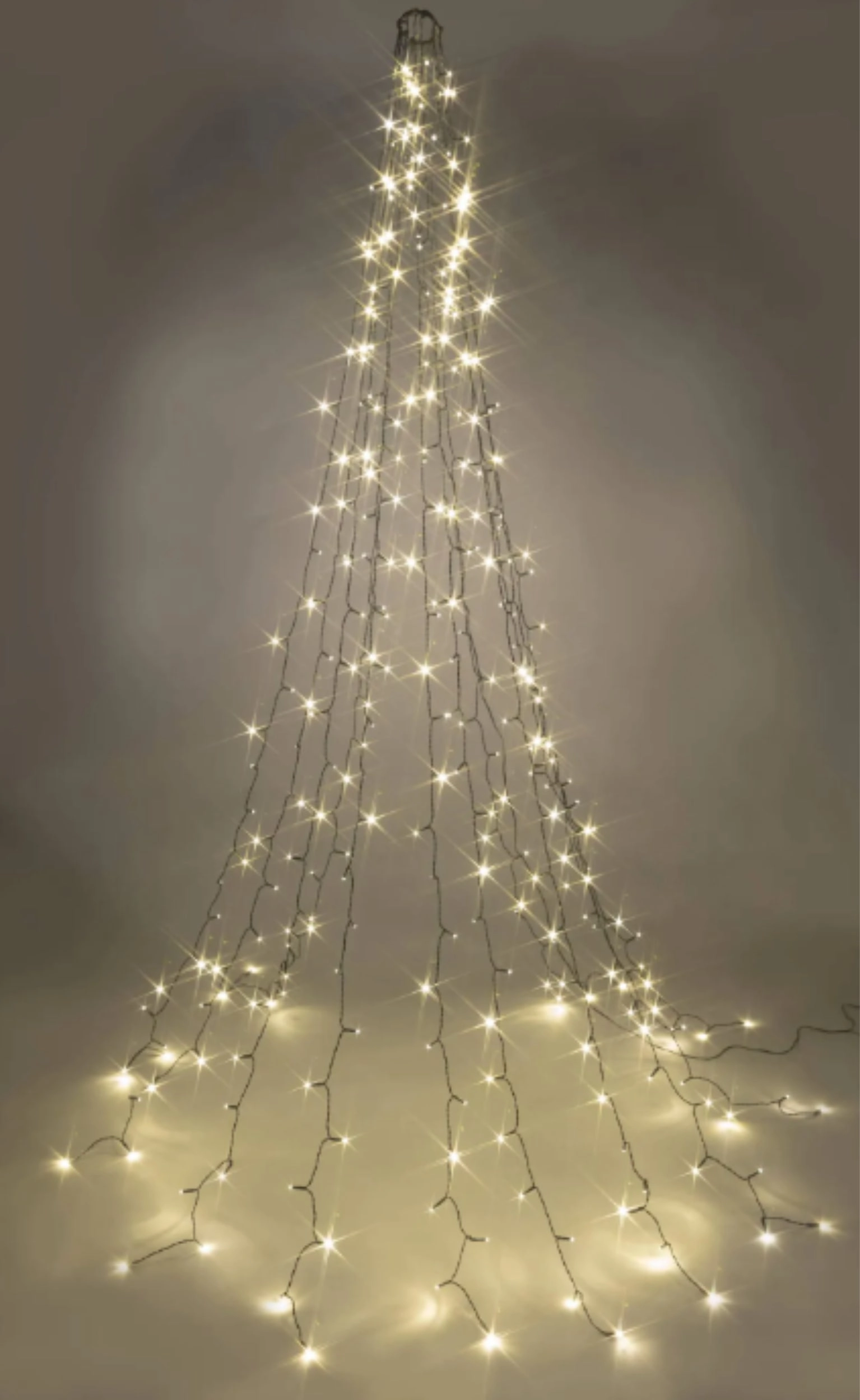 Tover je kerstboom om tot het stralende middelpunt van je huis. Het lichtgordijn met 300 LED’s in warm wit is in een handomdraai gemonteerd: plaats de metalen ring op de top van de boom en verdeel de 12 strengen van elk ca. 2,5 m. Dankzij de timer 6/18 u schakelt de verlichting automatisch in en uit, wat zowel energie als tijd bespaart.