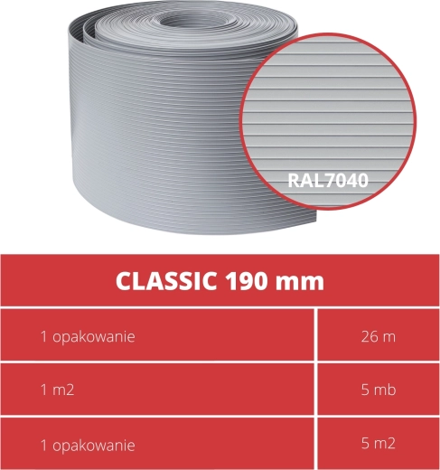 Schuttingband 26 m CLASSIC 19 cm PROTECTO grijs