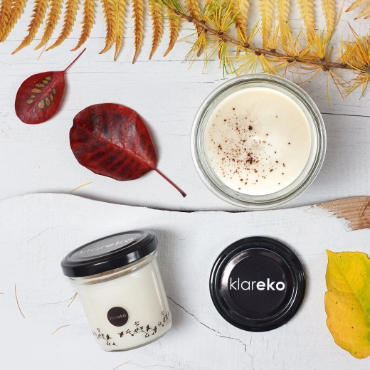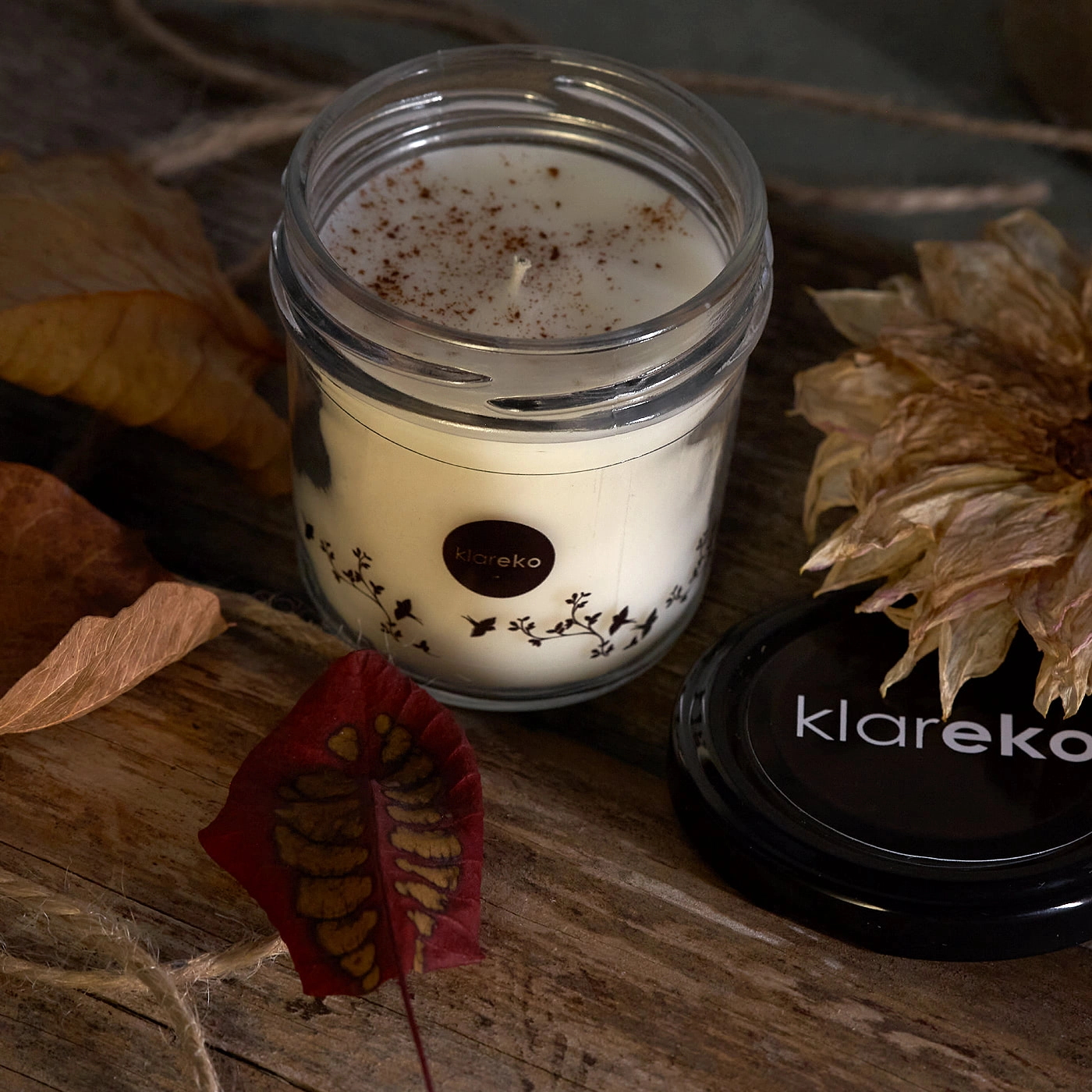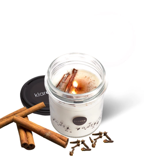 Ontdek de harmonie van de natuur in je interieur met de KLAREKO geurkaars. Ze is gemaakt van pure natuurlijke sojawas en verrijkt met essentiële oliën, die samen een warme compositie van kaneel en kruidnagel creëren. De kaars brandt tot 50% langer dan paraffine-alternatieven en laat je huis knus en geurig achter zonder ongewenste rook.