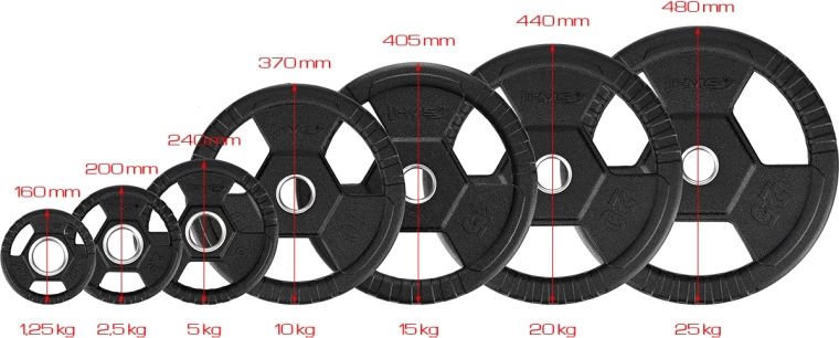 Drievoudige grepen zorgen voor veilig dragen, snel laden op de stang en zelfstandig trainen met de schijf voor functionele krachttraining.