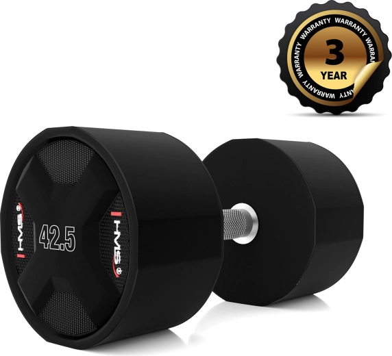 De HMS HPC is een premium halter ontworpen voor intensieve krachttraining. De stalen kern met gegoten polyurethaan (CPU) zorgt voor een lange levensduur zonder geur, vormvastheid en duurzaamheid, ook bij frequent neerleggen. De verchroomde, gekartelde greep biedt een zekere en comfortabele houvast voor een veilige uitvoering van oefeningen.