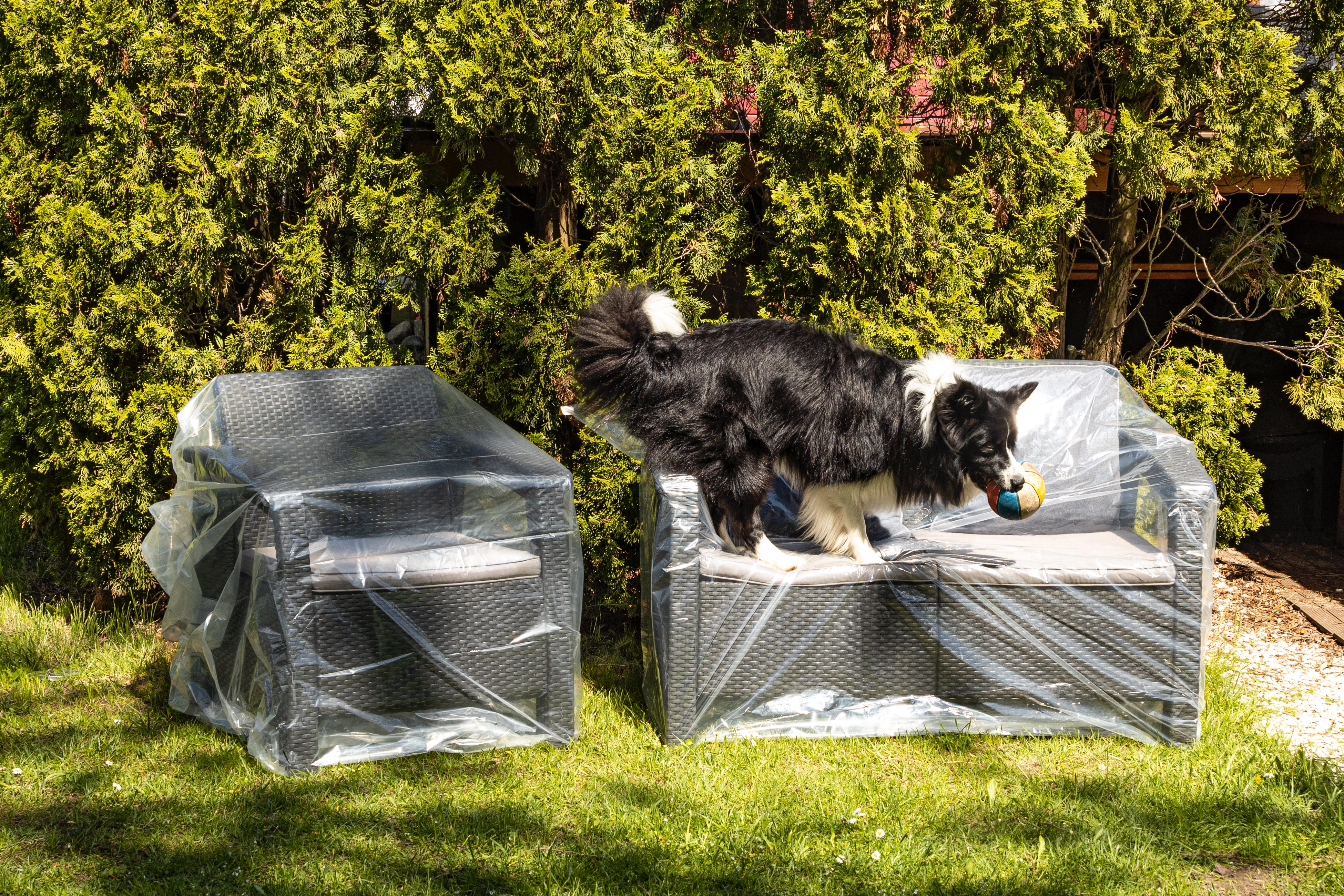 De transparante hoes beschermt bekleding in huis en ook tuinmeubelen buiten – ideaal bij schilderen, verhuizen of langdurige opslag.