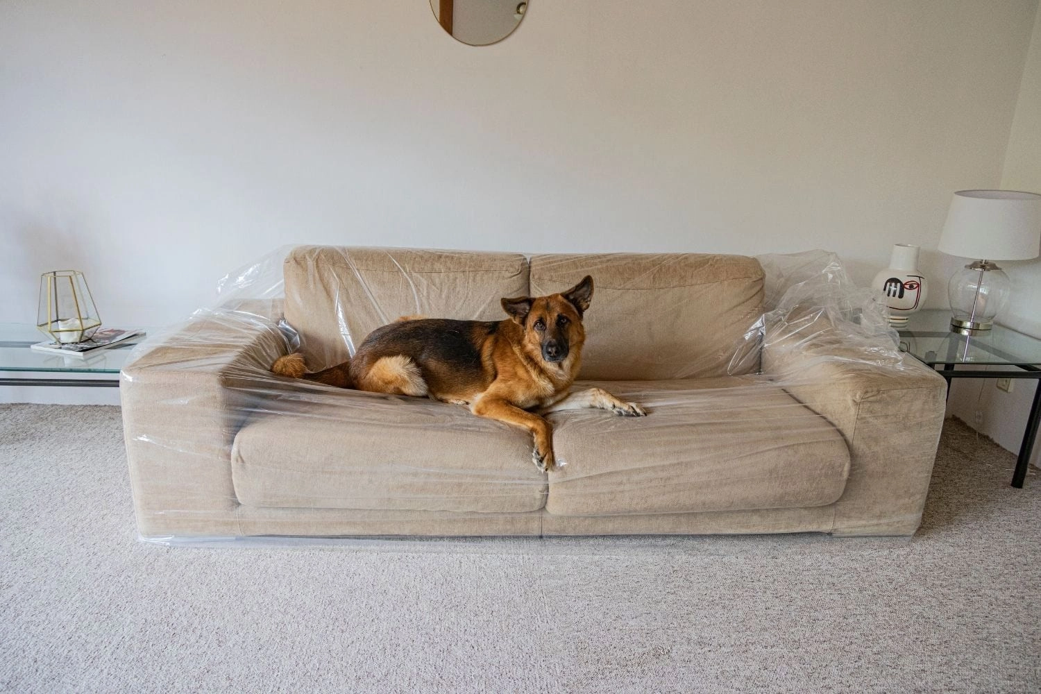 Robuuste polyethyleenfolie met een dikte van 50 micron beschermt de bank betrouwbaar tegen water, regen en vuil en is veel duurzamer dan standaard schildersfolie.