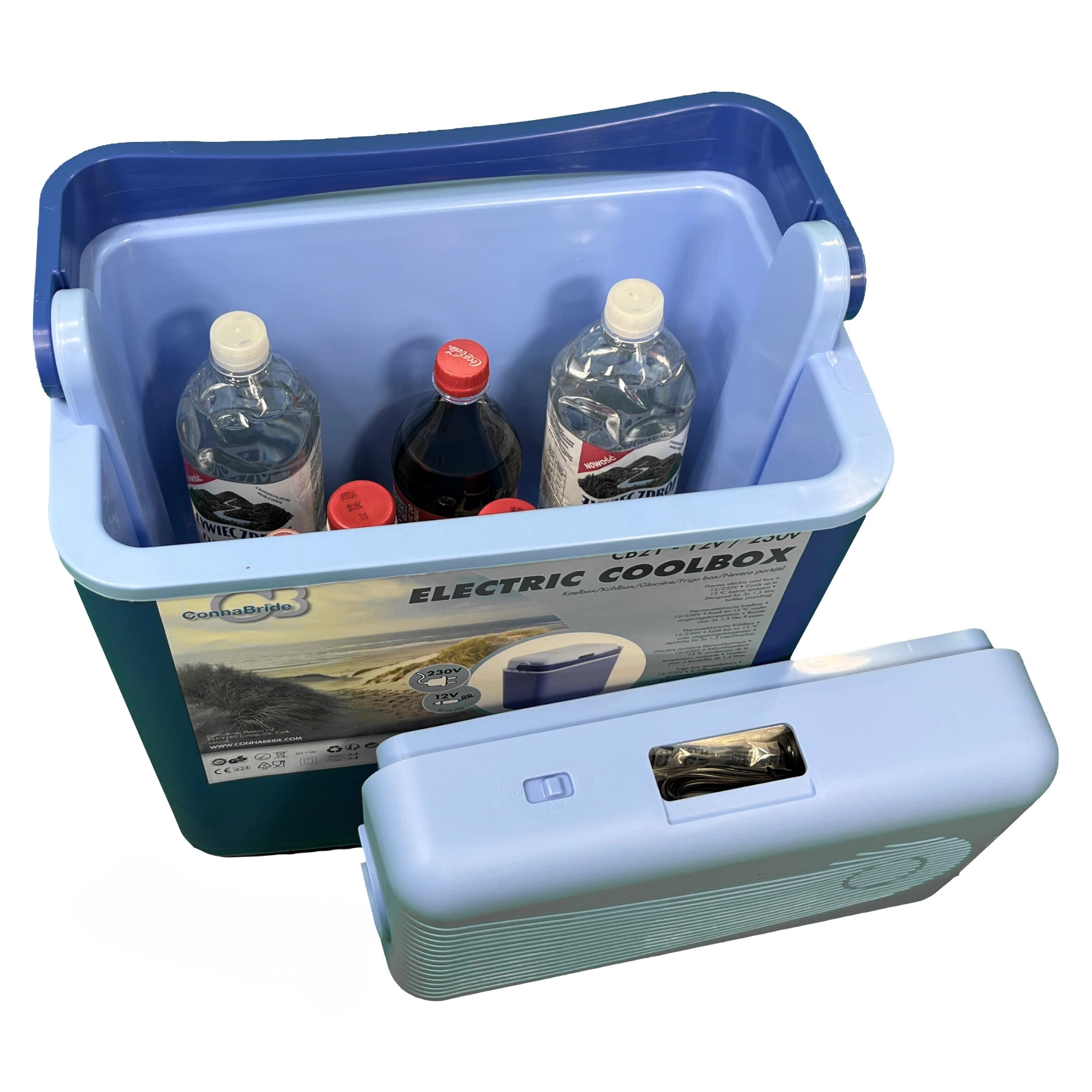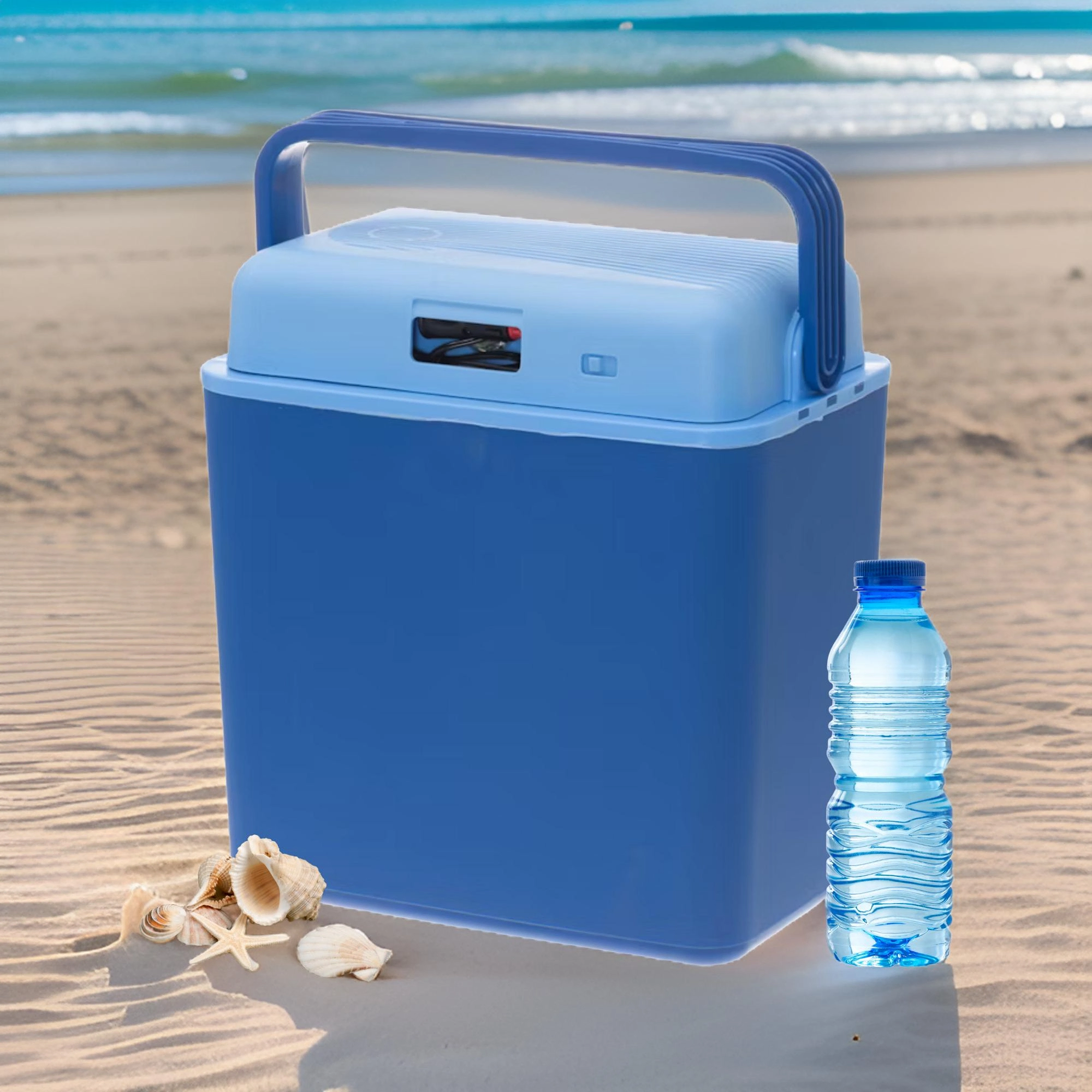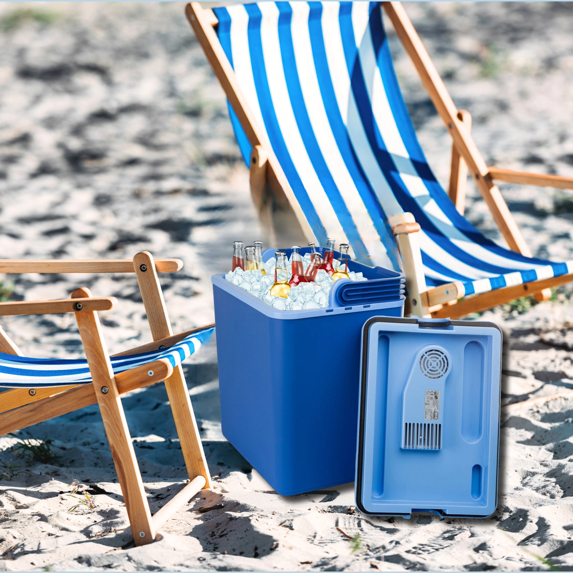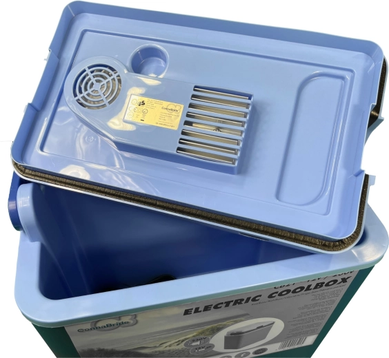 Praktische draagbare autokoelbox met een inhoud van 30 l voor voeding via de 12V‑aansluiting in de auto houdt je drankjes en etenswaren koel onderweg. Maakt gebruik van een Peltier‑element voor efficiënte koeling zonder schadelijke chemicaliën, biedt een ruim interieur voor 1,5 l‑flessen in verticale positie en heeft een stevige, duurzame constructie met een vergrendelbare draaggreep en een geïntegreerde ventilator voor gelijkmatige luchtcirculatie.