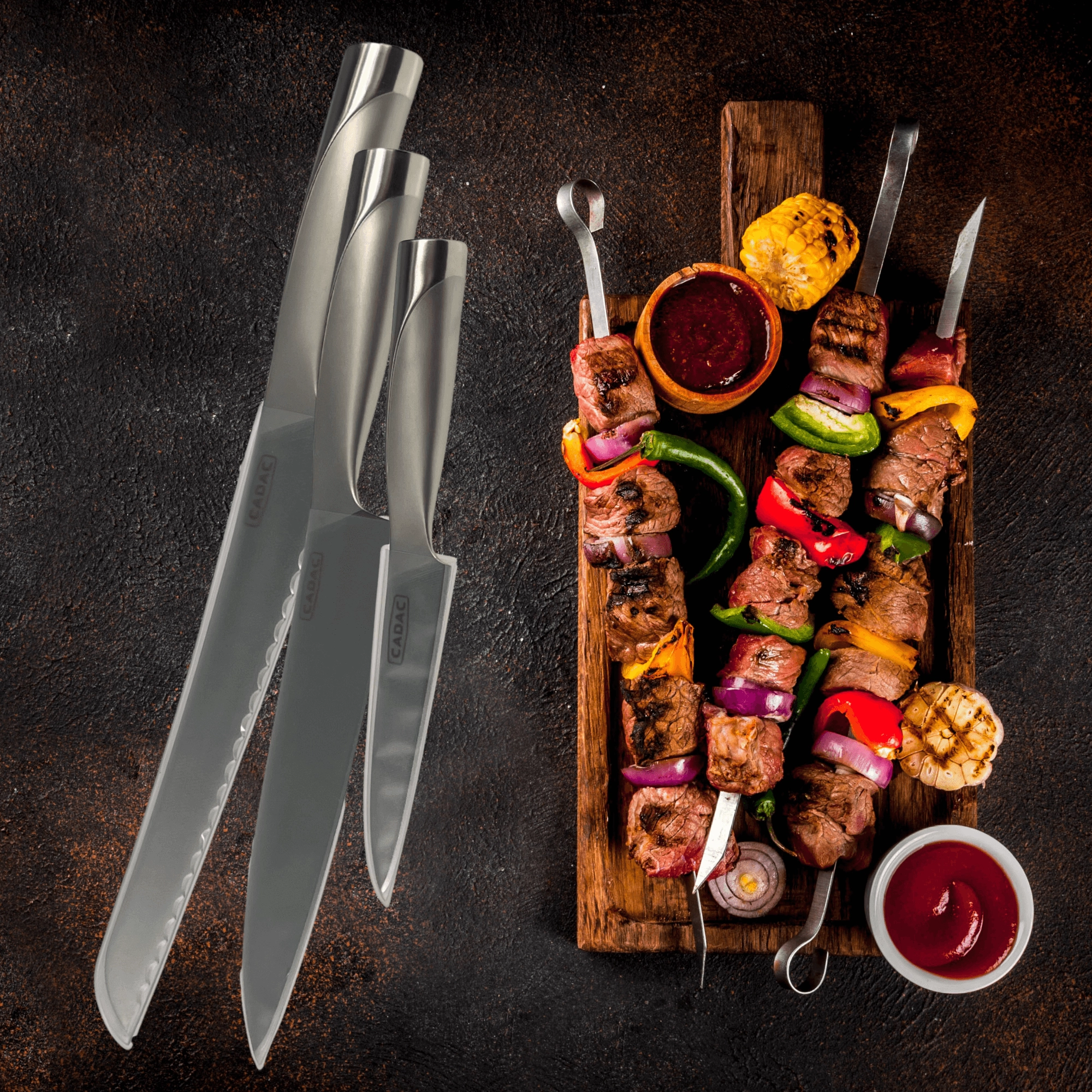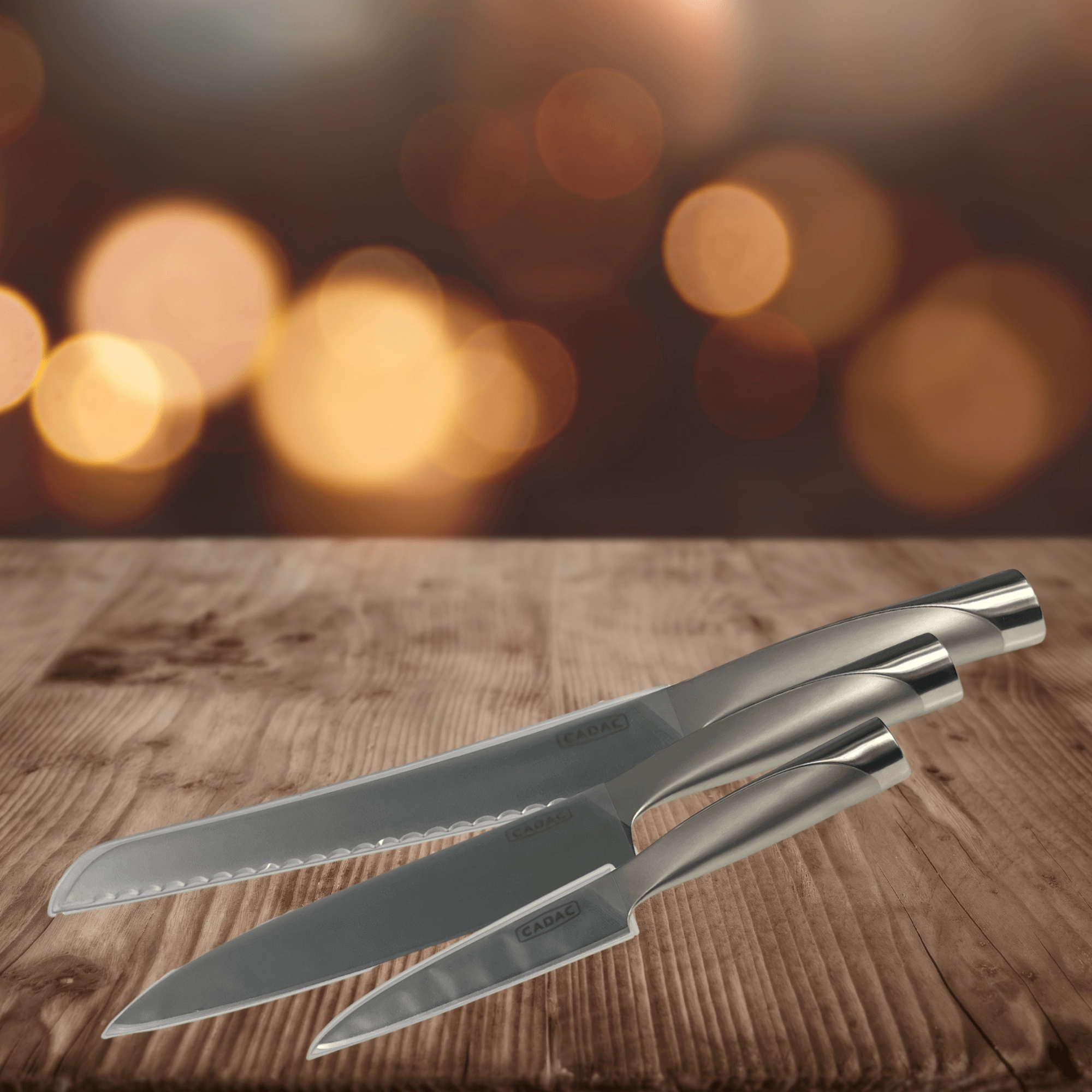 Ontdek de betrouwbare messenset van CADAC, die het merendeel van de keukentaken dekt – van fijn schillen en in blokjes snijden tot het portioneren van grotere ingrediënten en comfortabel snijden van brood. Hoogwaardig roestvrij staal zorgt voor duurzaamheid, scherpe randen en eenvoudig onderhoud.