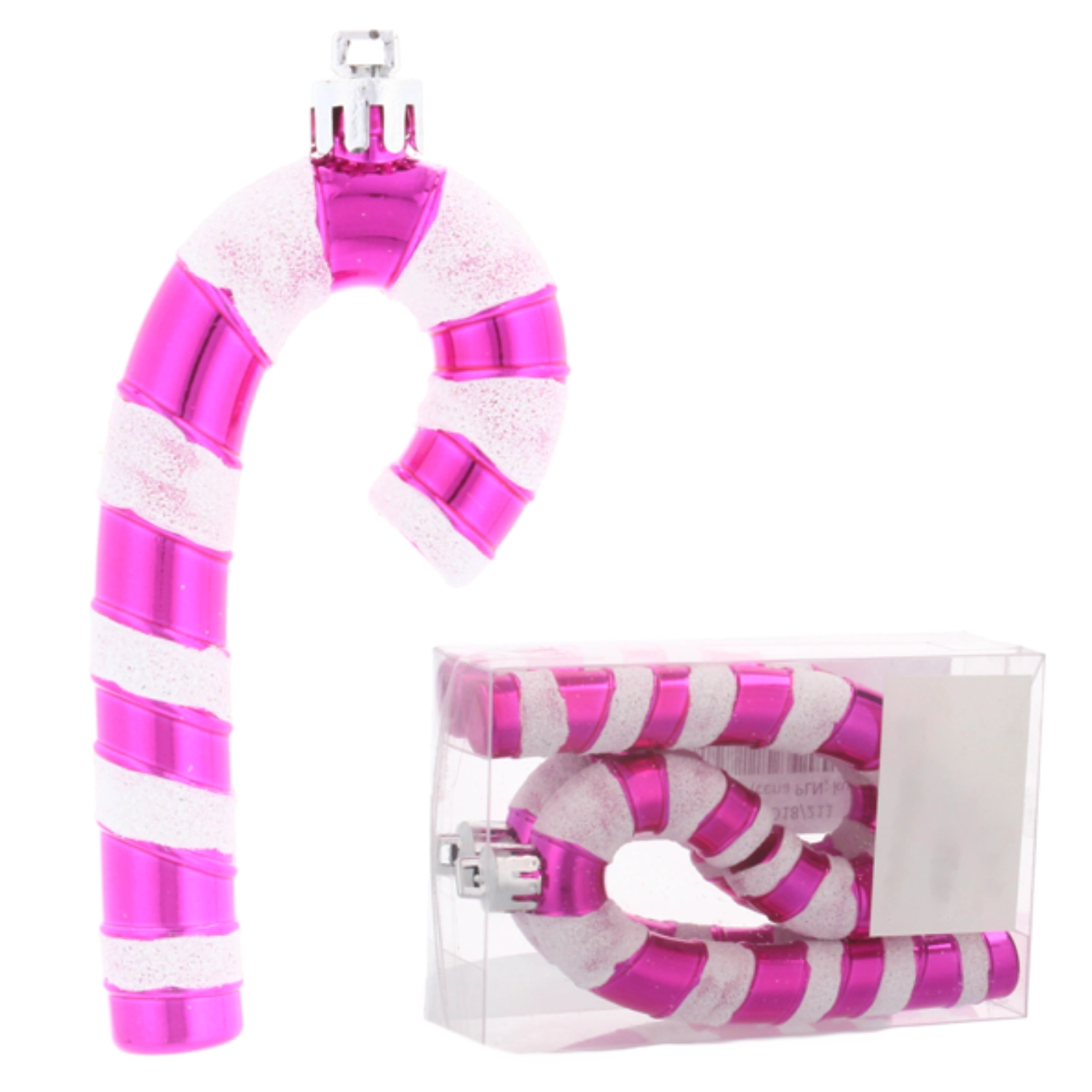 Breng de magie van Kerst in huis met een stijlvolle set van vier ornamenten in de vorm van een zuurstok in roze. Deze decoraties combineren elegantie, veilig, onbreekbaar materiaal en directe ophanggereedheid dankzij zilverkleurige koordjes. Ze vullen elke decoratie prachtig aan en vormen een onmiskenbare eyecatcher in je kerstsfeer.