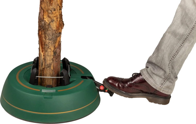 De brede, lage basis en het stevige klemsysteem houden de boom recht, zelfs tijdens het versieren. Geschikt voor een stamdiameter van 3–11 cm.