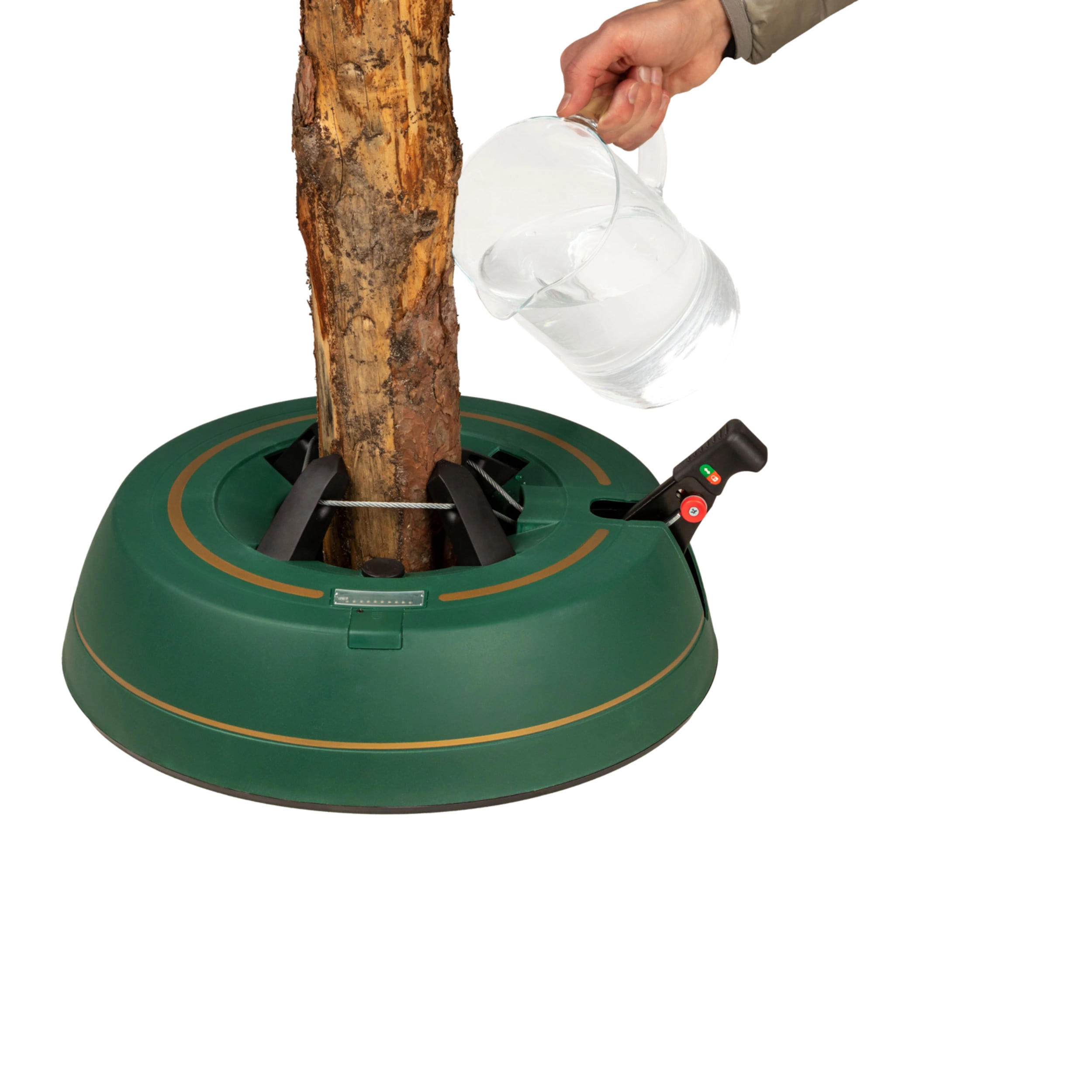 Kamai Select 1 maakt het opzetten van een echte kerstboom eenvoudig in huis en openbare ruimtes. Het stalen enkelkabelmechanisme met 4 automatische haken klemt de stam met een diameter van 3–11 cm stevig vast, terwijl de brede, lage basis zorgt voor hoge stabiliteit, ook bij rijk versierde bomen. Het geïntegreerde reservoir van 2 liter water met drijverindicator helpt de boom langer vers te houden.