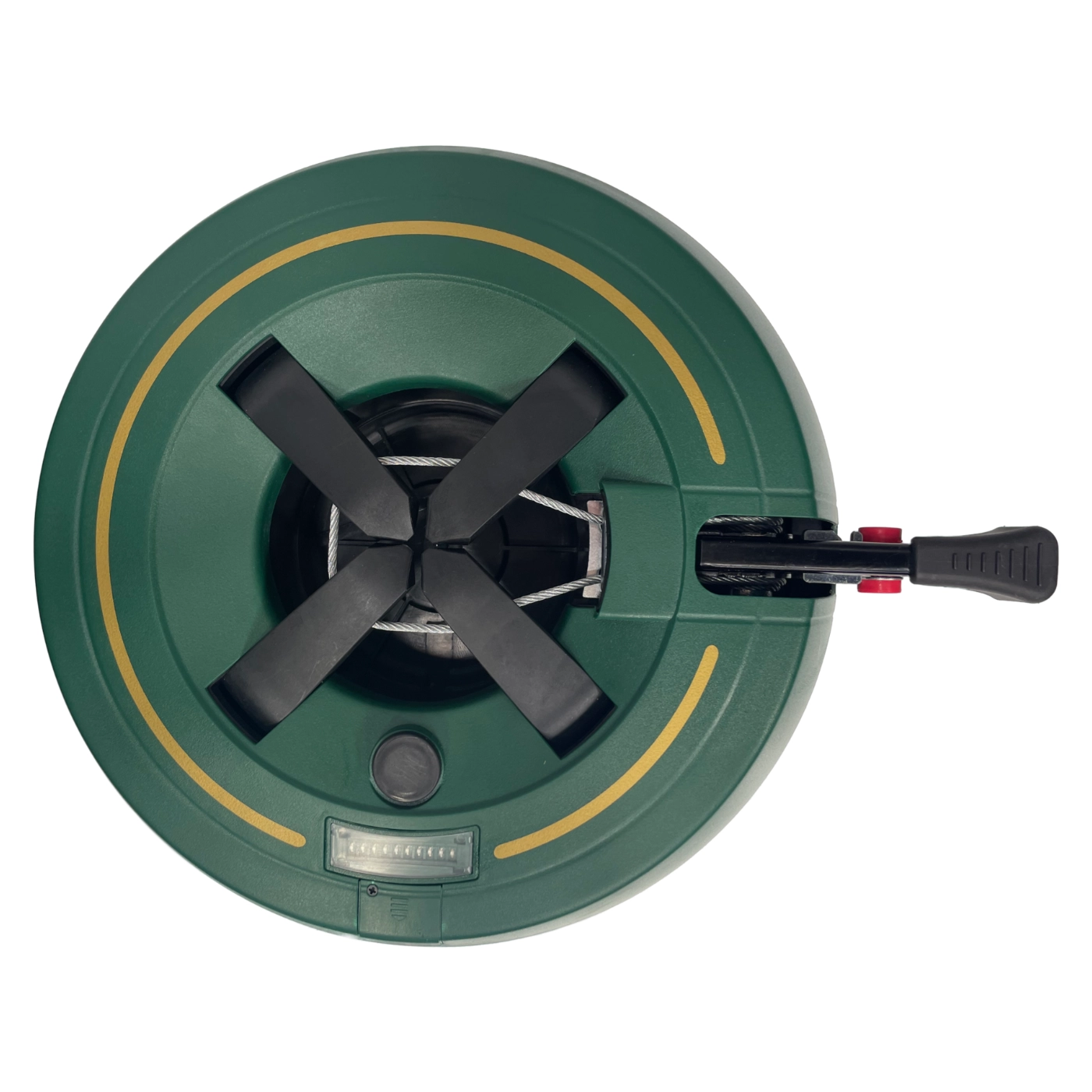 Vier automatische haken met stalen kabel klemmen zich vast met enkele drukken op de hendel. Gekleurde indicatoren tonen duidelijk de vergrendelstatus voor veilig gebruik.