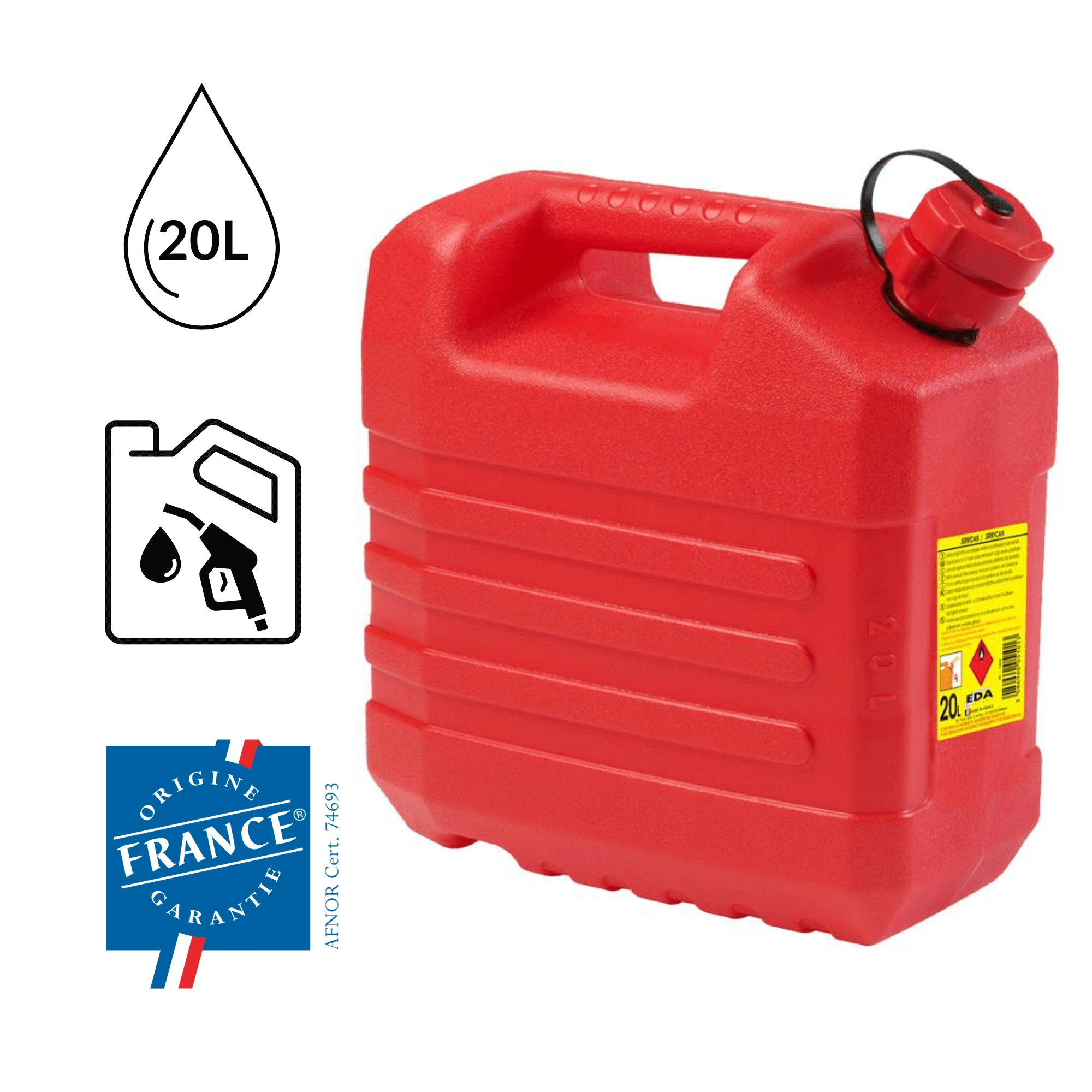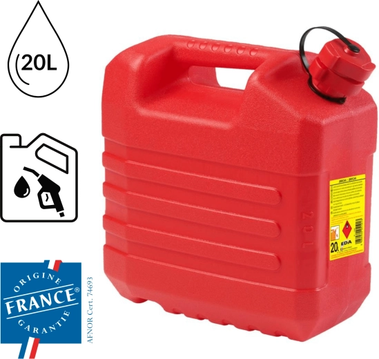 Zoek je een betrouwbare manier om brandstof veilig op te slaan en te vervoeren? Deze 20-liter jerrycan van duurzaam polypropyleen biedt een stevige constructie, een afdichtende schroefsluiting en een geïntegreerde uitschuifbare tuit voor schoon en gecontroleerd schenken zonder druppels.