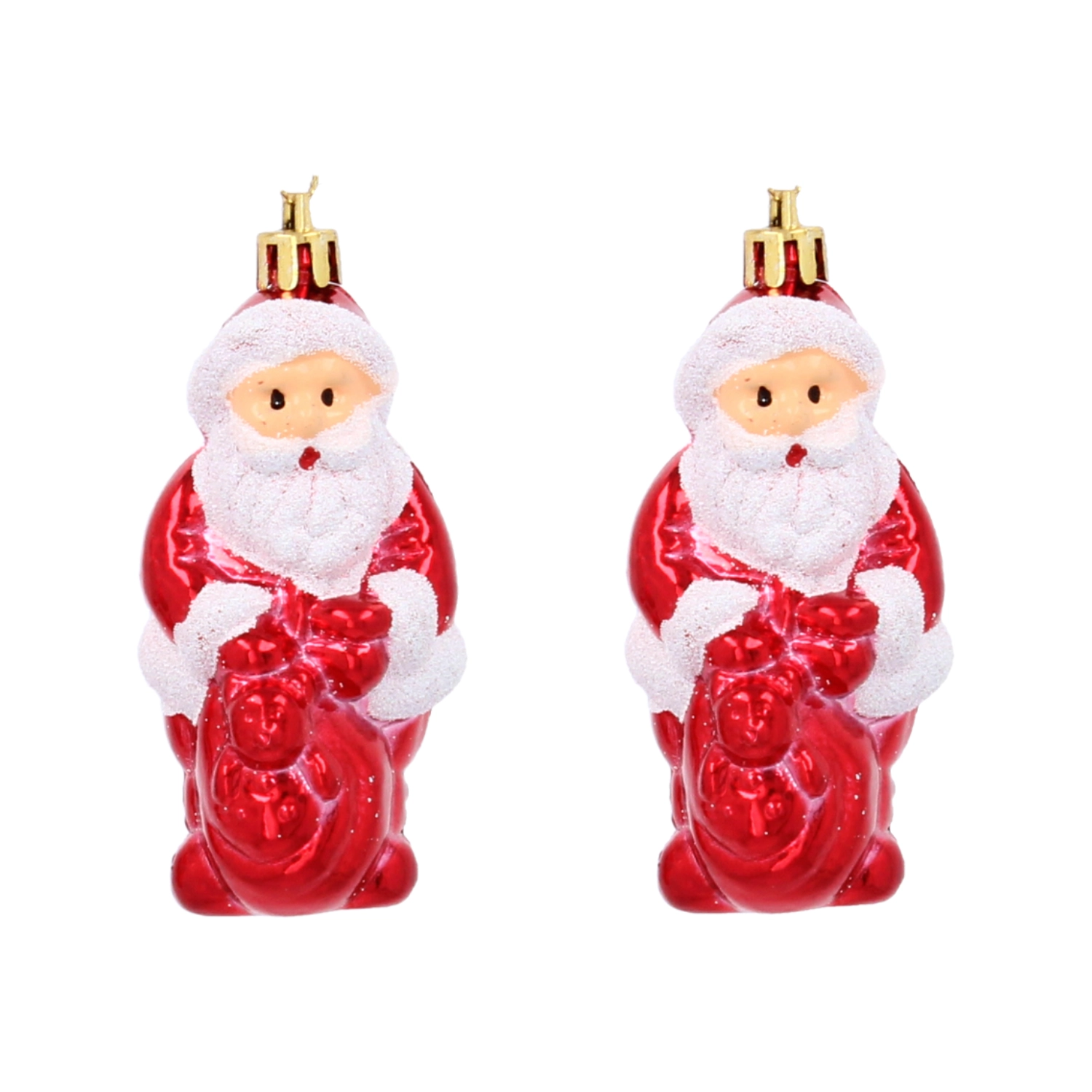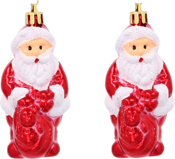 Breng de magie van Kerst in huis met een elegante set van twee ornamenten van de Kerstman met zak. Deze decoraties van hoogwaardig plastic zijn veilig, schadebestendig en in klassiek rood-wit uitgevoerd, waardoor ze elke kerstdecoratie prachtig completeren.