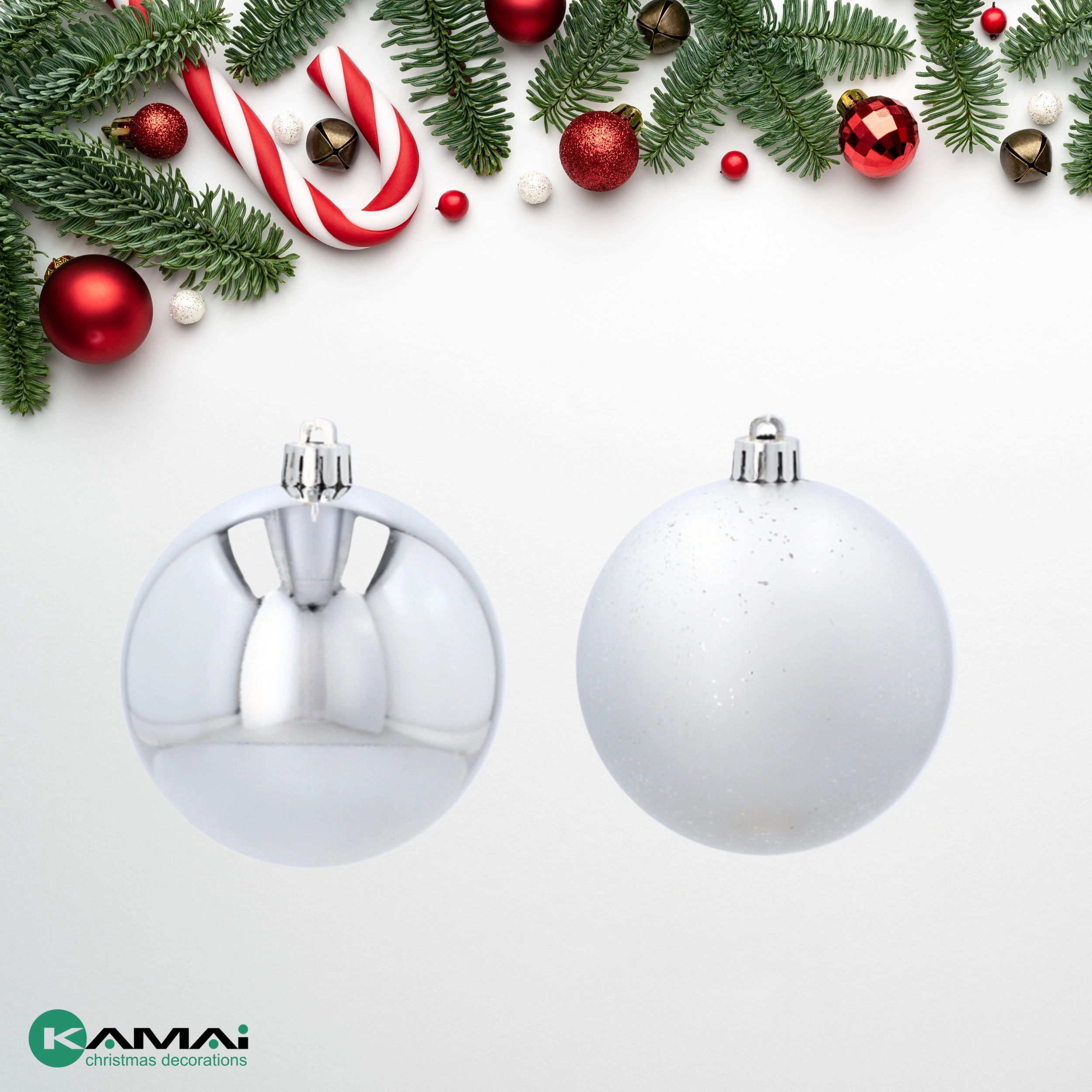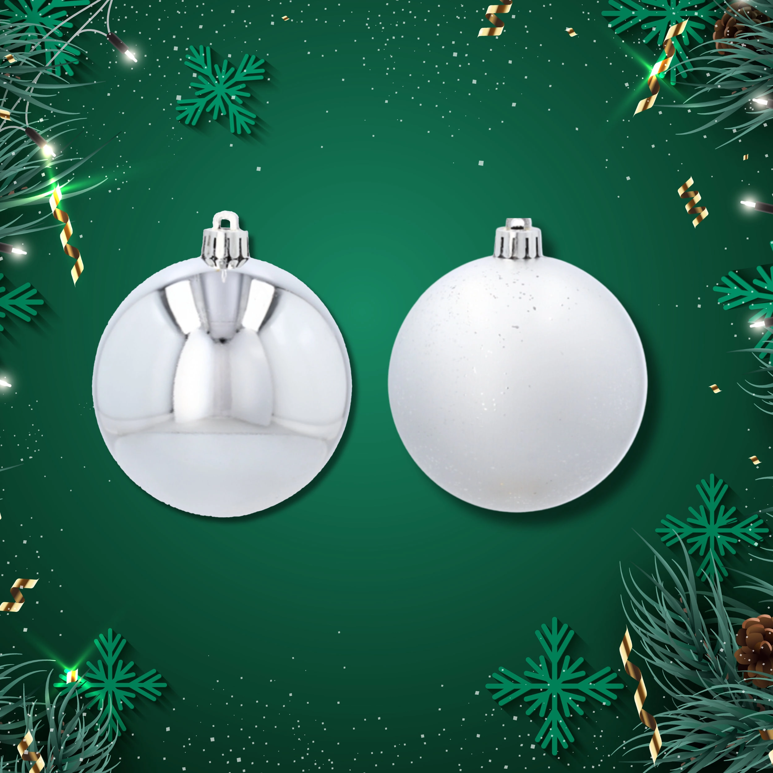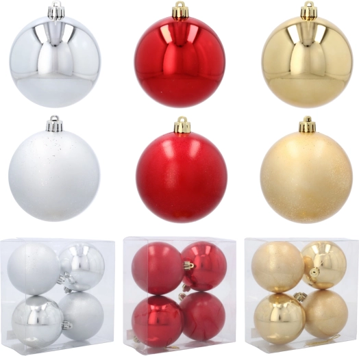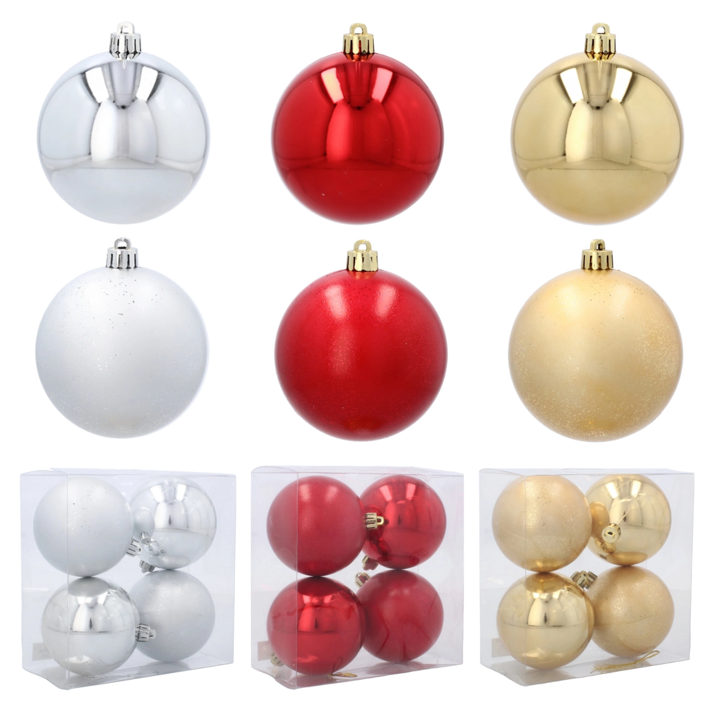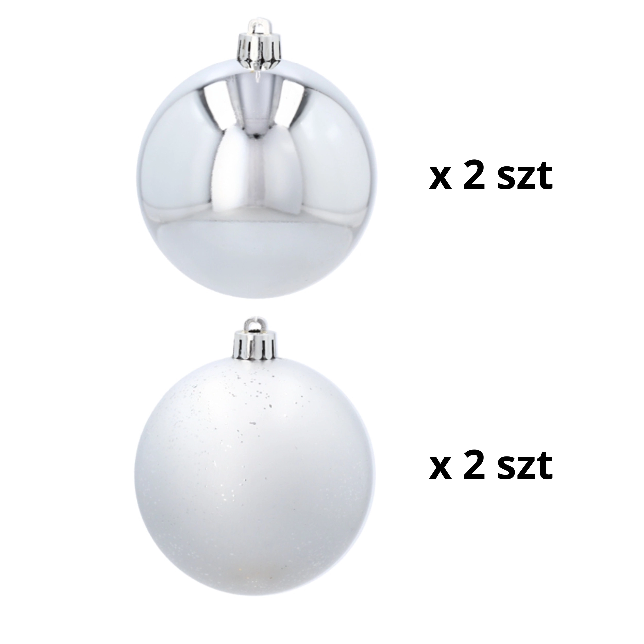 De set combineert 2 glanzende en 2 subtiel glinsterende matte ballen, waardoor de boom harmonieus oogt zonder te overheersen met één stijl.