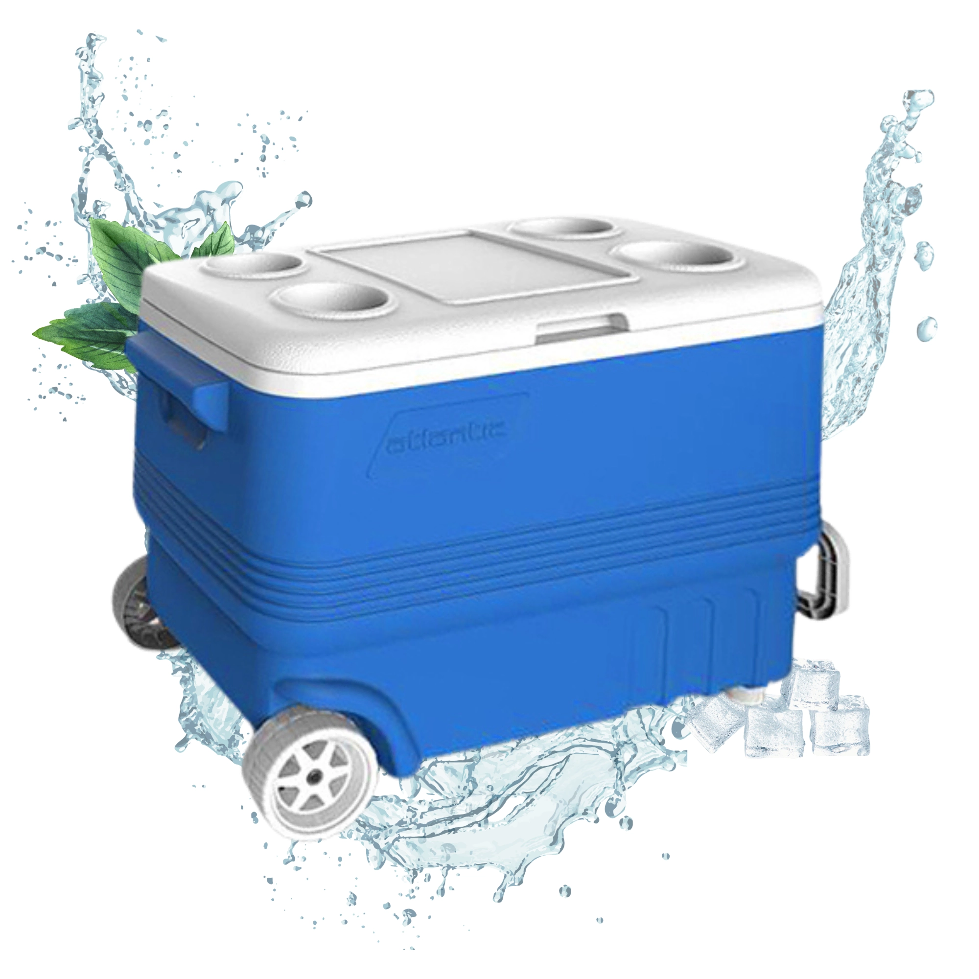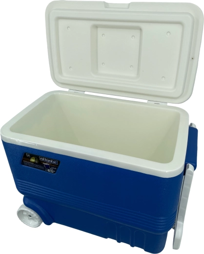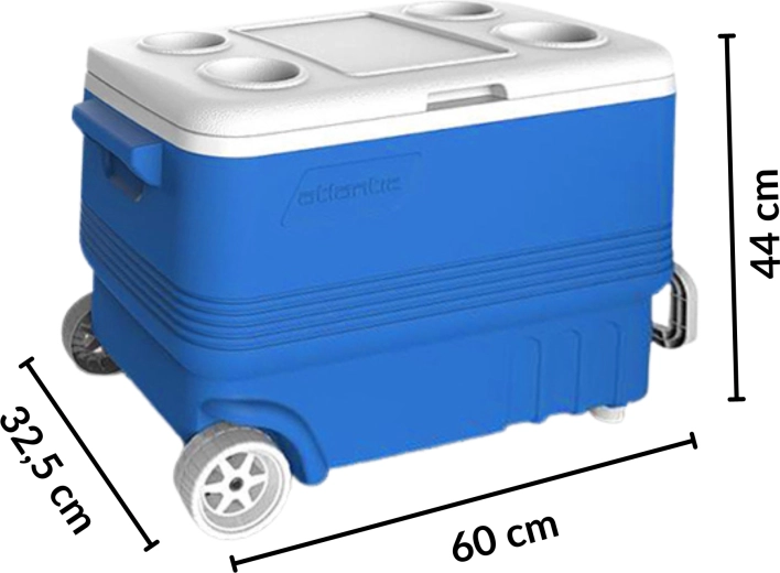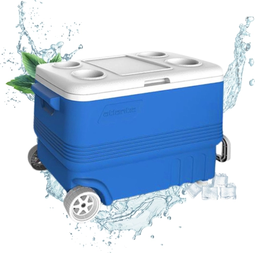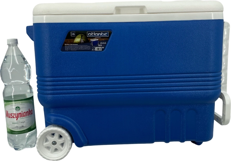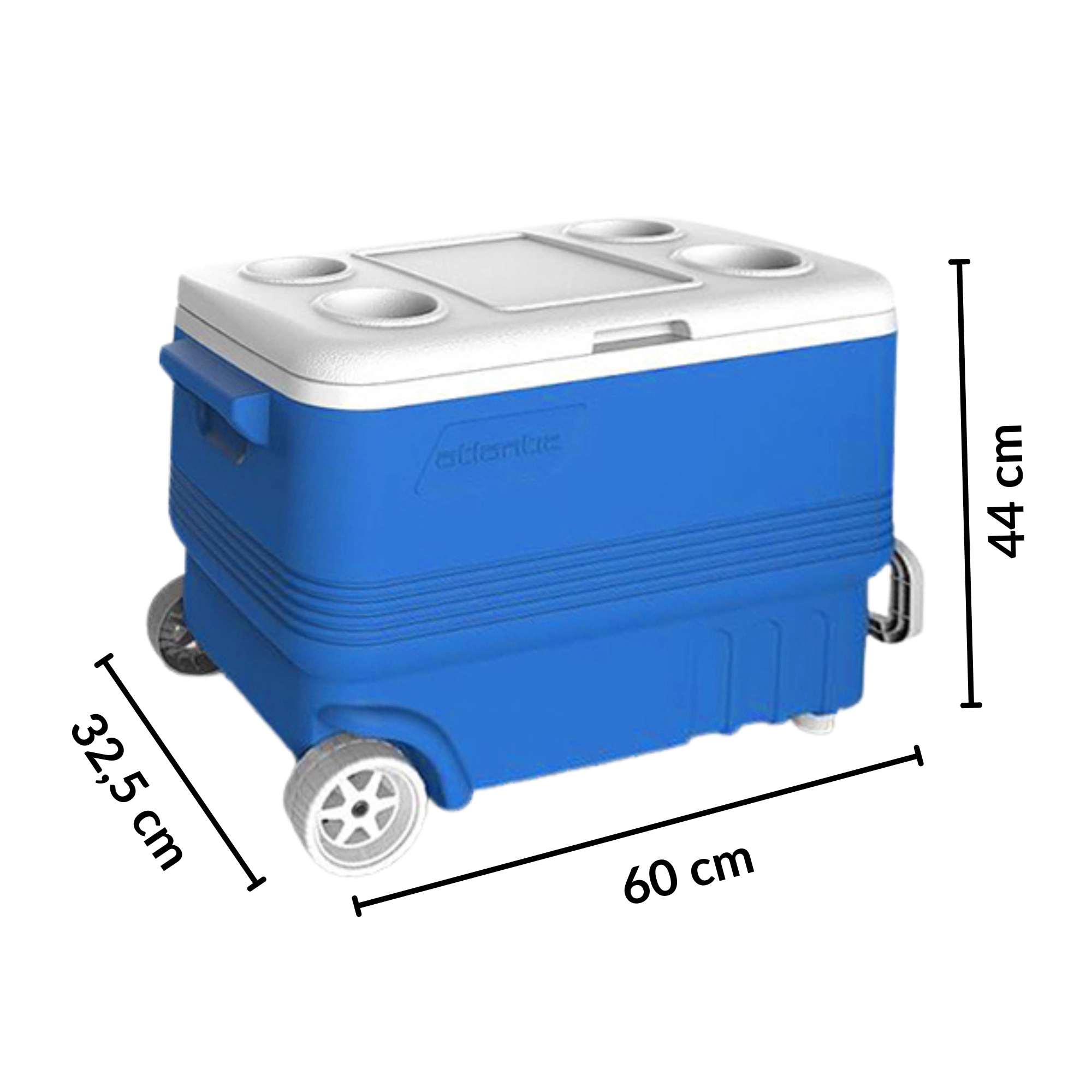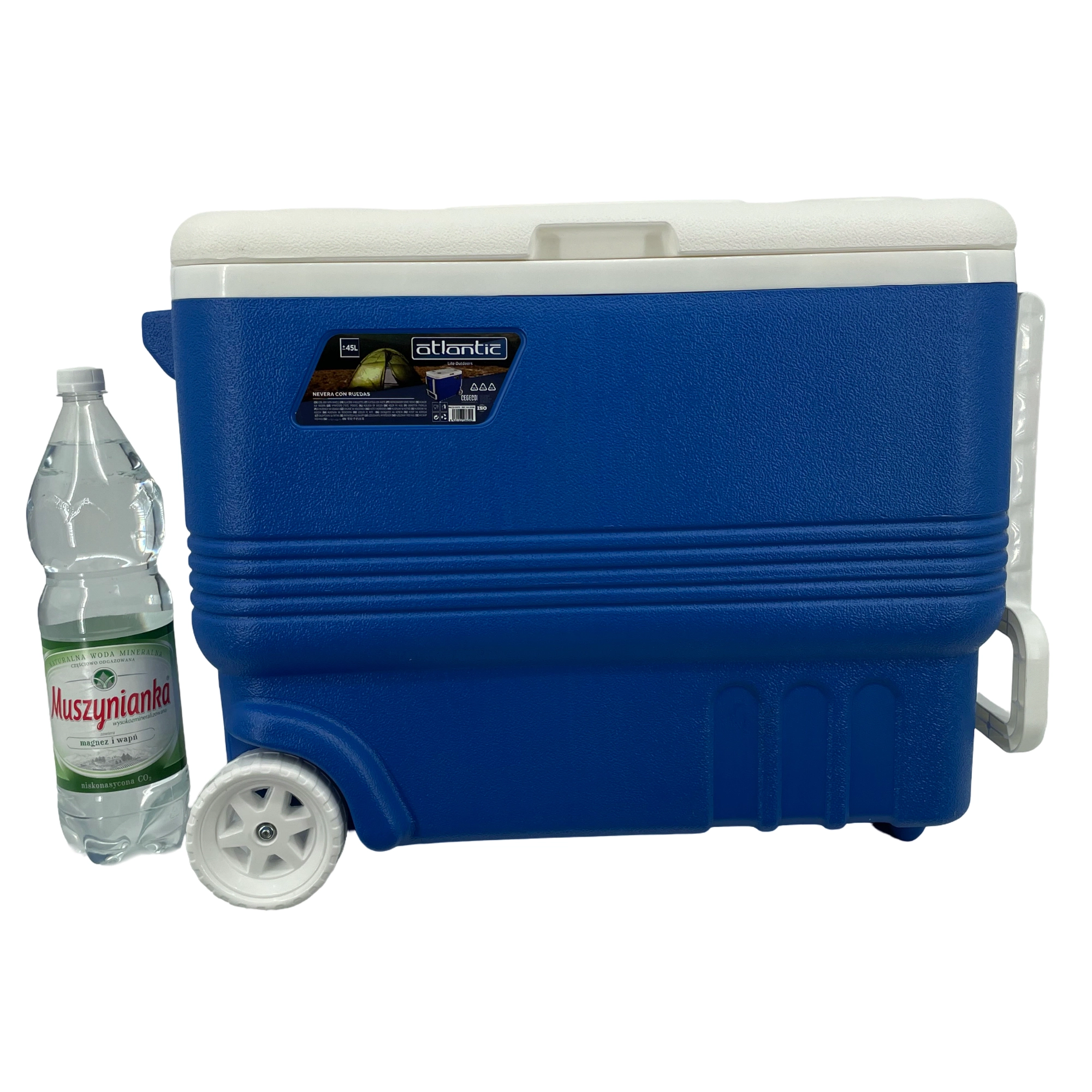 Lichte en ruime koelbox met een inhoud van 45 l, voorzien van praktische wielen en een uitschuifbare hendel. Ideaal voor uitstapjes, kamperen en het strand. Gemaakt in de EU van duurzaam polypropyleen, eenvoudig te reinigen en dankzij de hoogwaardige isolatie blijft de inhoud lang koel. In het deksel zijn bekerhouders geïntegreerd voor maximaal comfort. Grote capaciteit, eenvoudig vervoer en betrouwbare koeling voor uw drankjes en etenswaren.