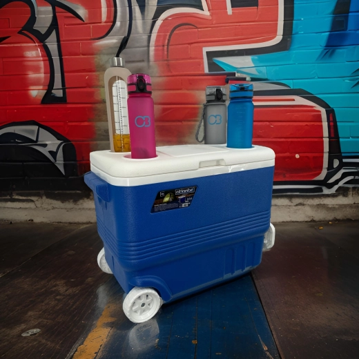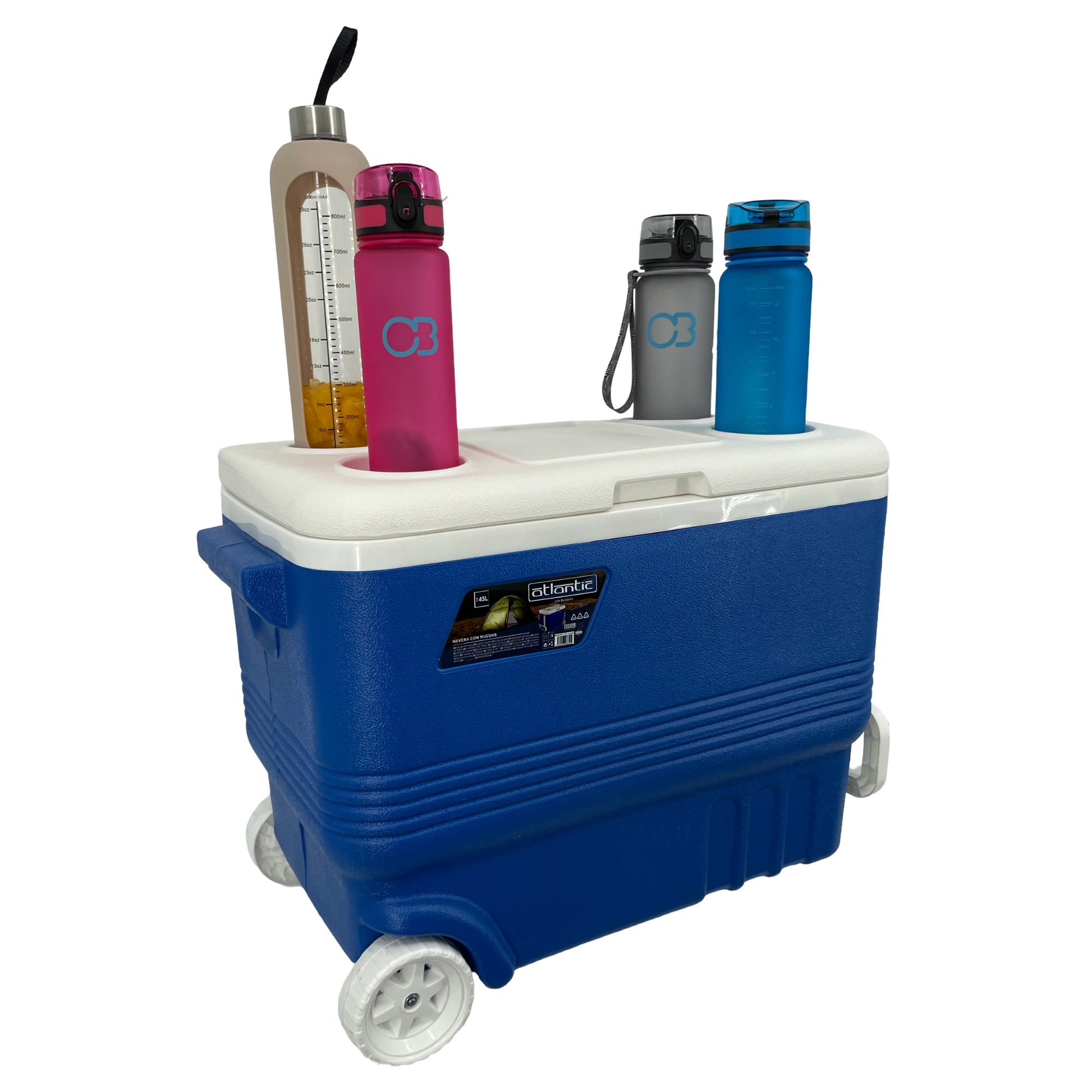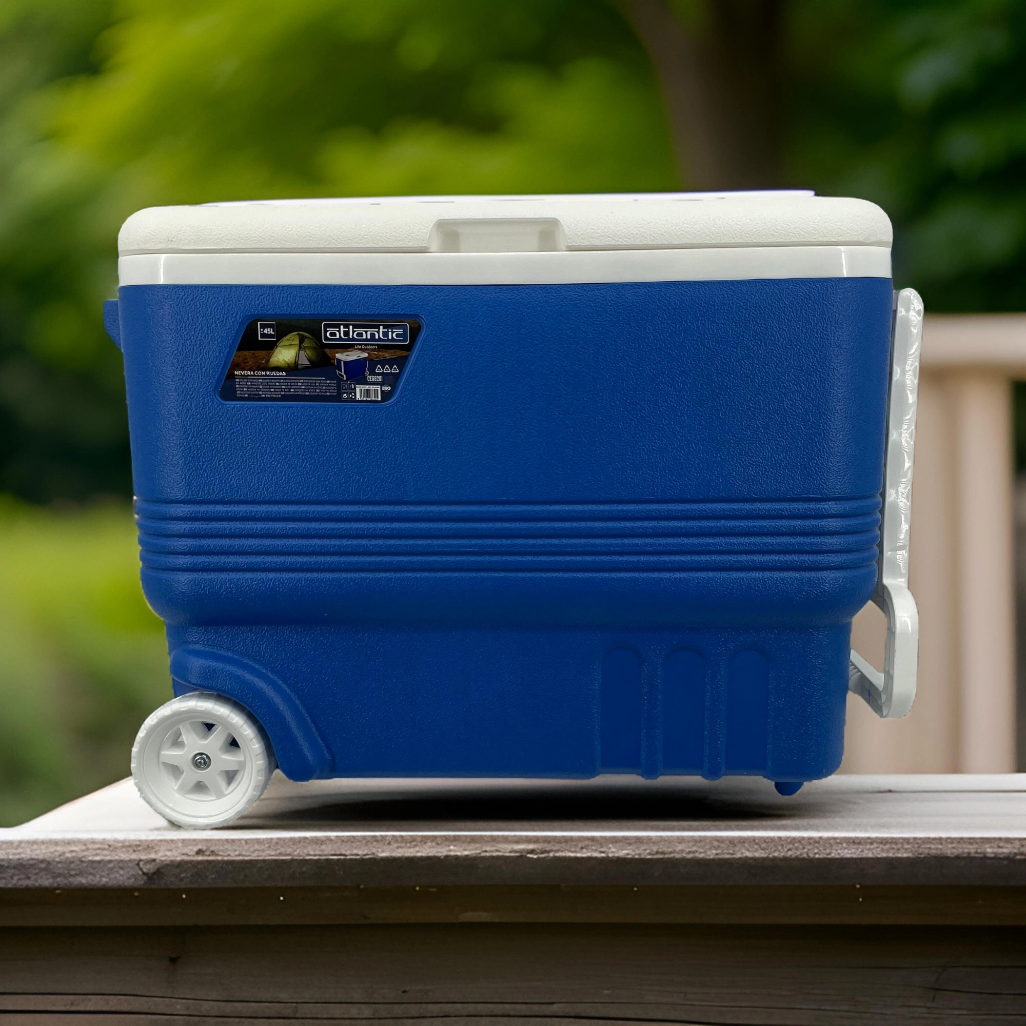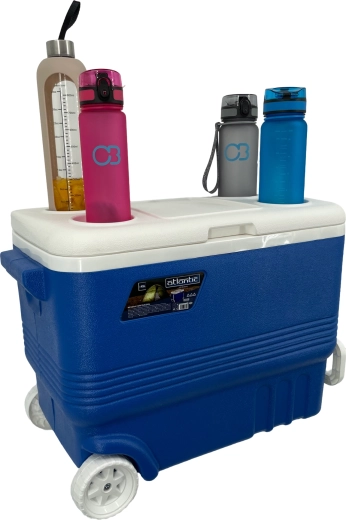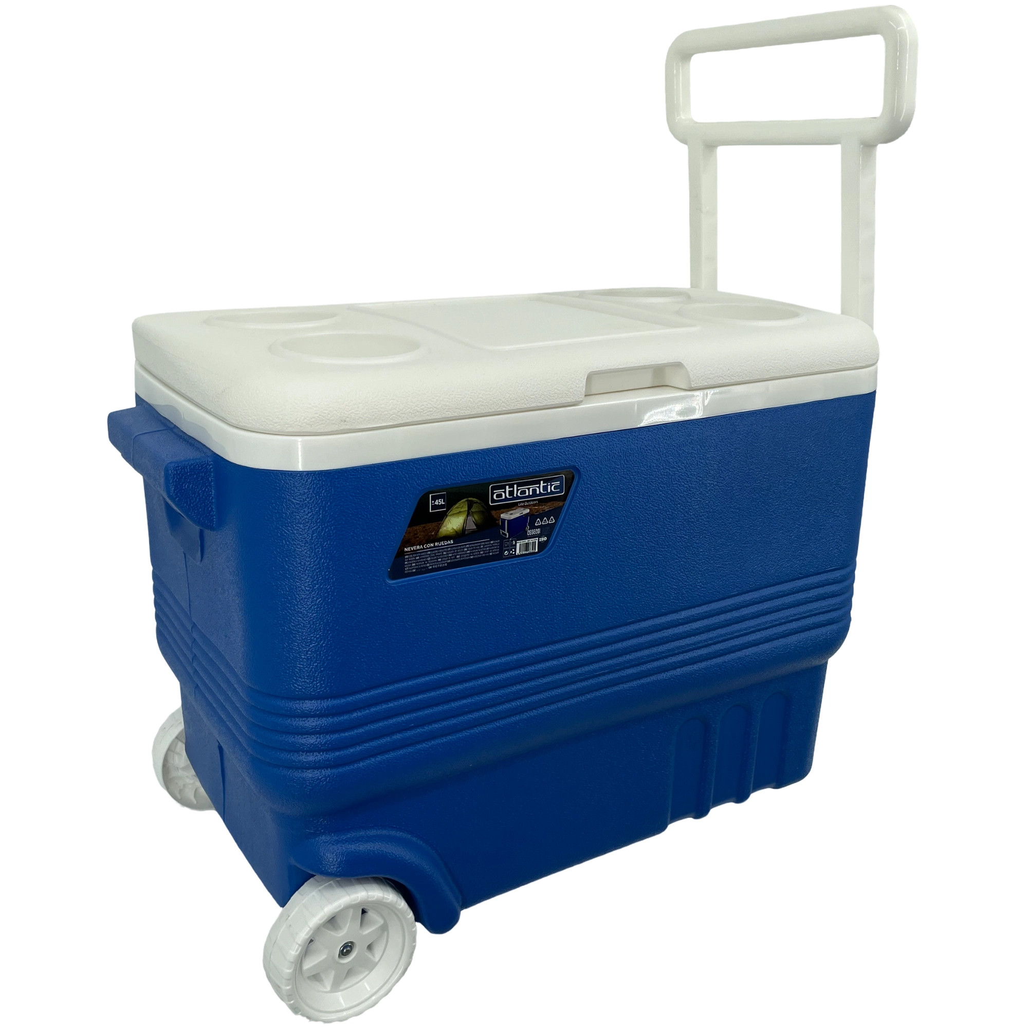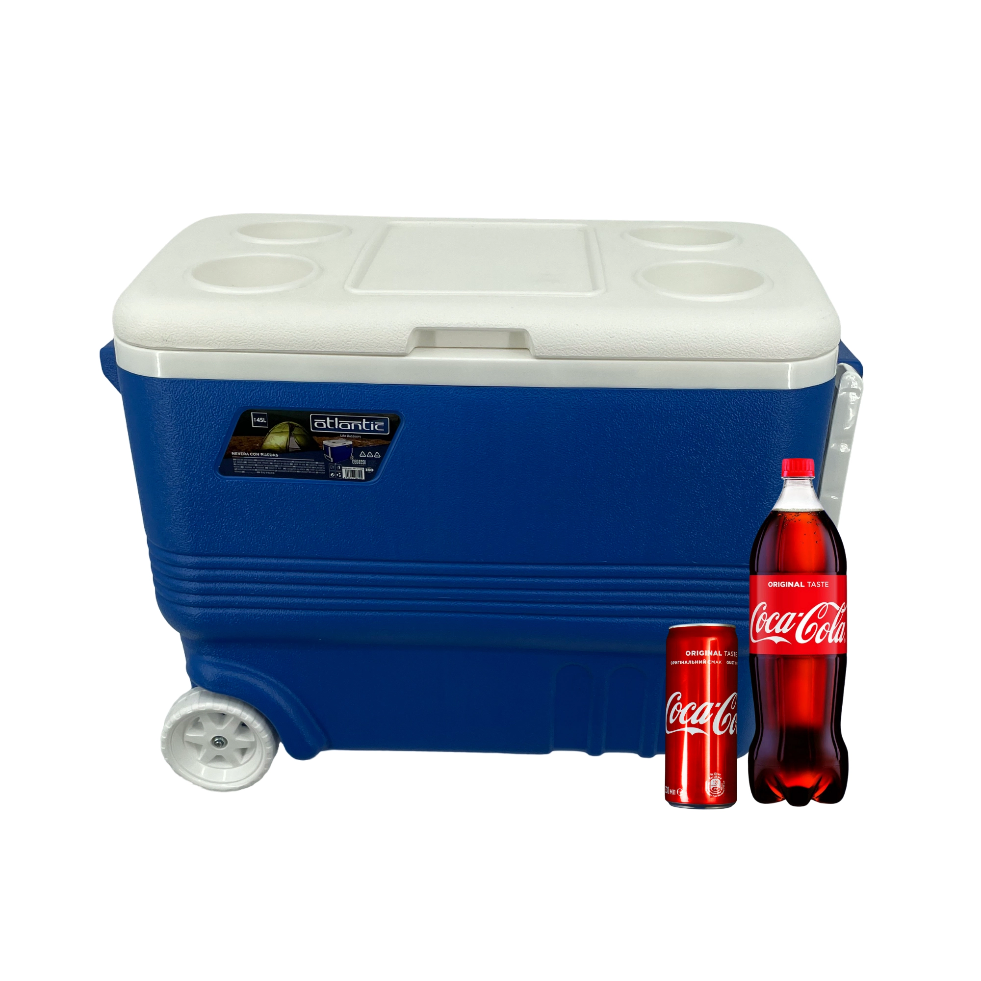 Lichte en ruime koelbox met een inhoud van 45 l, voorzien van praktische wielen en een uitschuifbare hendel. Ideaal voor uitstapjes, kamperen en het strand. Gemaakt in de EU van duurzaam polypropyleen, eenvoudig te reinigen en dankzij de hoogwaardige isolatie blijft de inhoud lang koel. In het deksel zijn bekerhouders geïntegreerd voor maximaal comfort. Grote capaciteit, eenvoudig vervoer en betrouwbare koeling voor uw drankjes en etenswaren.