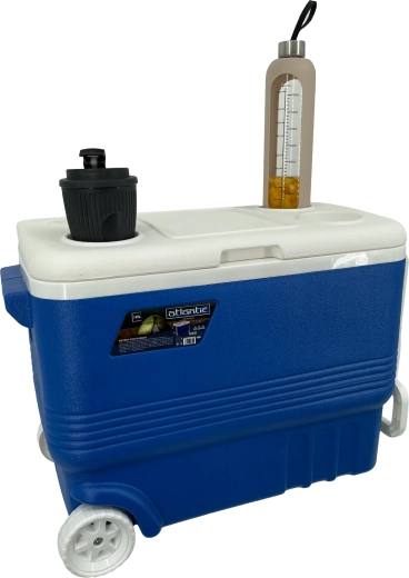 Ontdek het comfort en de functionaliteit van de KAMAI Atlantic 45 l koelbox. Dankzij de robuuste wielen en ergonomische handgreep verplaatst u hem moeiteloos, zelfs volledig beladen. De hoogwaardige isolatie houdt de temperatuur langdurig laag, vooral in combinatie met koelelementen. EU-productie garandeert voedselveilig contact en een lange levensduur.