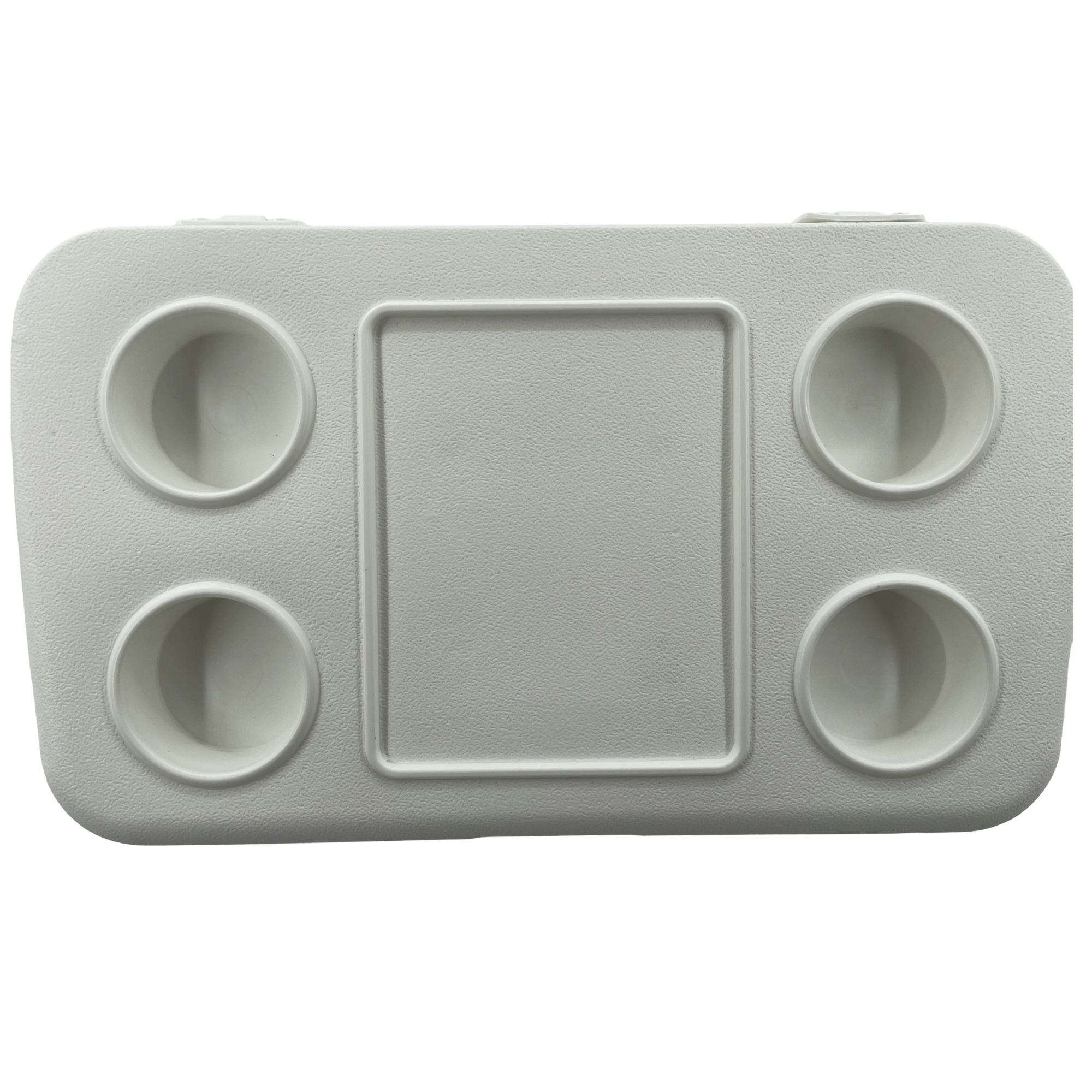 Het deksel biedt geïntegreerde houders, zodat blikjes en flessen altijd binnen handbereik en stabiel neergezet kunnen worden tijdens het pauzeren.