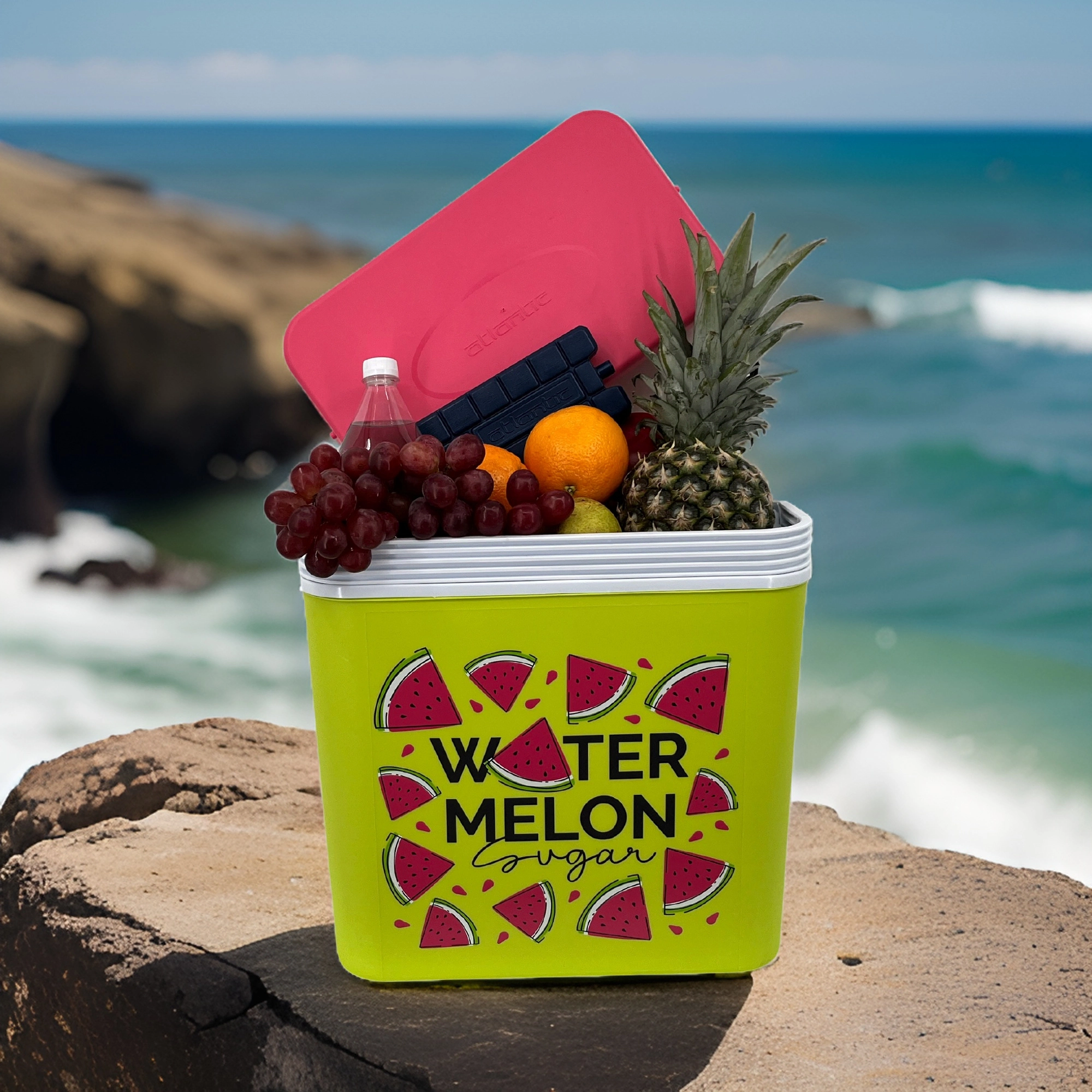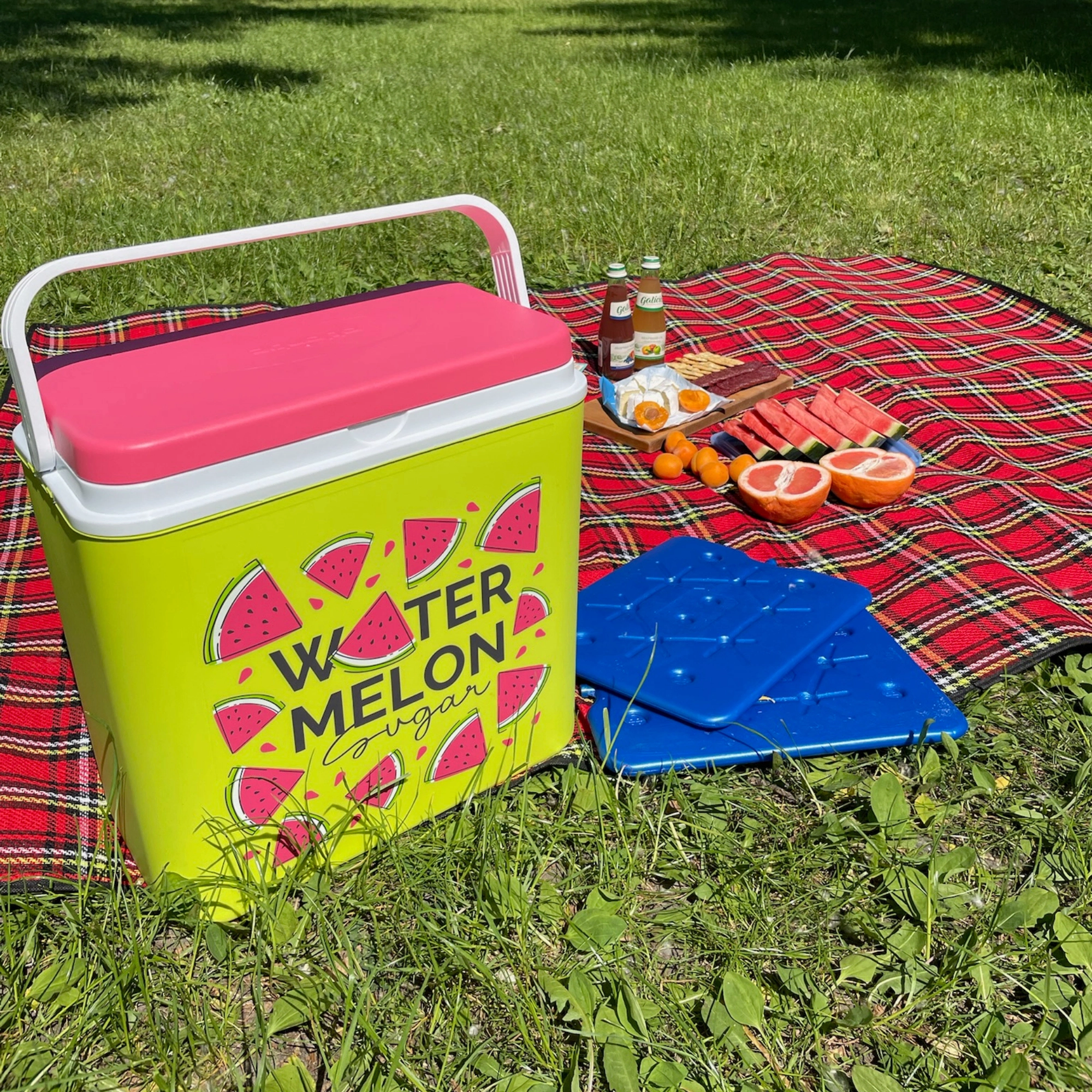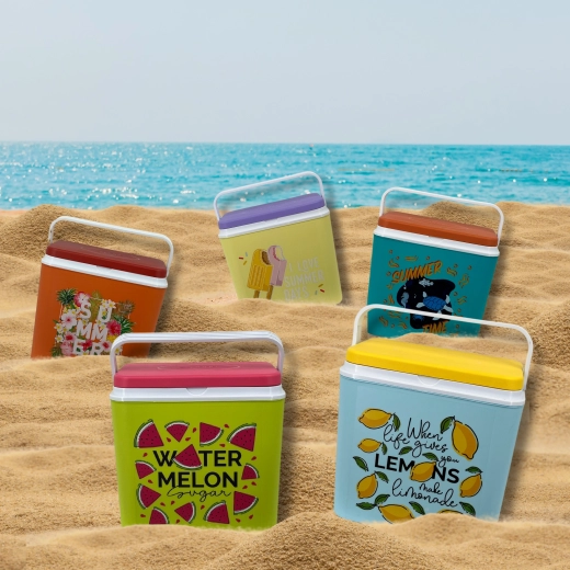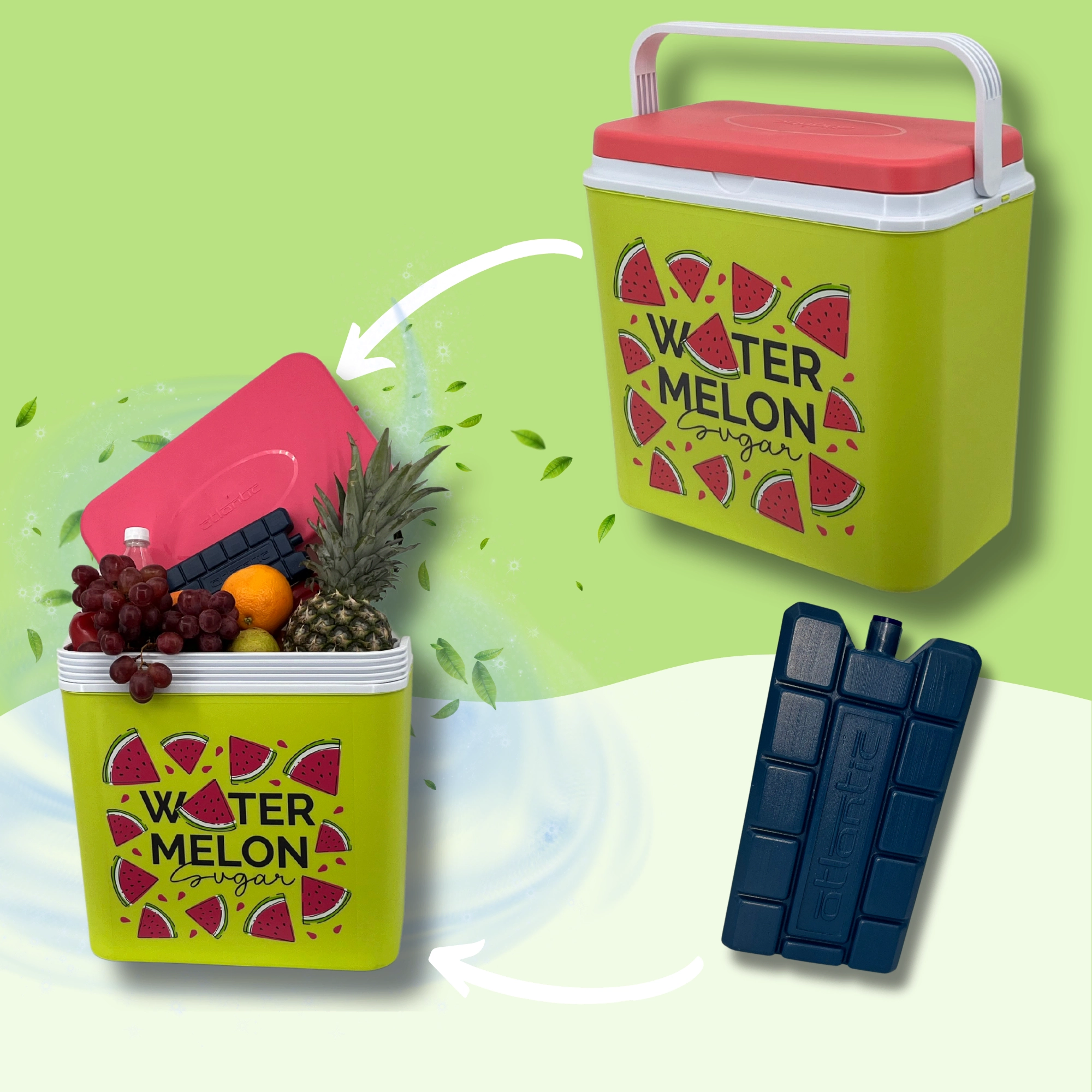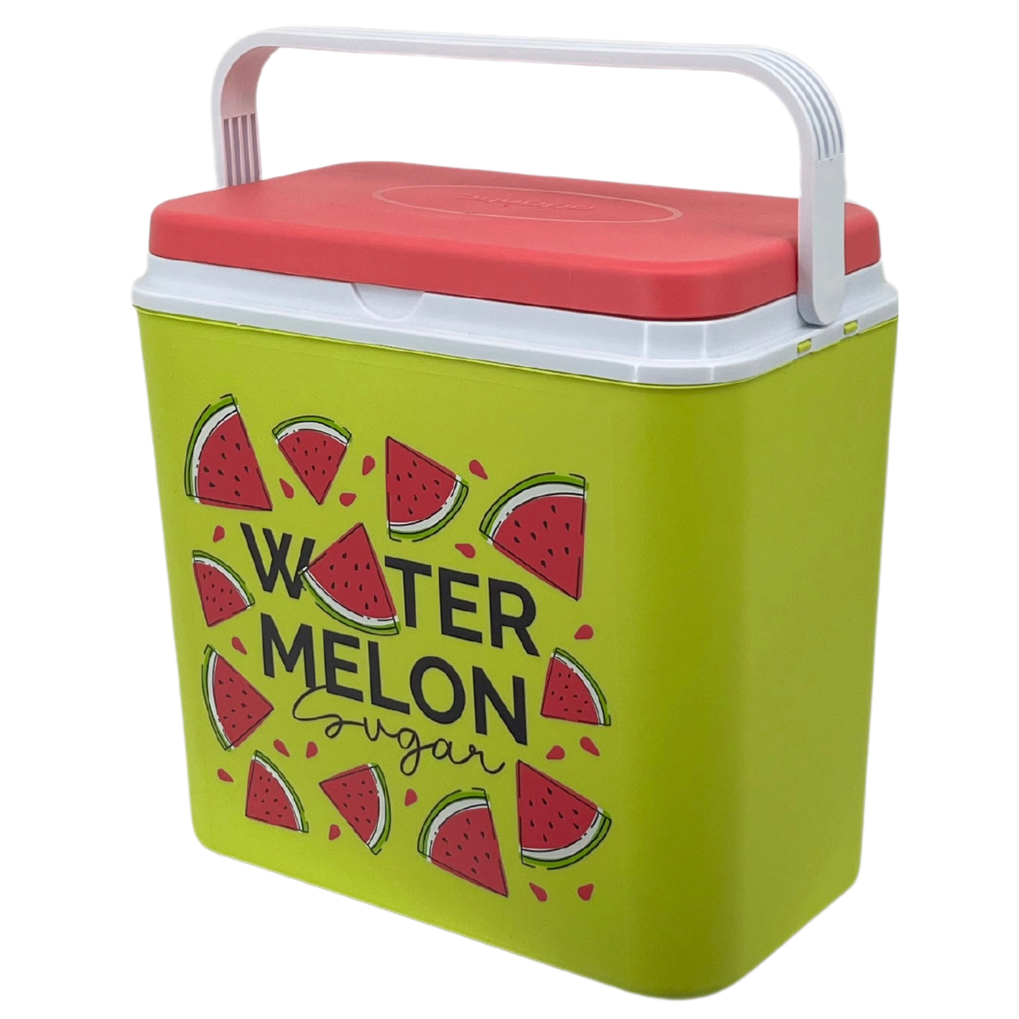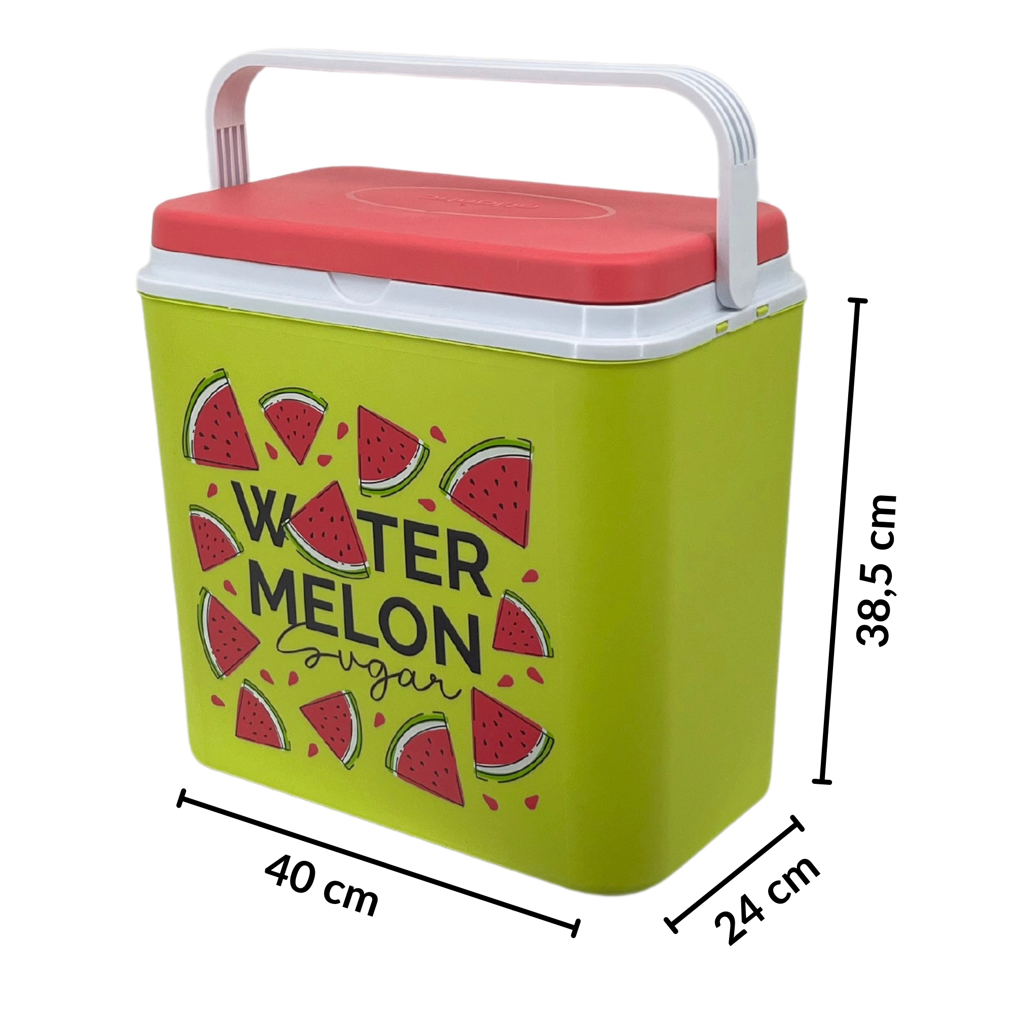 Stijlvolle passieve koelbox met een inhoud van 24 l houdt je drankjes en etenswaren lang vers dankzij de hoogwaardige isolatie en koeling met vrieselementen. Compacte afmetingen, een stevige draagbeugel voor eenvoudig transport en het zomerse WATERMELON-motief maken hem de perfecte keuze voor uitstapjes, strand en picknick. Gemaakt in de EU, veilig voor contact met levensmiddelen en gemakkelijk te reinigen.