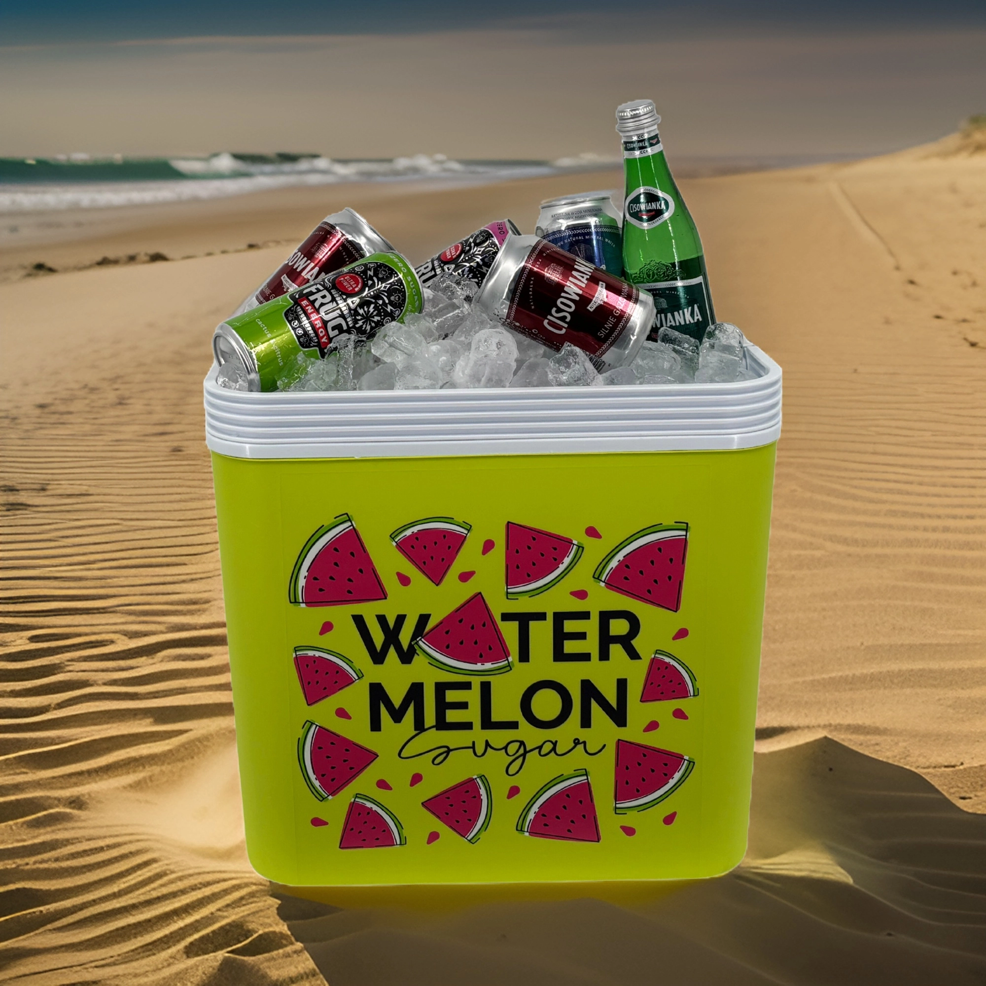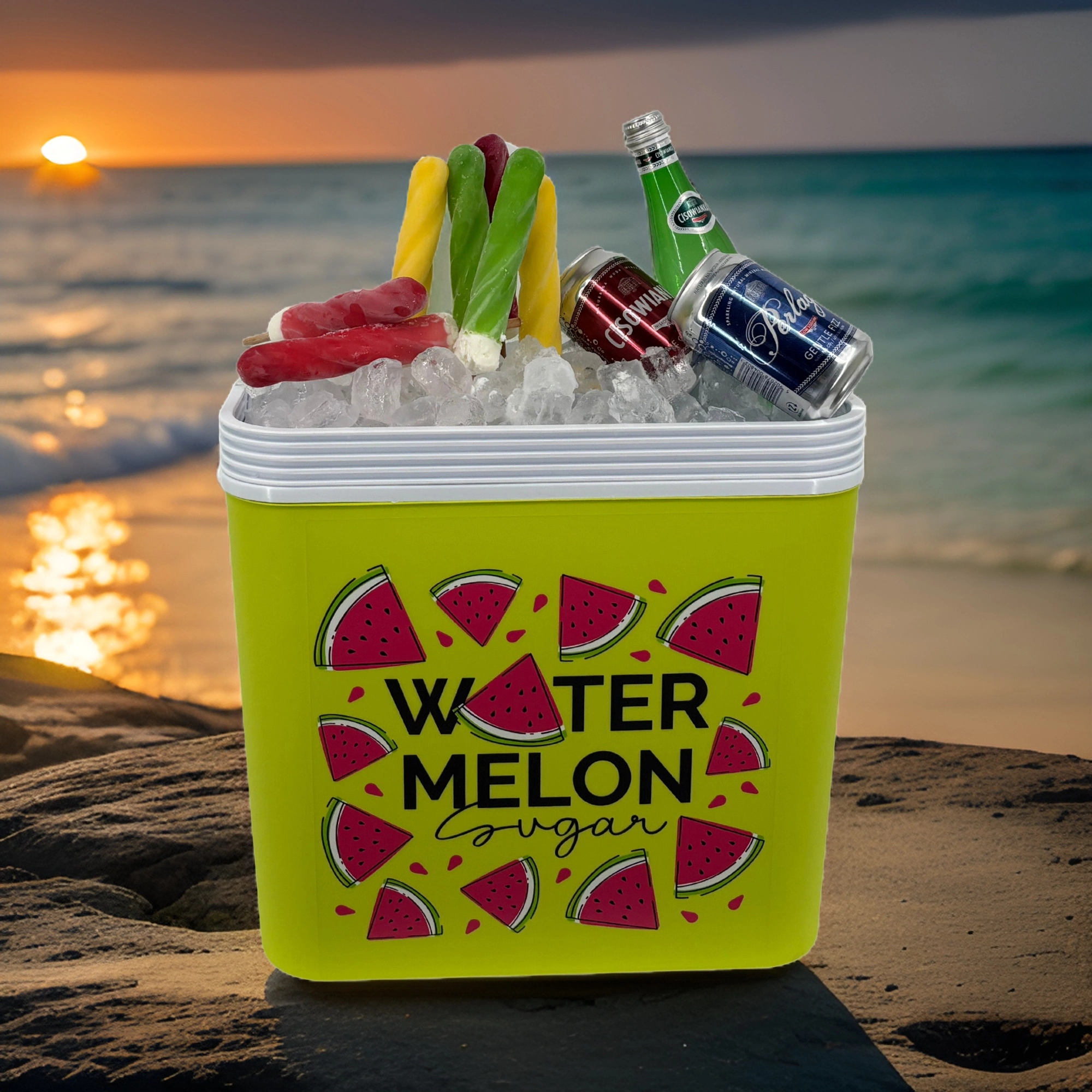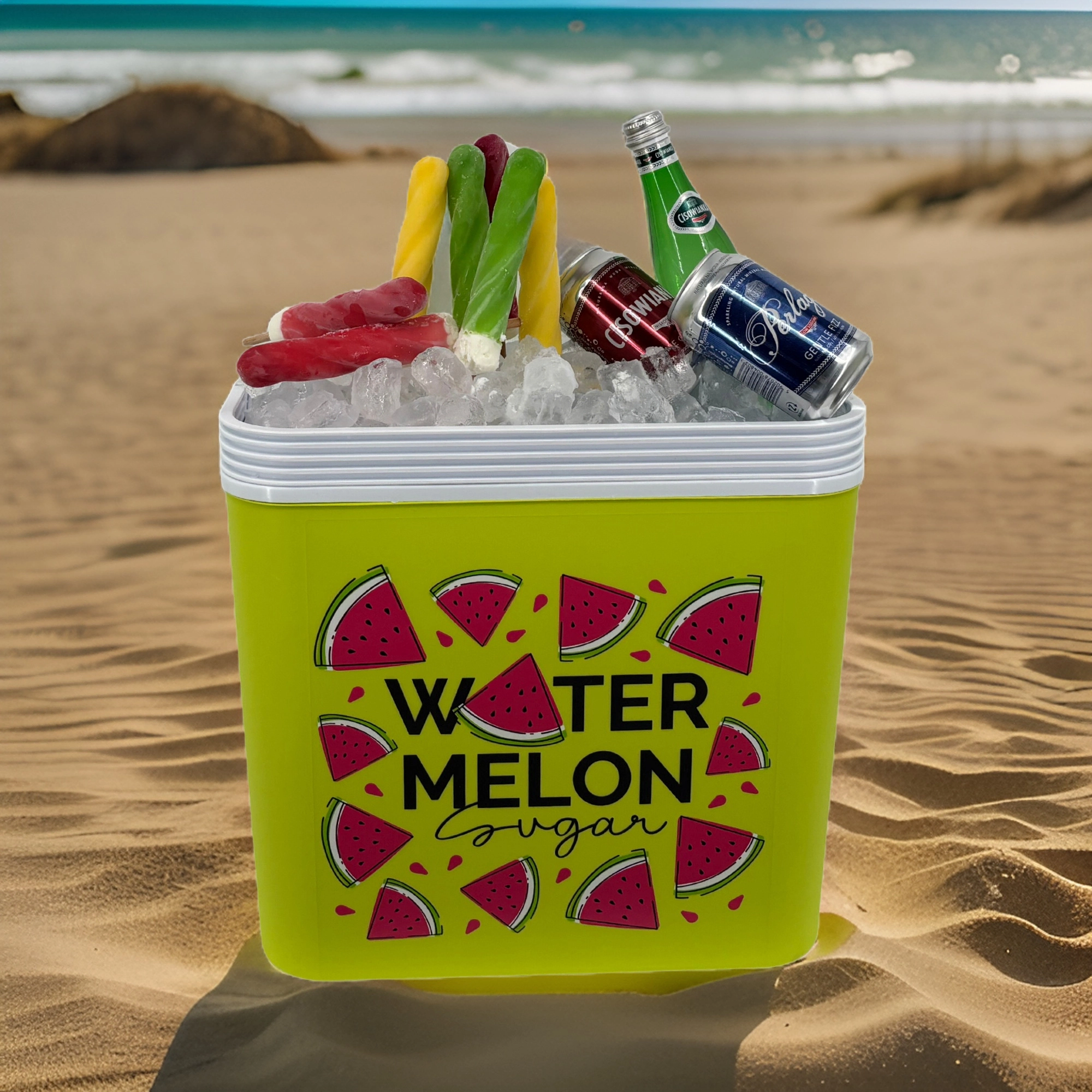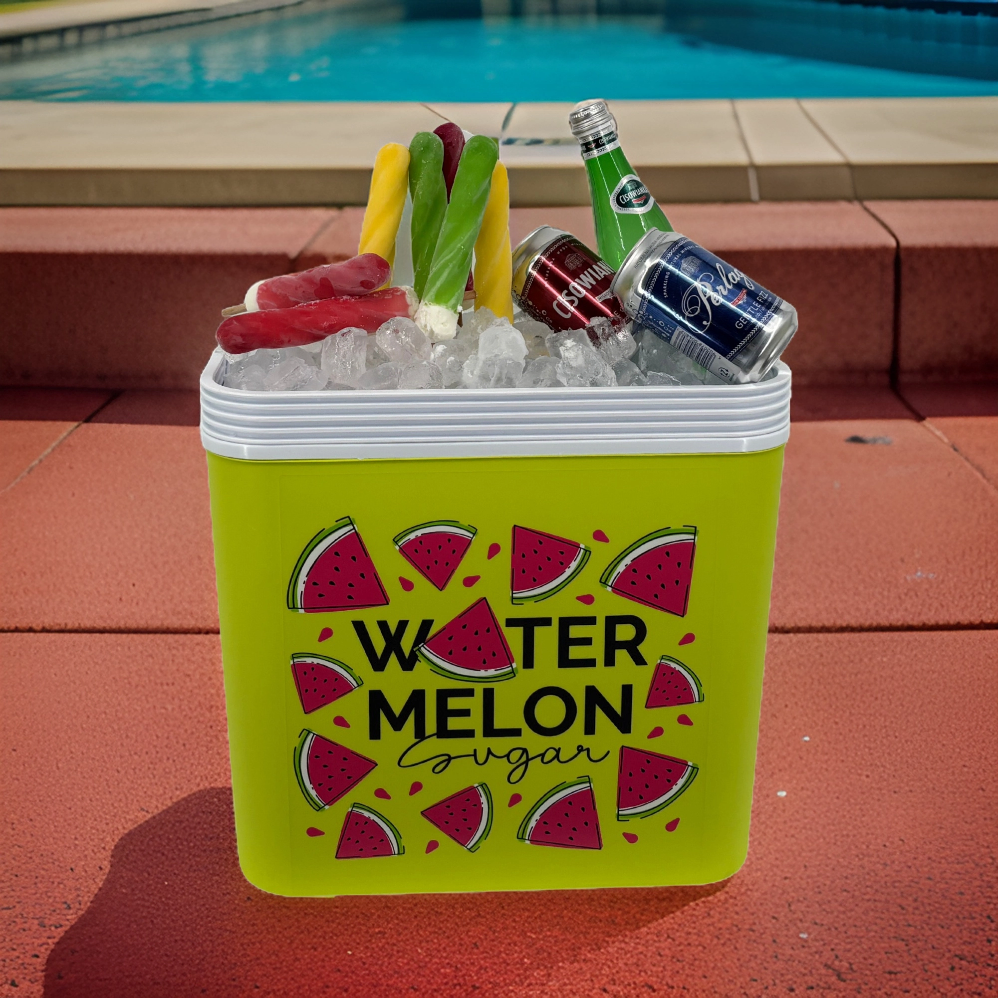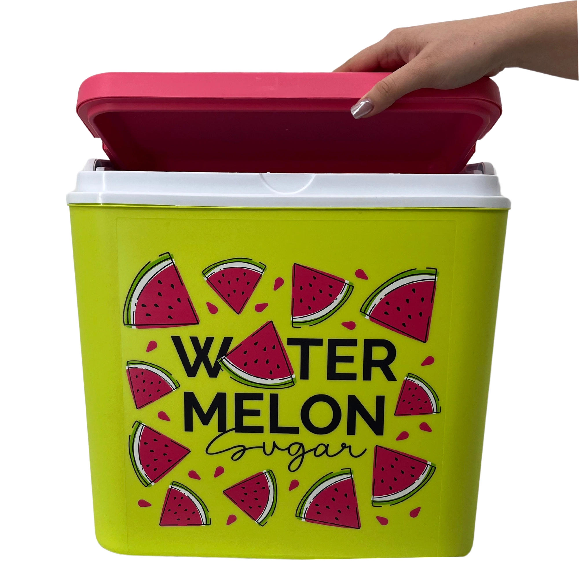 Stijlvolle passieve koelbox met een inhoud van 24 l houdt je drankjes en etenswaren lang vers dankzij de hoogwaardige isolatie en koeling met vrieselementen. Compacte afmetingen, een stevige draagbeugel voor eenvoudig transport en het zomerse WATERMELON-motief maken hem de perfecte keuze voor uitstapjes, strand en picknick. Gemaakt in de EU, veilig voor contact met levensmiddelen en gemakkelijk te reinigen.