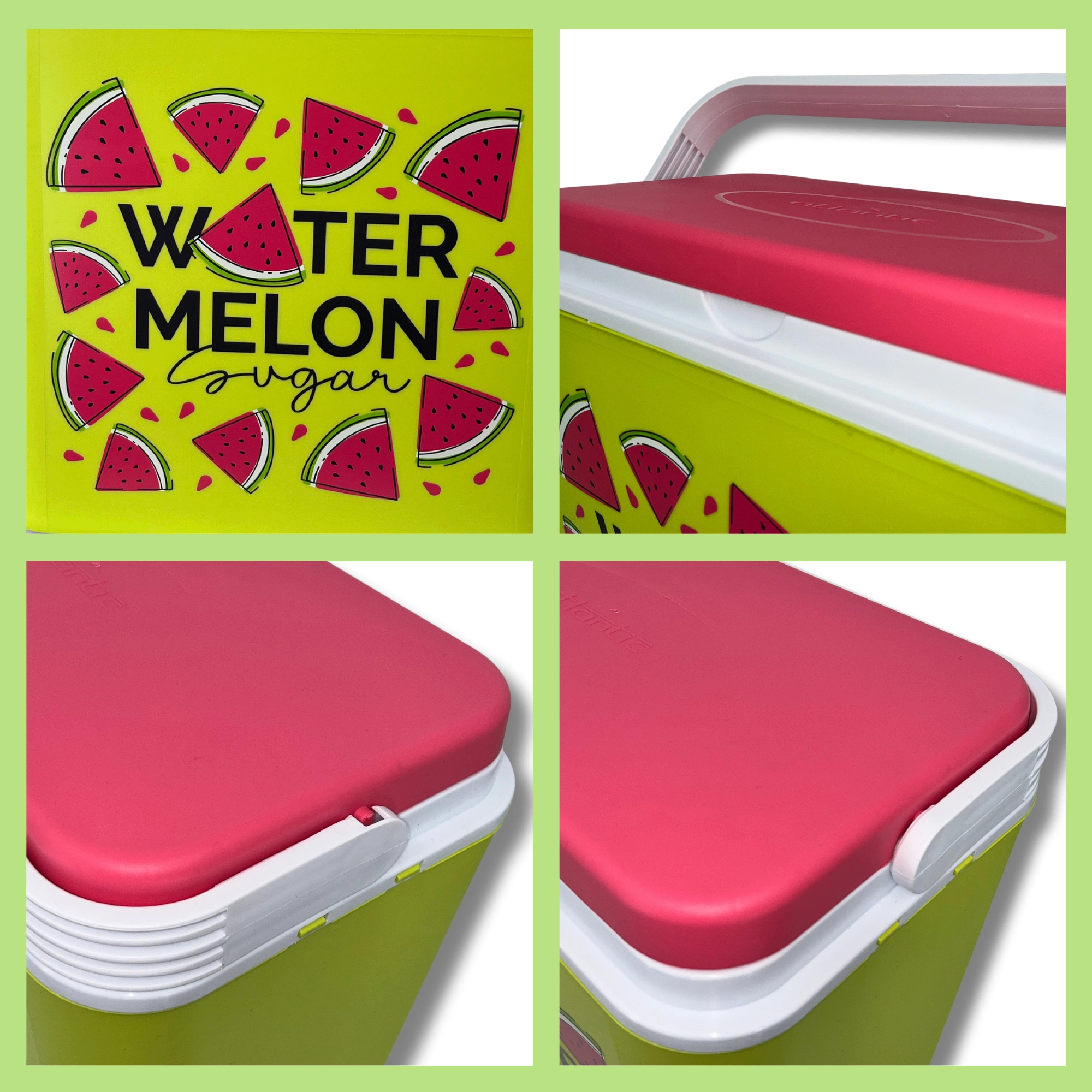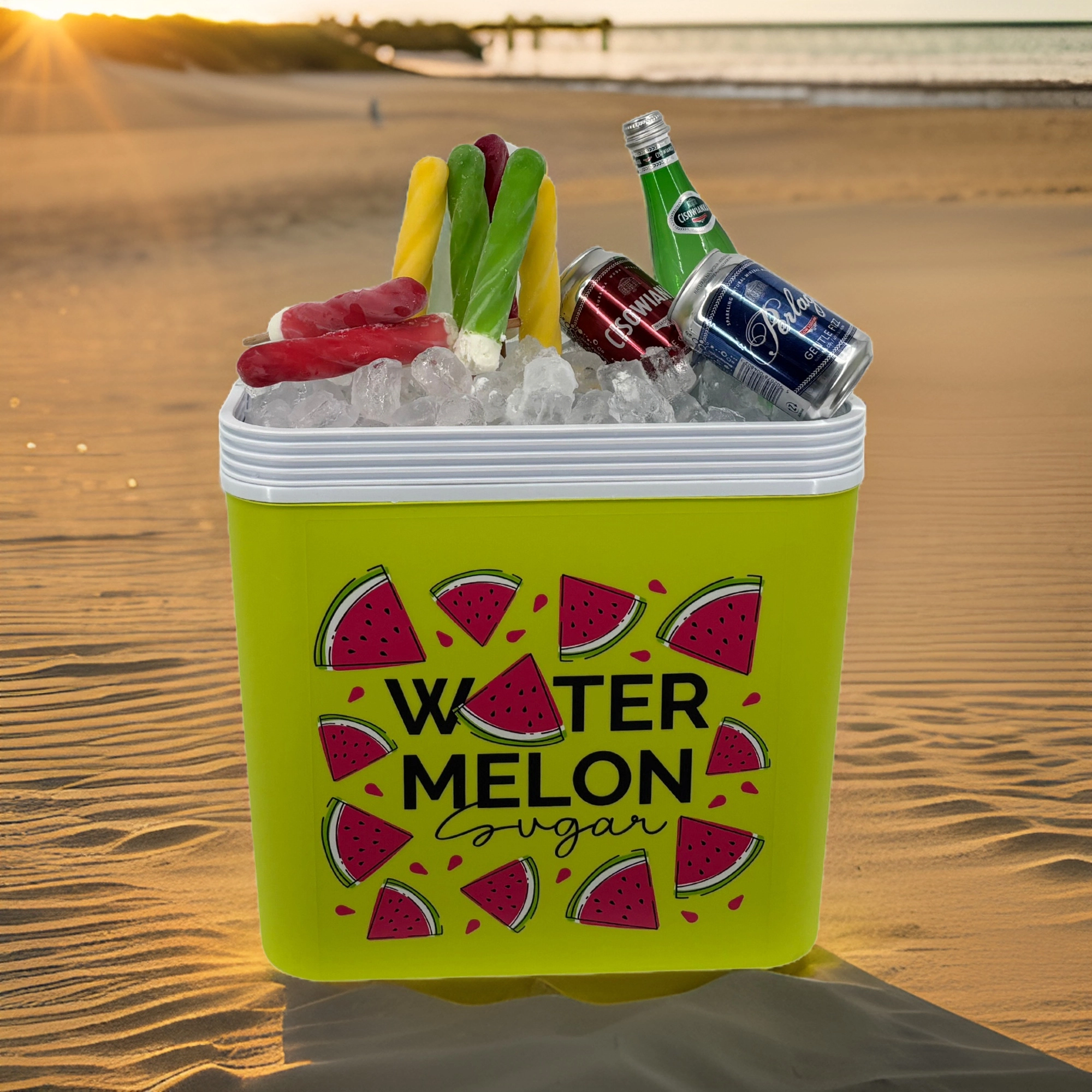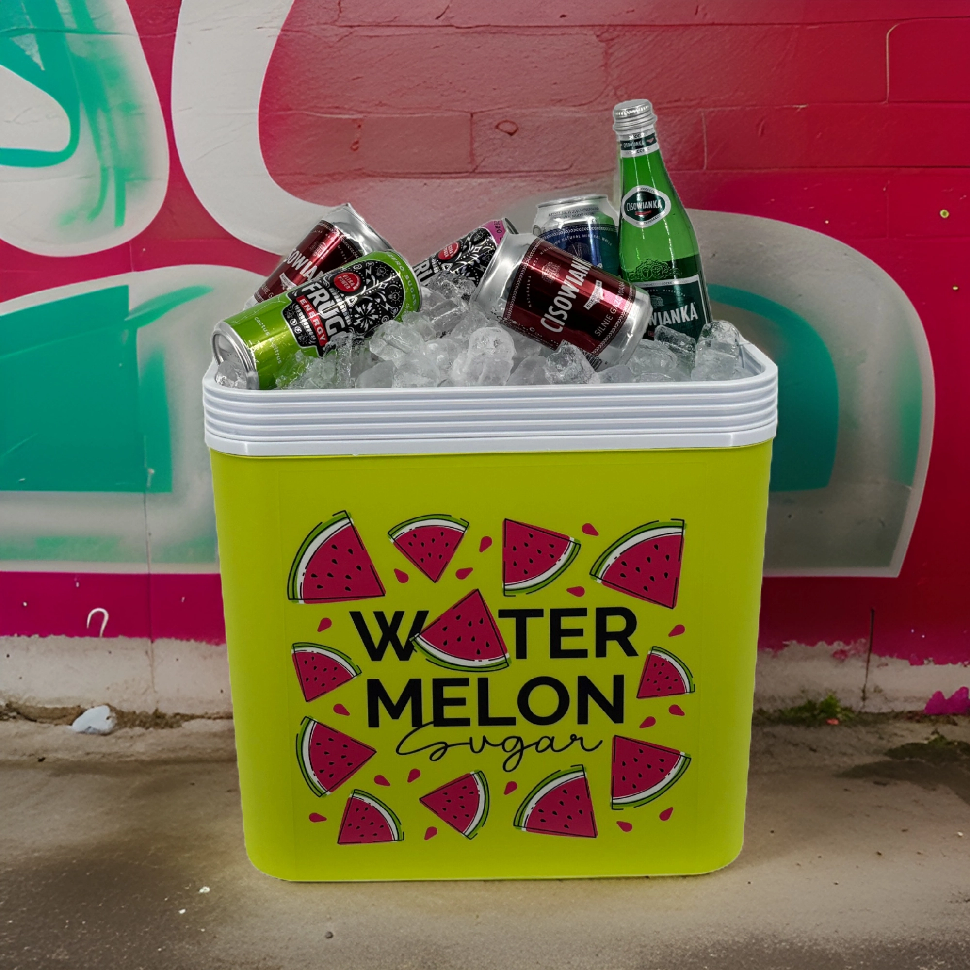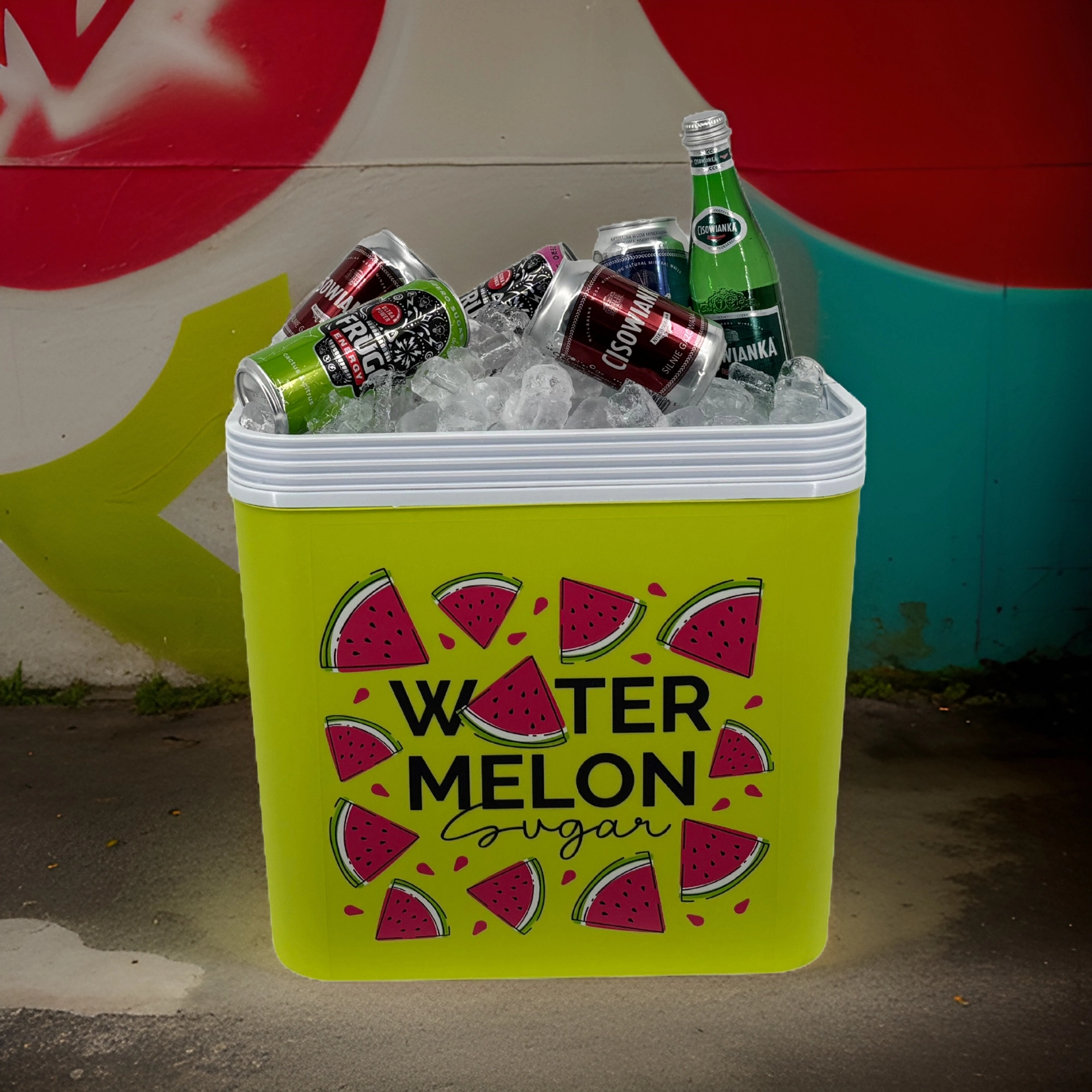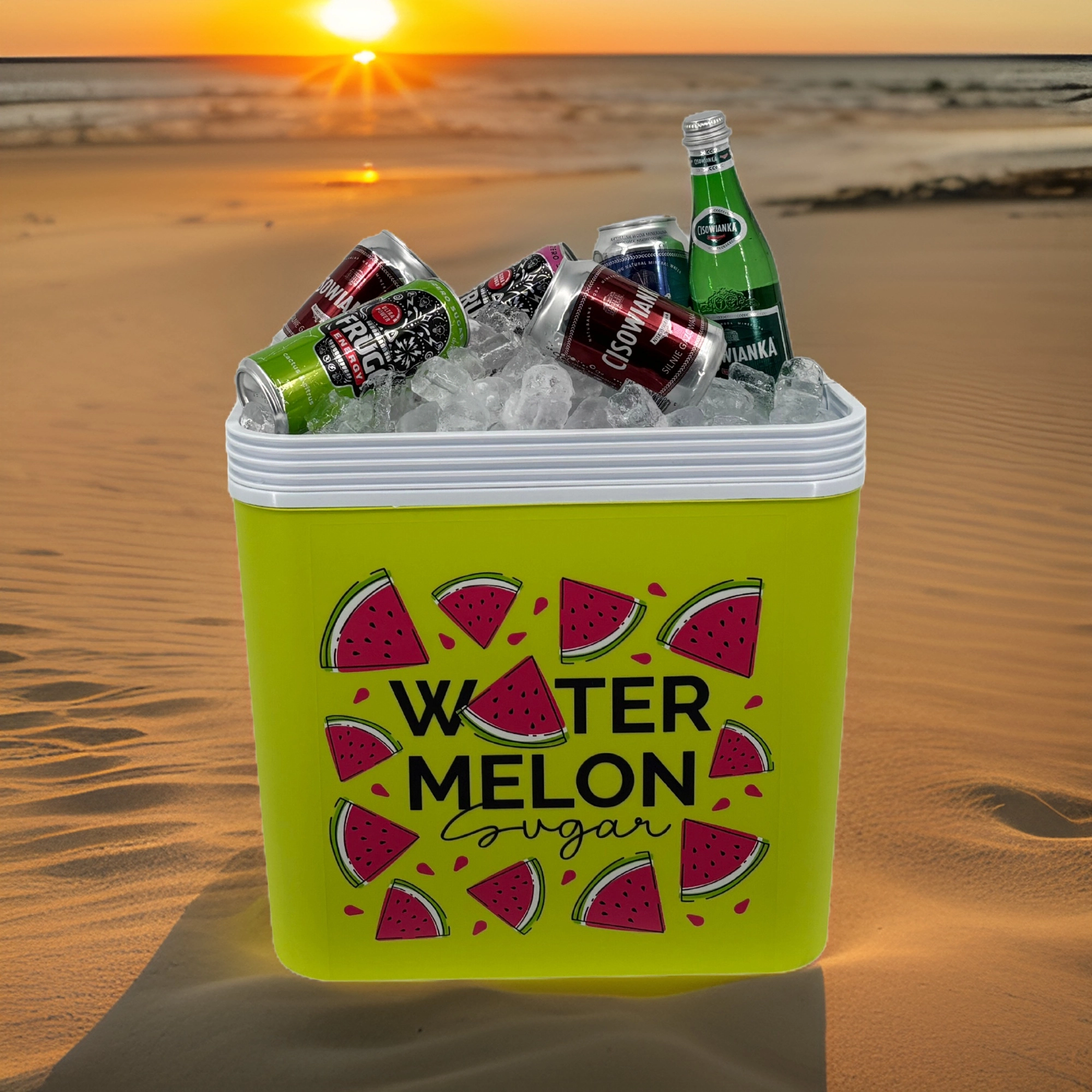 Stijlvolle passieve koelbox met een inhoud van 24 l houdt je drankjes en etenswaren lang vers dankzij de hoogwaardige isolatie en koeling met vrieselementen. Compacte afmetingen, een stevige draagbeugel voor eenvoudig transport en het zomerse WATERMELON-motief maken hem de perfecte keuze voor uitstapjes, strand en picknick. Gemaakt in de EU, veilig voor contact met levensmiddelen en gemakkelijk te reinigen.