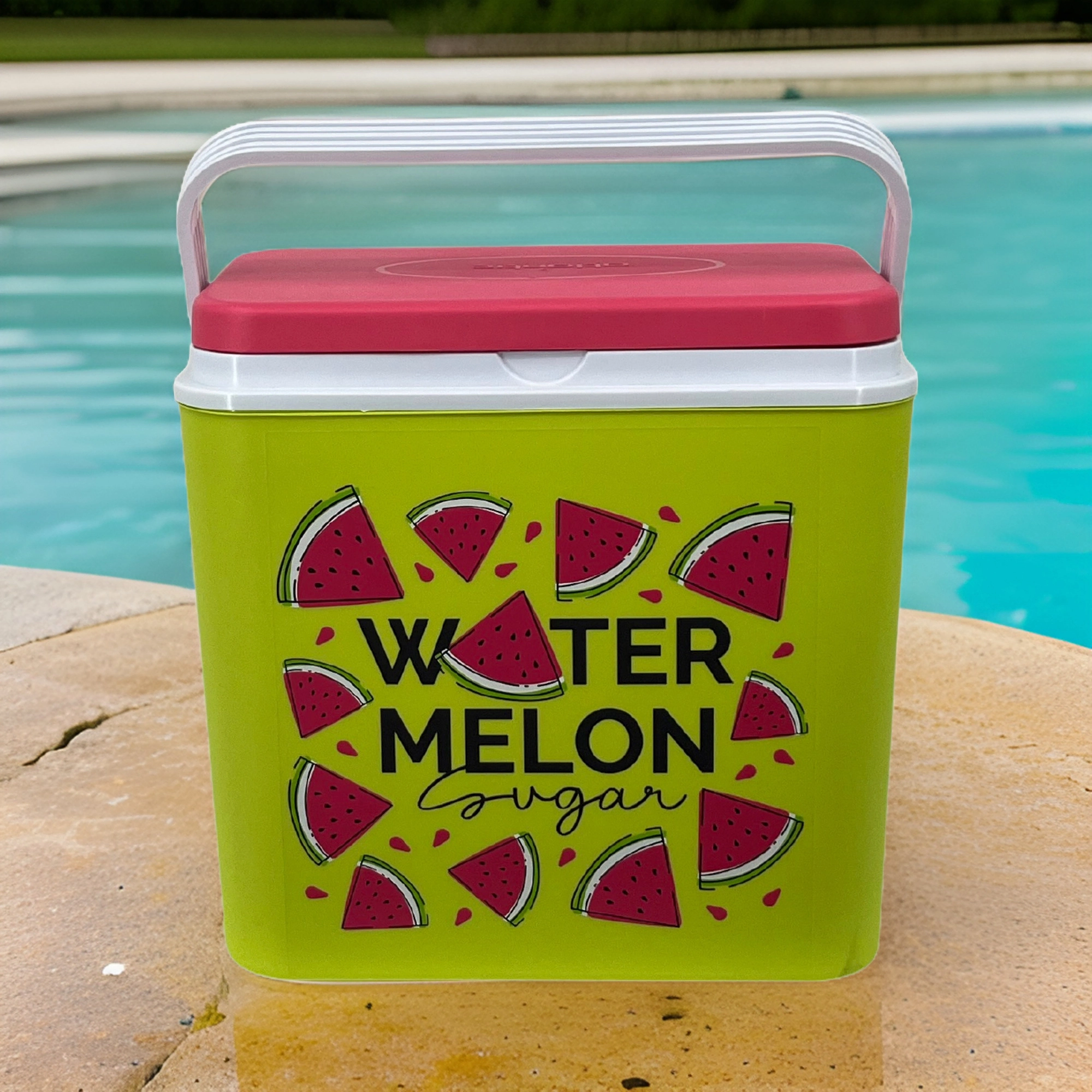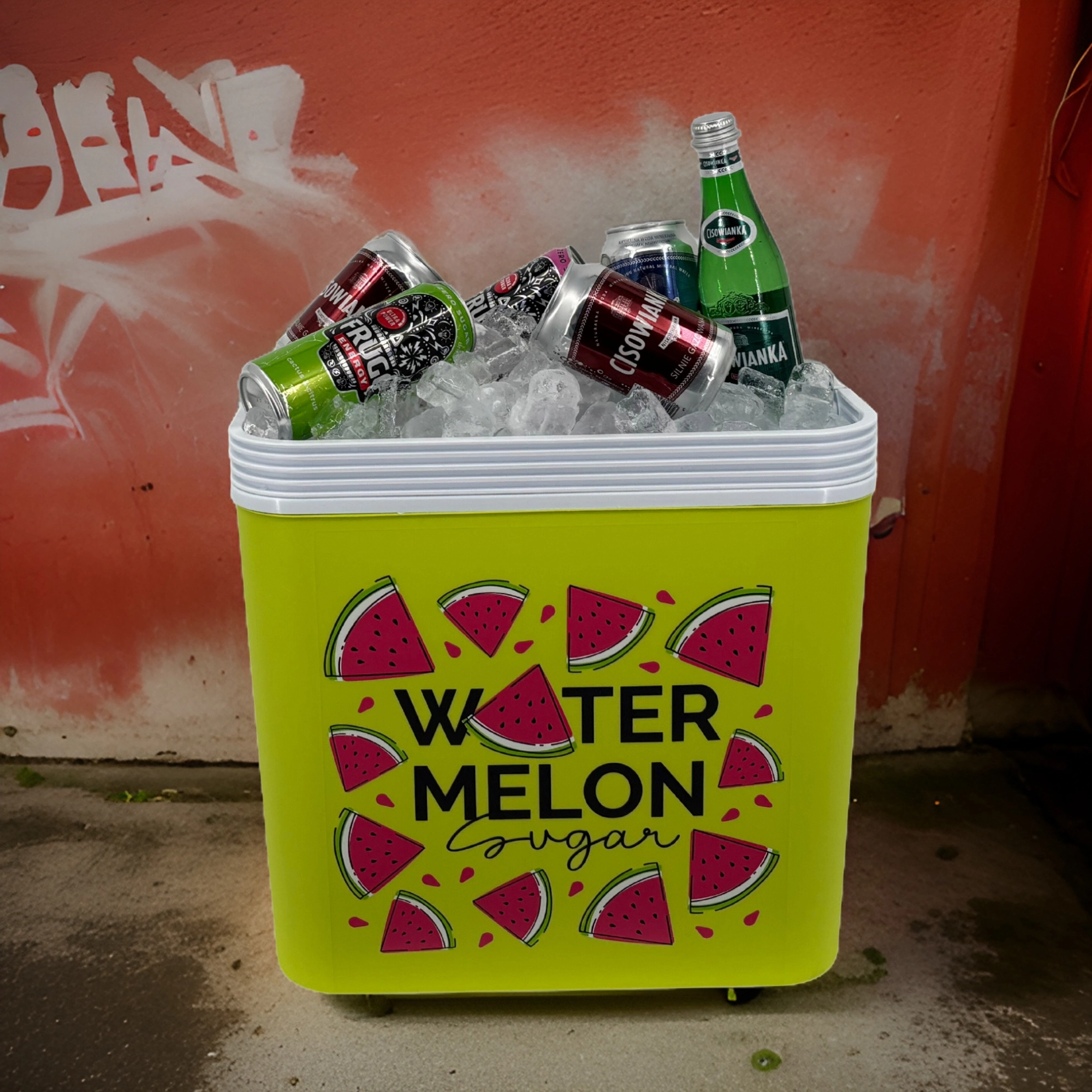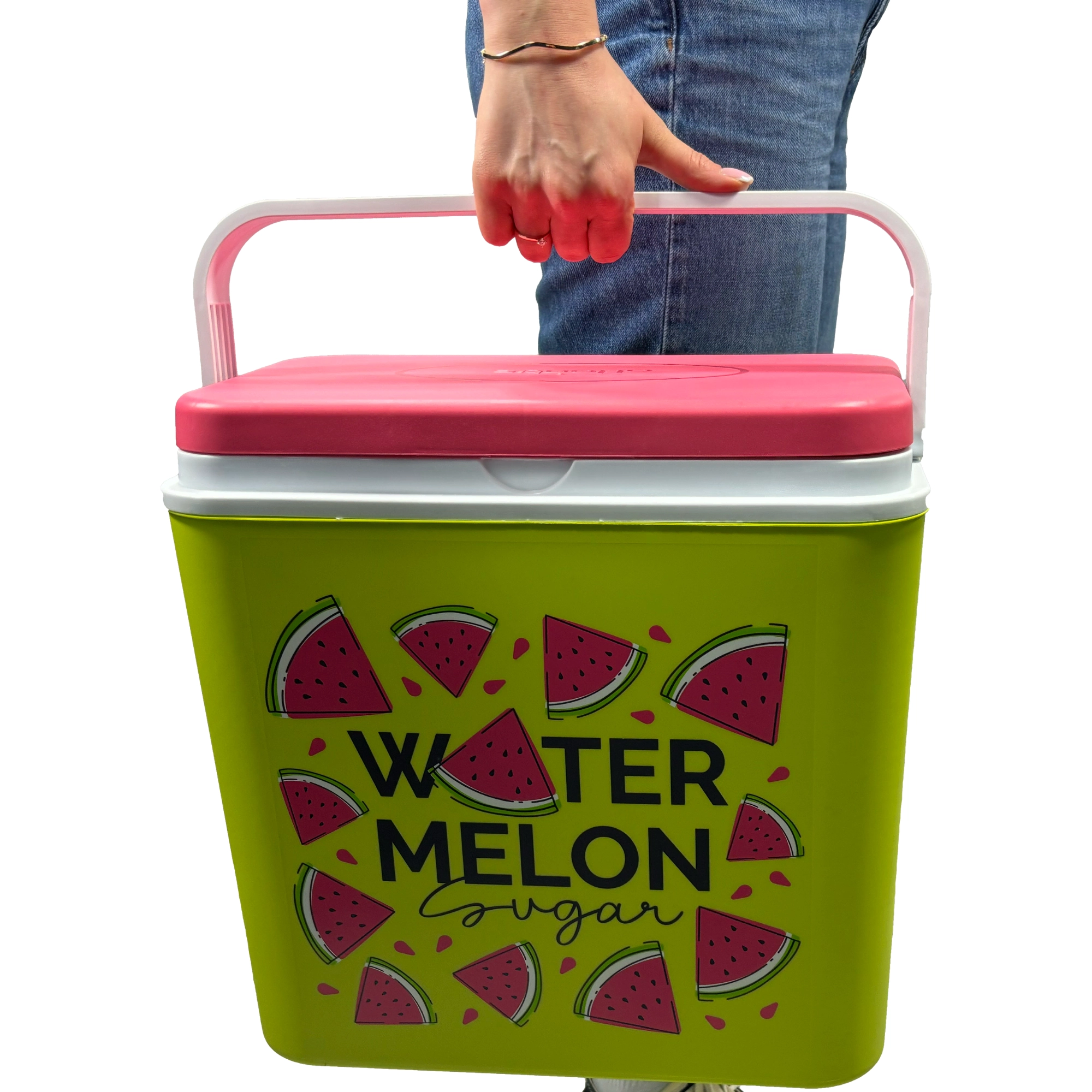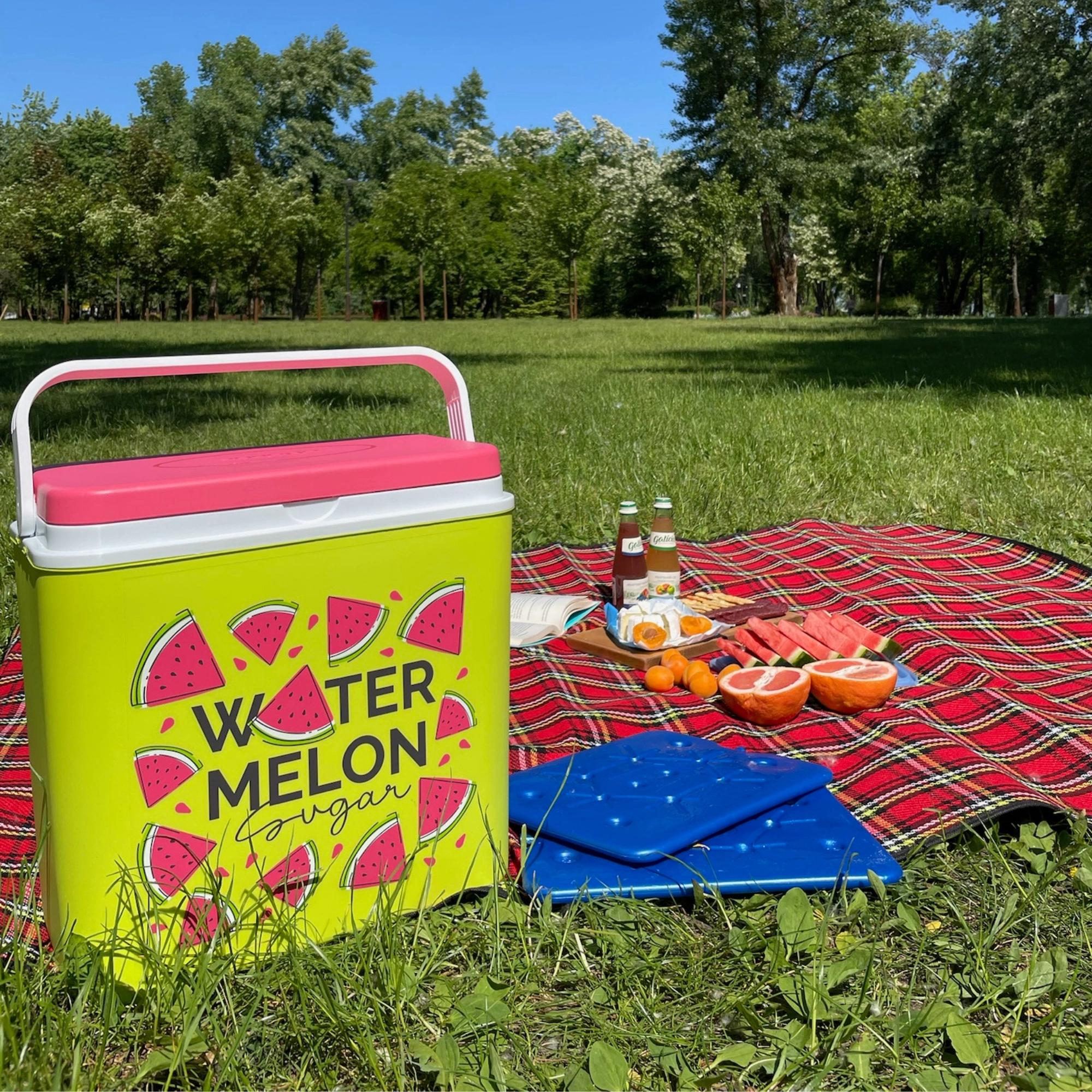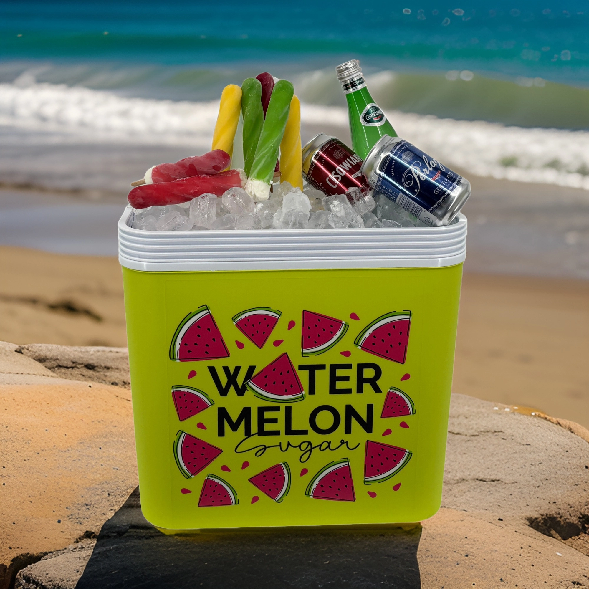 Stijlvolle passieve koelbox met een inhoud van 24 l houdt je drankjes en etenswaren lang vers dankzij de hoogwaardige isolatie en koeling met vrieselementen. Compacte afmetingen, een stevige draagbeugel voor eenvoudig transport en het zomerse WATERMELON-motief maken hem de perfecte keuze voor uitstapjes, strand en picknick. Gemaakt in de EU, veilig voor contact met levensmiddelen en gemakkelijk te reinigen.