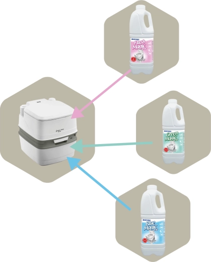 Neutraliseert onmiddellijk geuren, versnelt de afbraak van fecaliën en papier en laat een frisse dennengeur achter in uw mobiele toilet.