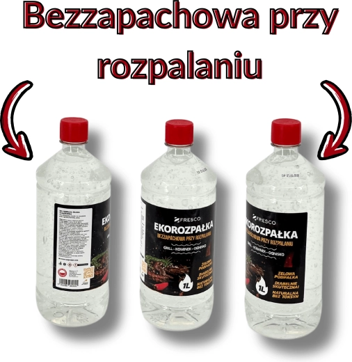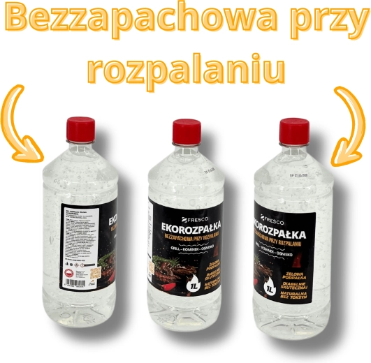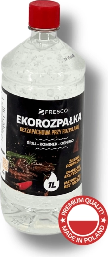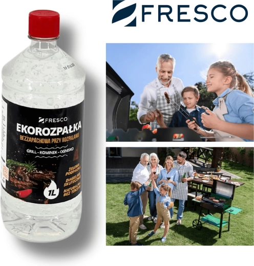 Praktische en veilige FRESCO milieuvriendelijke gel-aanmaakvloeistof met een inhoud van 1 l voor het eenvoudig aansteken van barbecue, open haard en vuurplaats. Volledig geurloos, zonder giftige toevoegingen en voldoet aan de norm PN‑EN 1860-3. Lange houdbaarheid van 5 jaar en kleurloze gelconsistentie voor comfortabel en effectief gebruik.