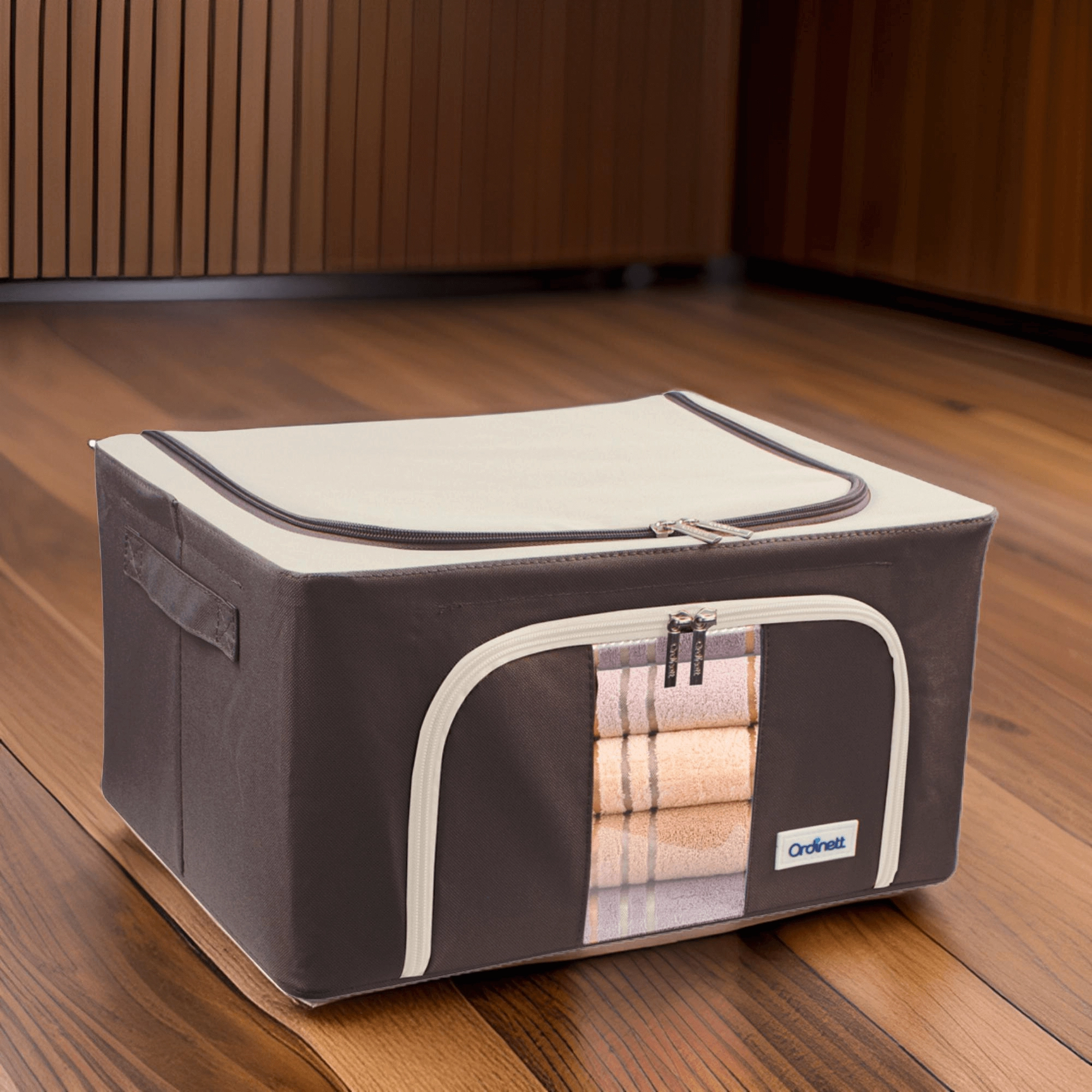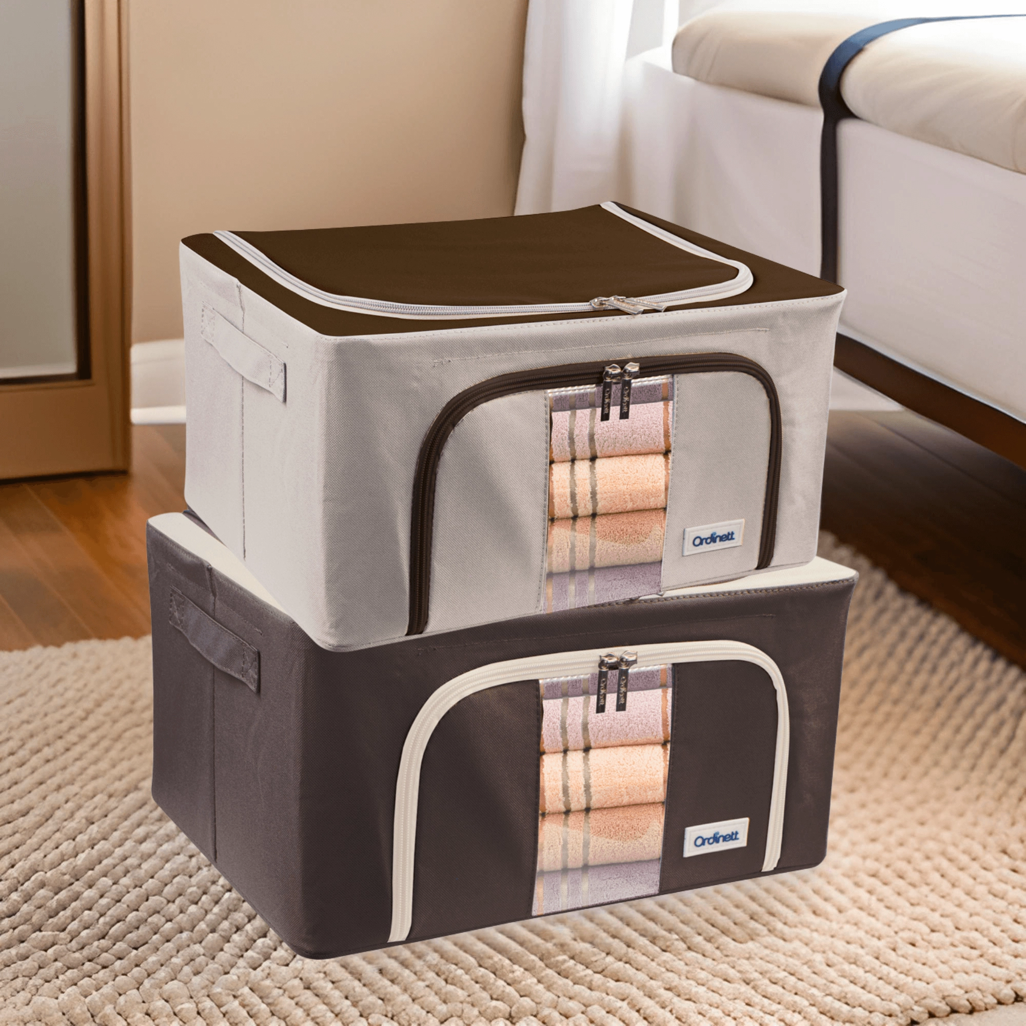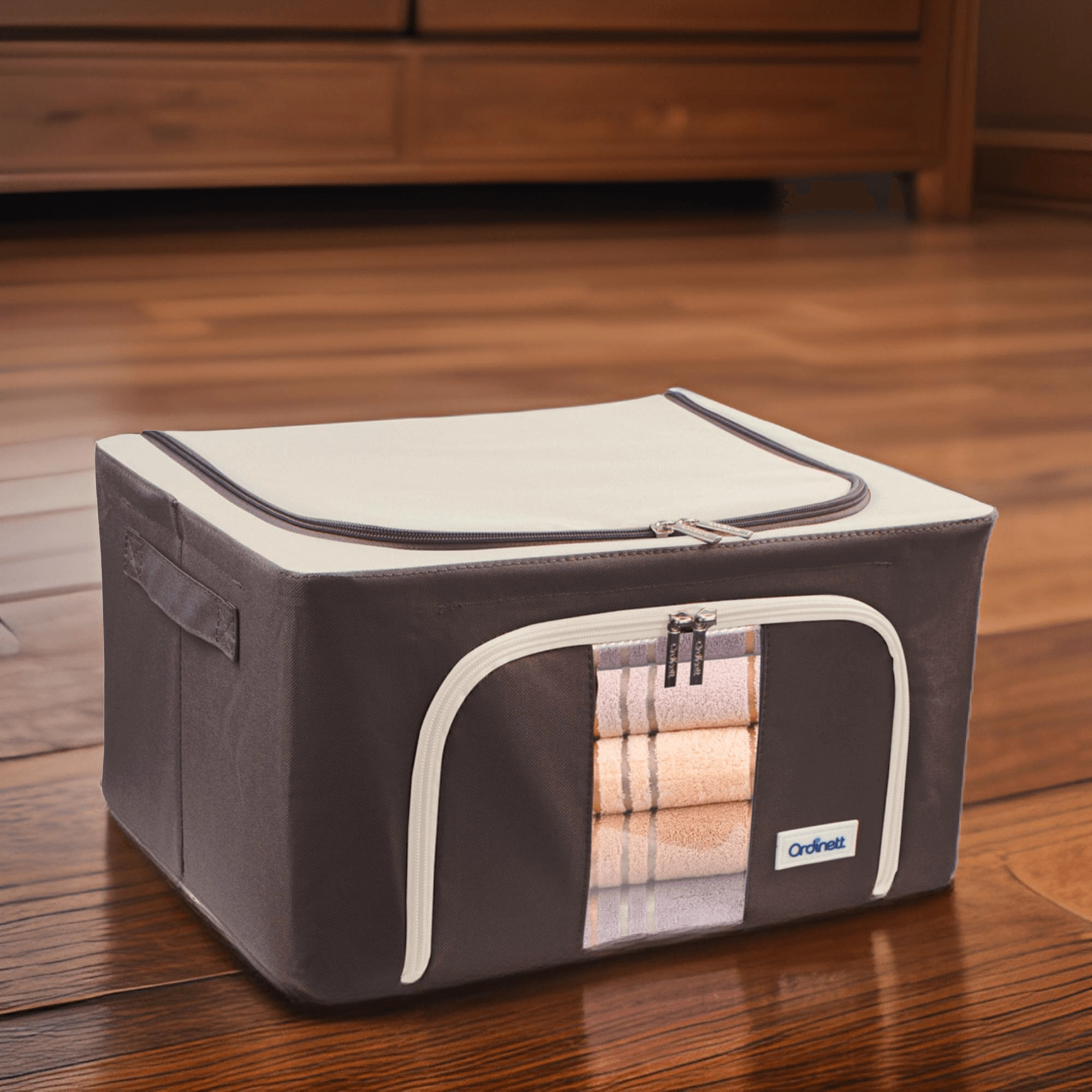 U zult ook het dubbele openen waarderen – een boven- en voorrits – voor snelle toegang vanaf een plank of onder het bed. Zijhandgrepen maken het hanteren en dragen gemakkelijker. De tijdloze kleurstelling past in de kleedkamer, slaapkamer, woonkamer en kinderkamer.