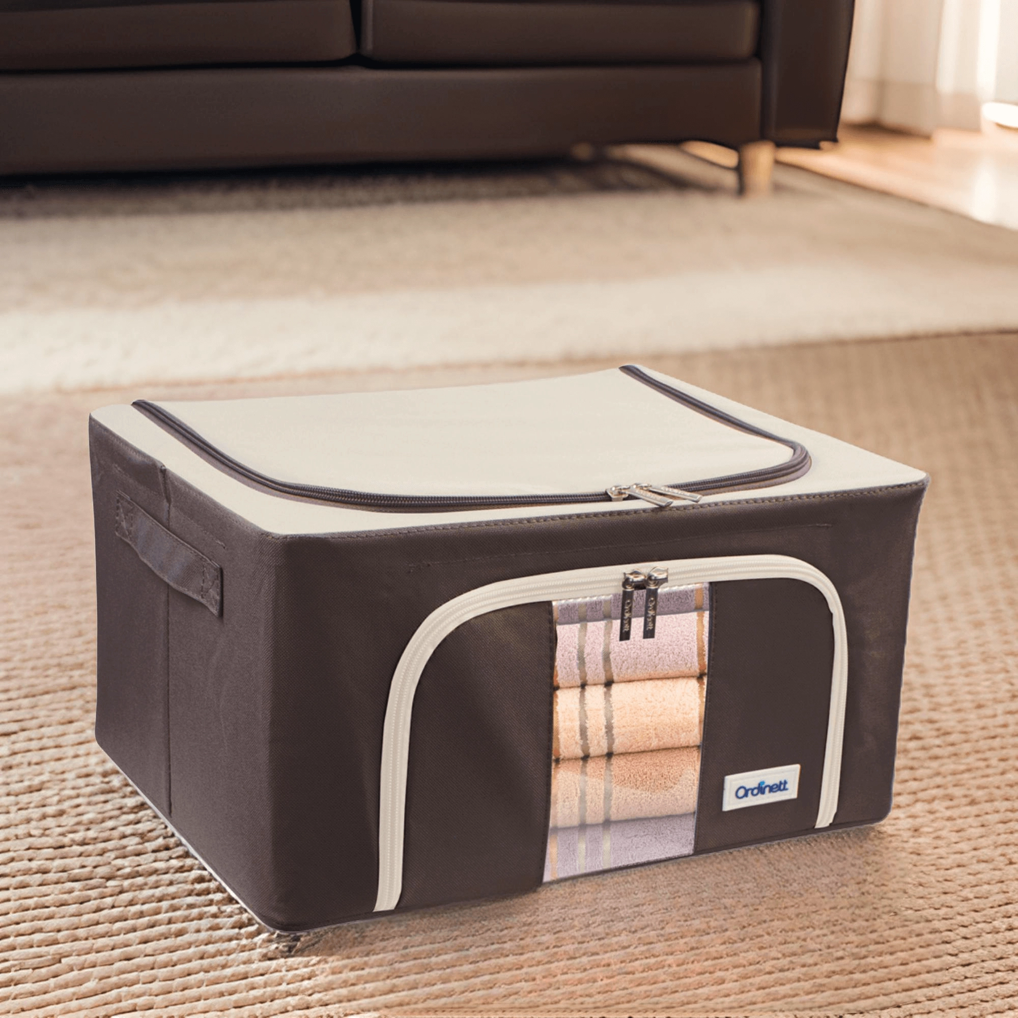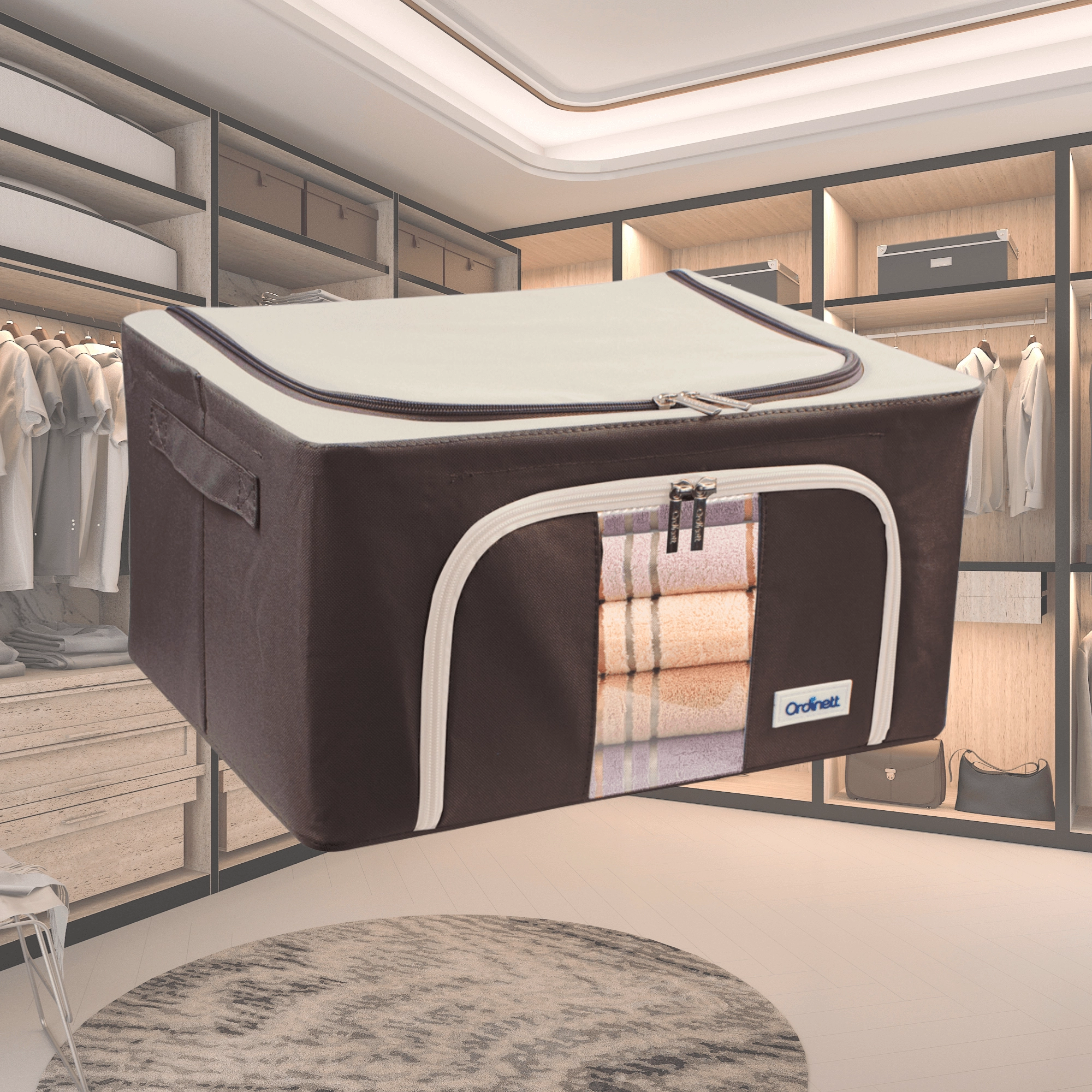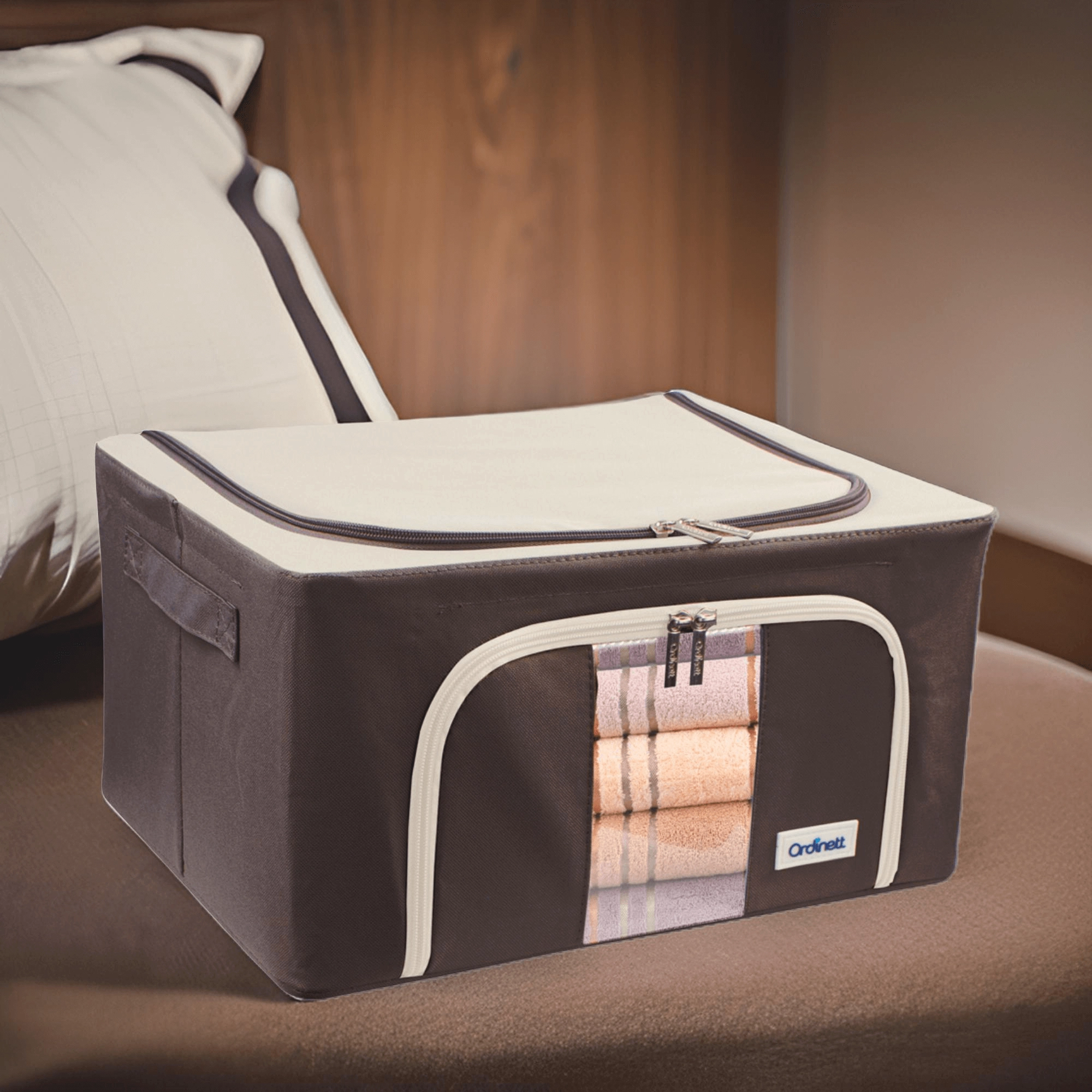 U zult ook het dubbele openen waarderen – een boven- en voorrits – voor snelle toegang vanaf een plank of onder het bed. Zijhandgrepen maken het hanteren en dragen gemakkelijker. De tijdloze kleurstelling past in de kleedkamer, slaapkamer, woonkamer en kinderkamer.