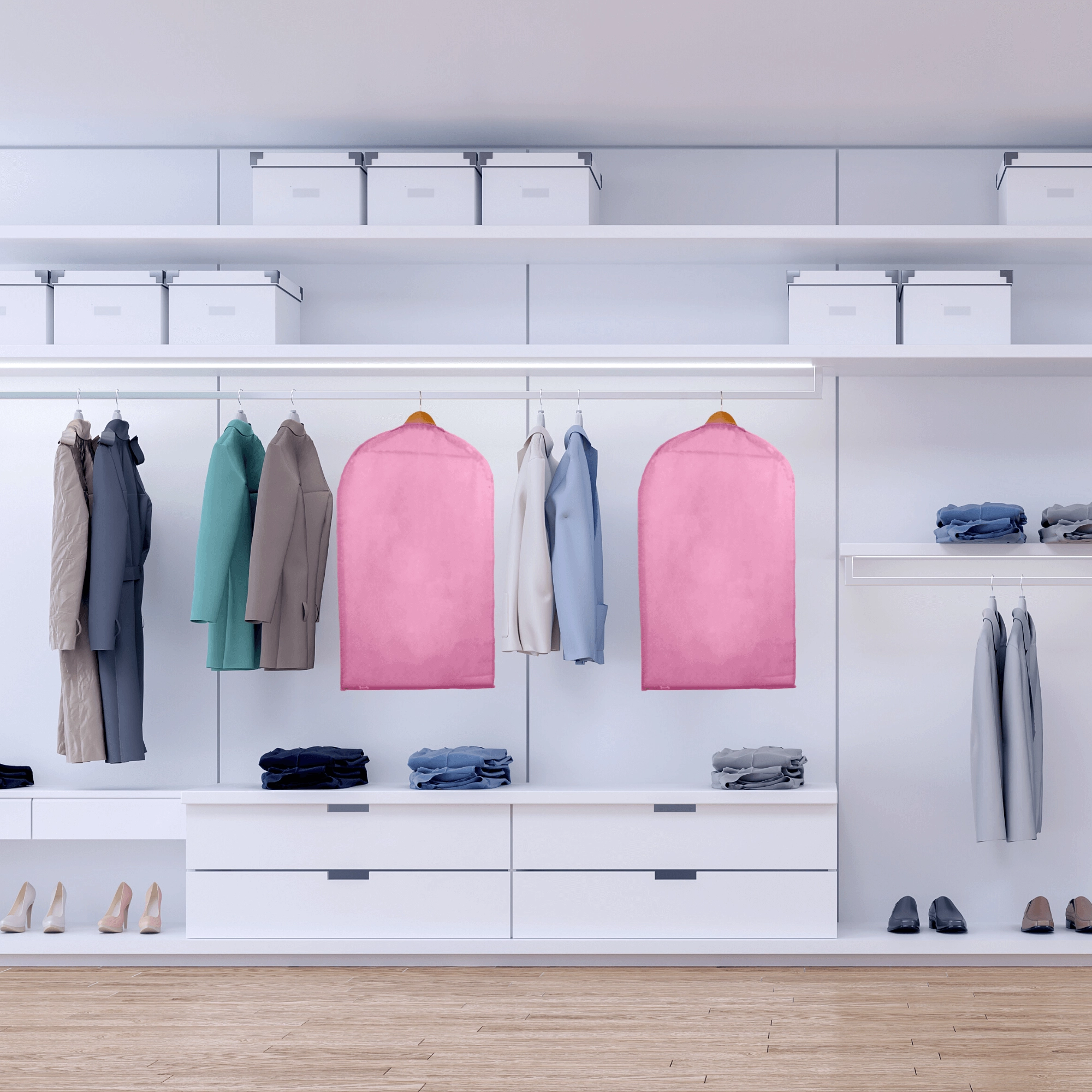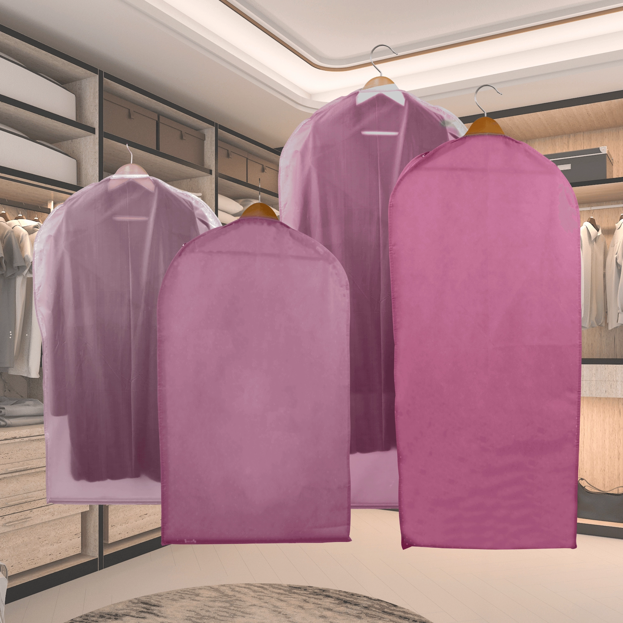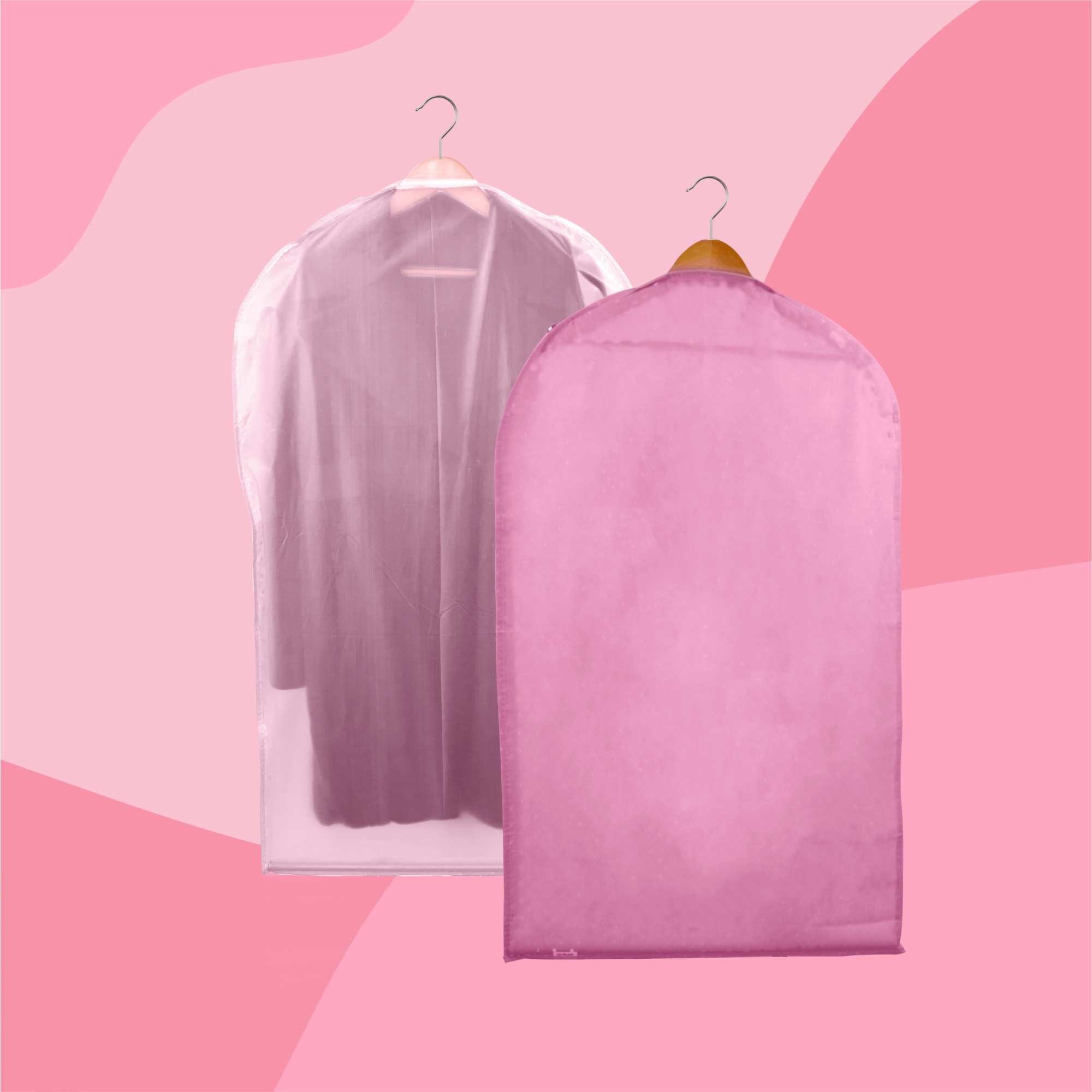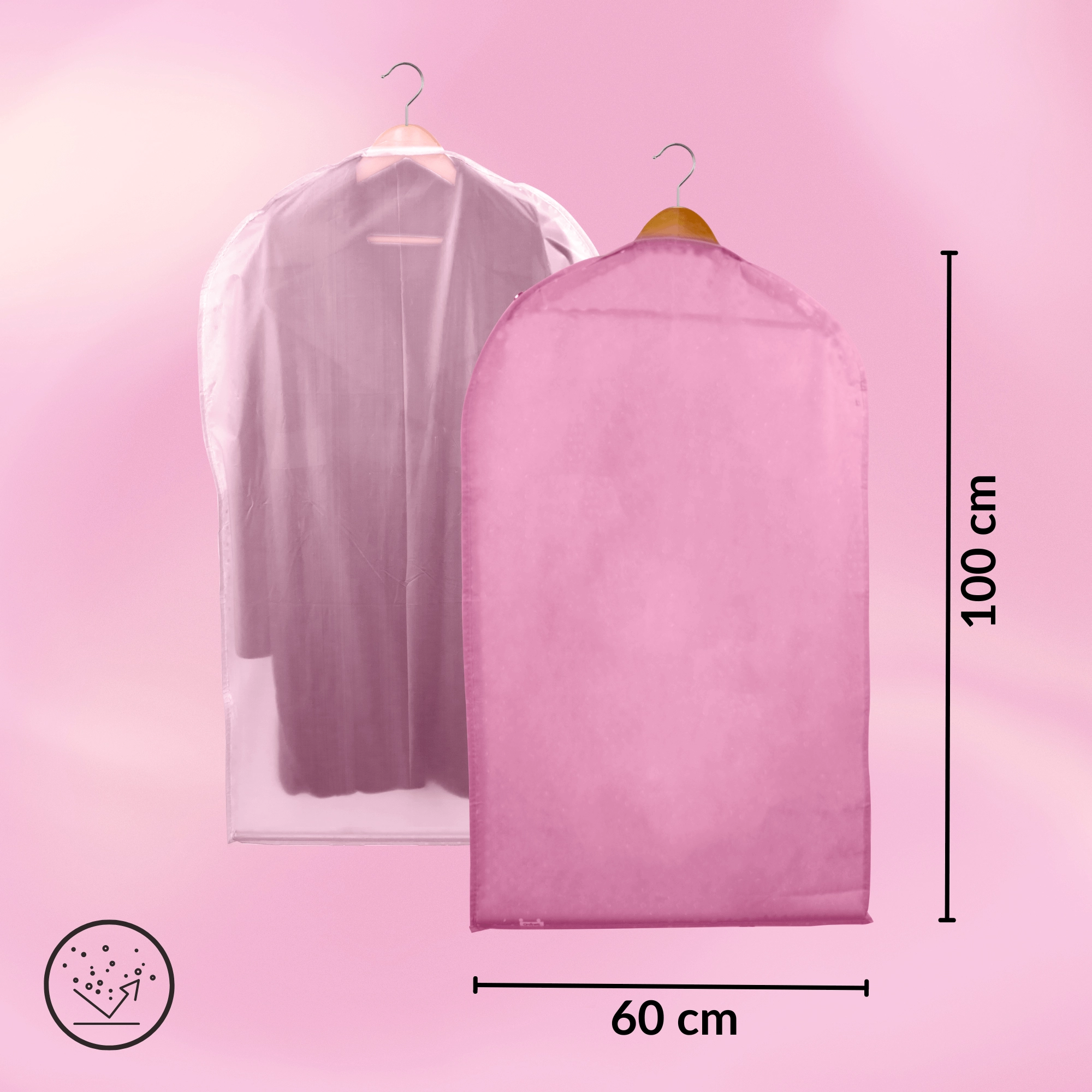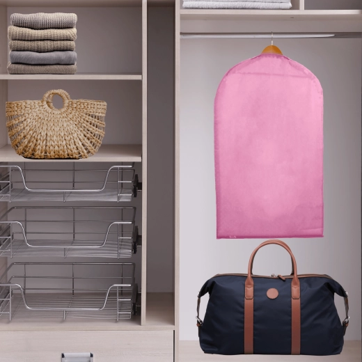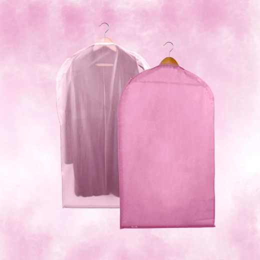 Houd je kledingkast perfect geordend en je kleding als nieuw. Deze roze hoes van hoogwaardige non-woven stof beschermt tegen stof en vuil, heeft een praktische ritssluiting over de volledige lengte en een bovenste opening voor een hanger. Dankzij de halftransparante voorkant vind je snel wat je nodig hebt. Ideaal voor jurken, jassen en overhemden – bescherming tegen stof, snel overzicht van de inhoud, eenvoudig op te hangen.