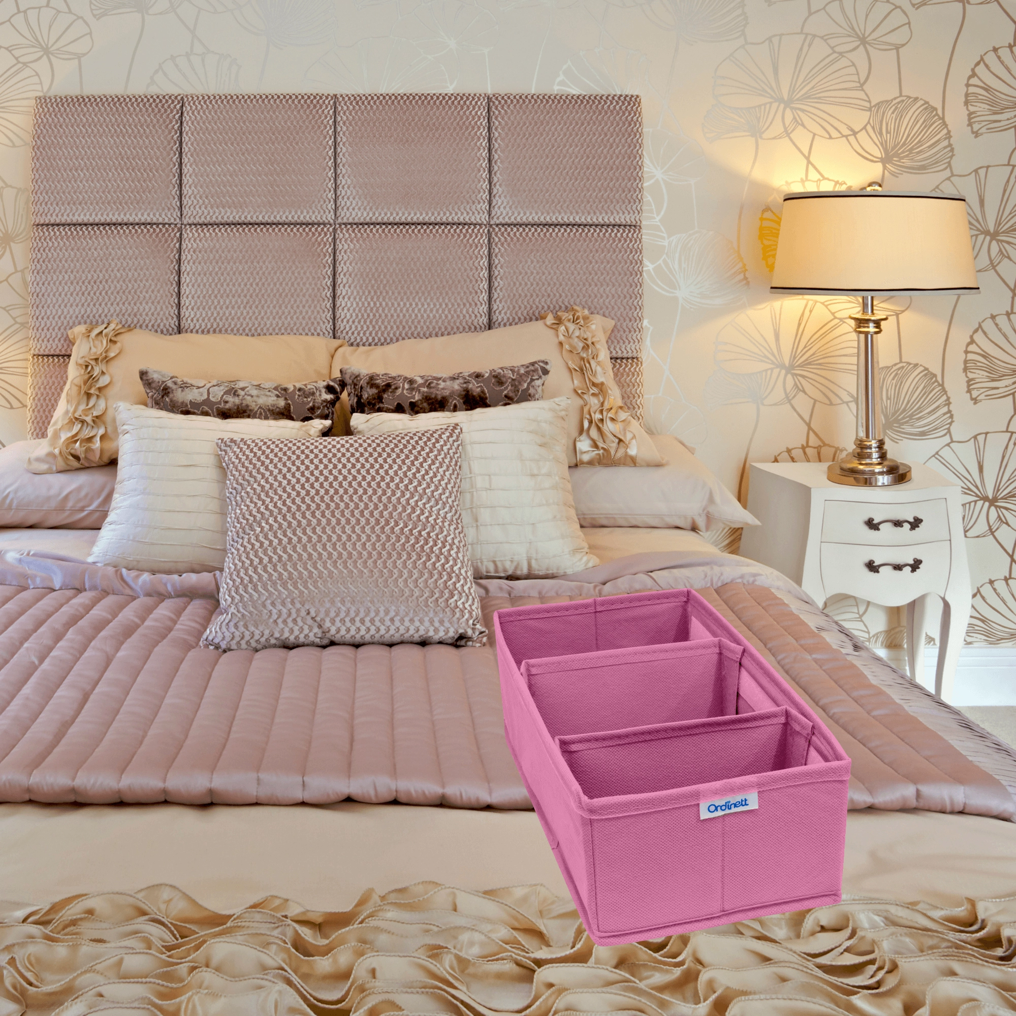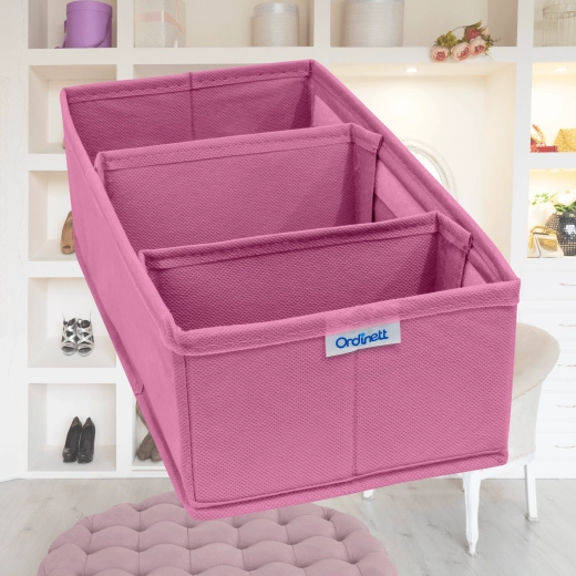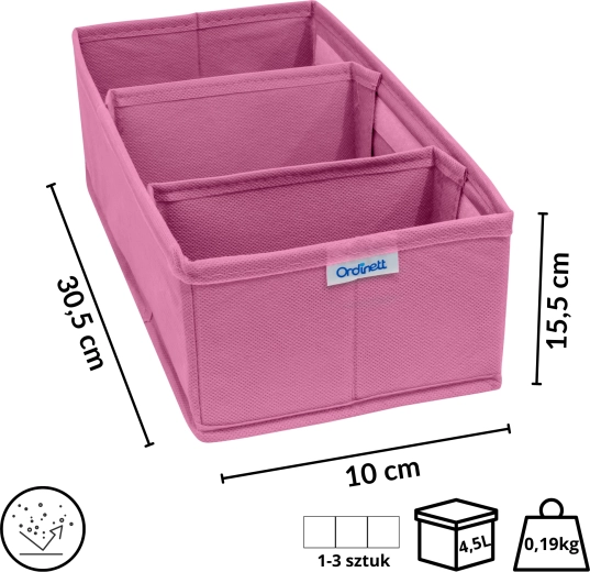 Breng voorgoed orde in je lade. De textiele organizer BLOSSOM in het roze biedt 3 overzichtelijke vakken, een opvouwbare constructie en duurzame non-woven stof die stof afstoot. Ideaal voor sokken, ondergoed, cosmetica en accessoires en past in de meeste lades.