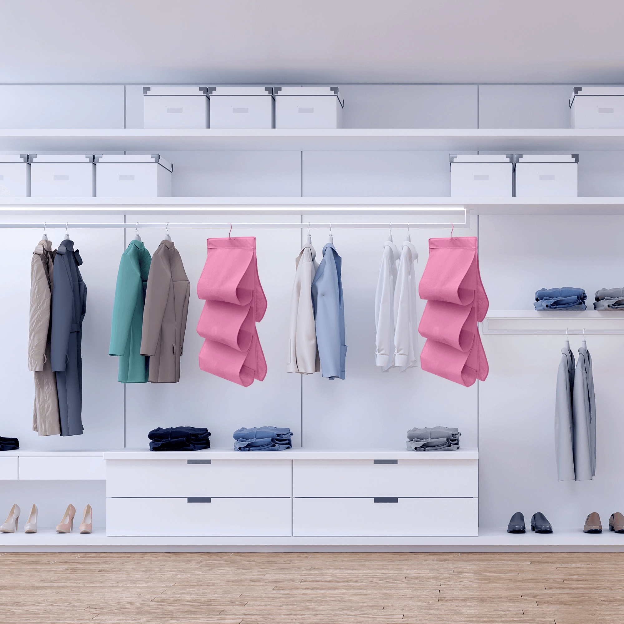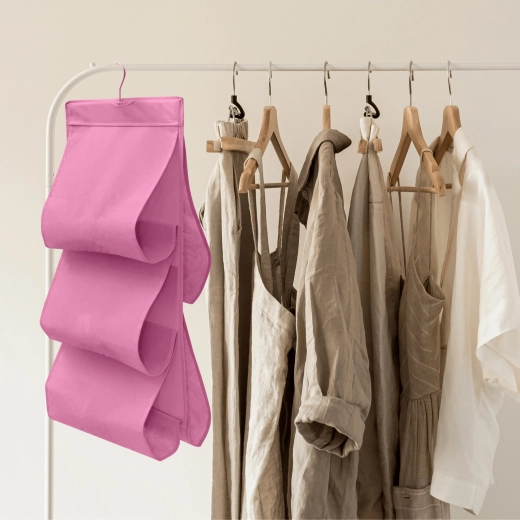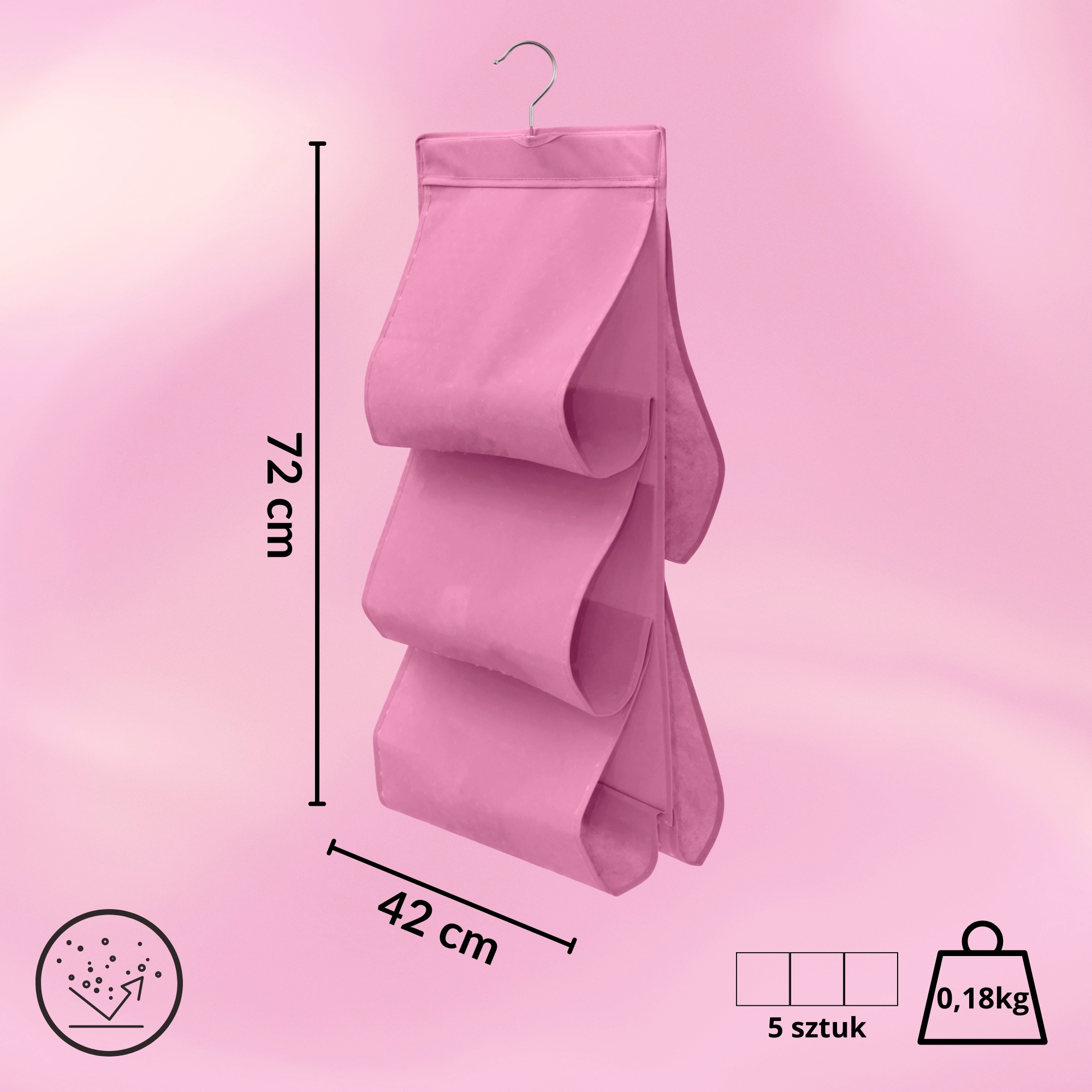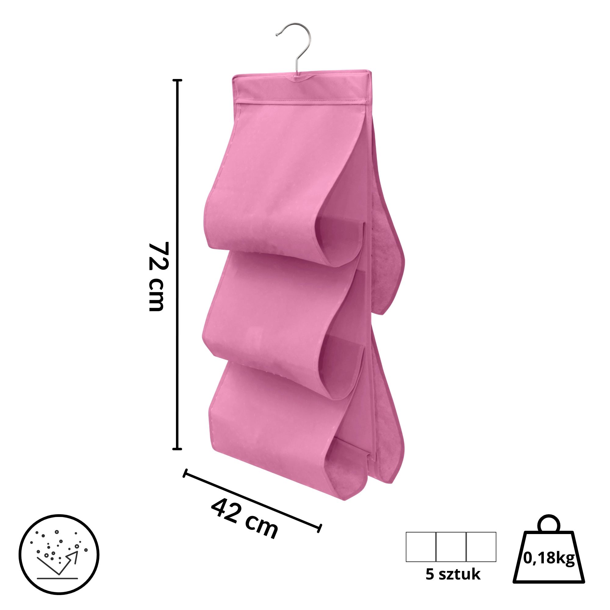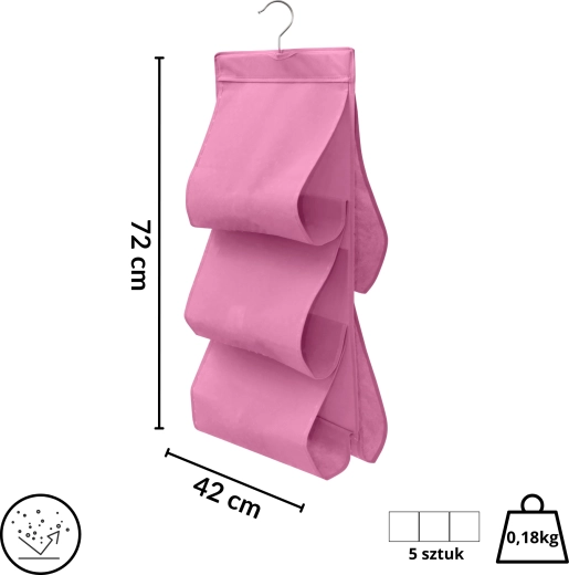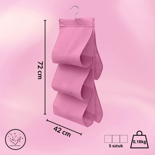 De hangorganizer Blossom is een slimme oplossing voor het overzichtelijk opbergen van handtassen en kleine modeaccessoires. Dankzij de verticale indeling met 5 vakken benut je de ruimte aan de kledingroede maximaal en heb je alles binnen handbereik. De metalen haak zorgt voor snel ophangen en verplaatsen.