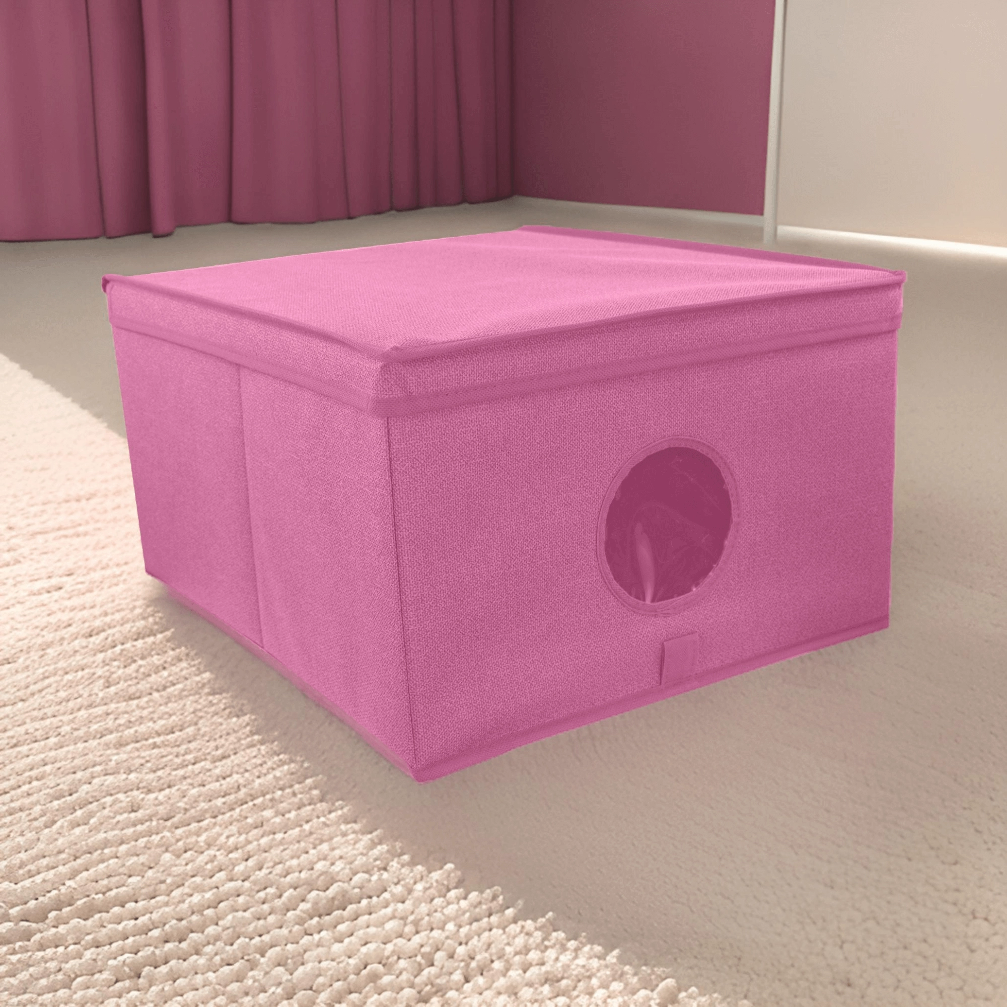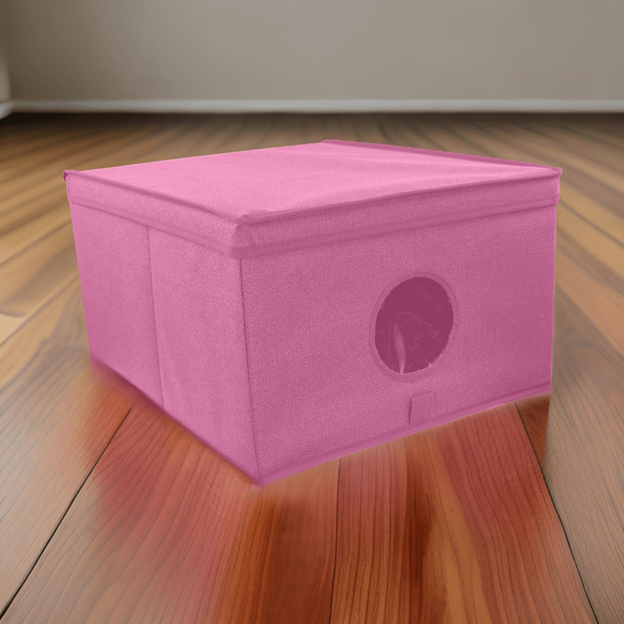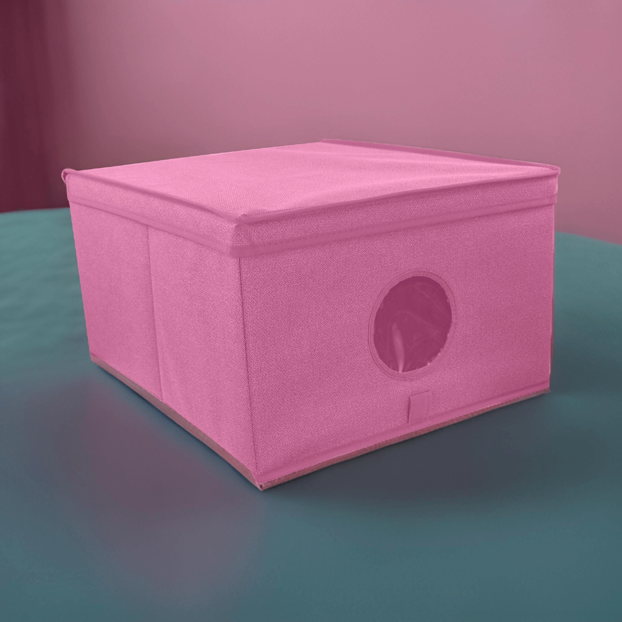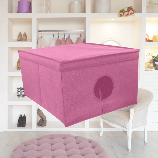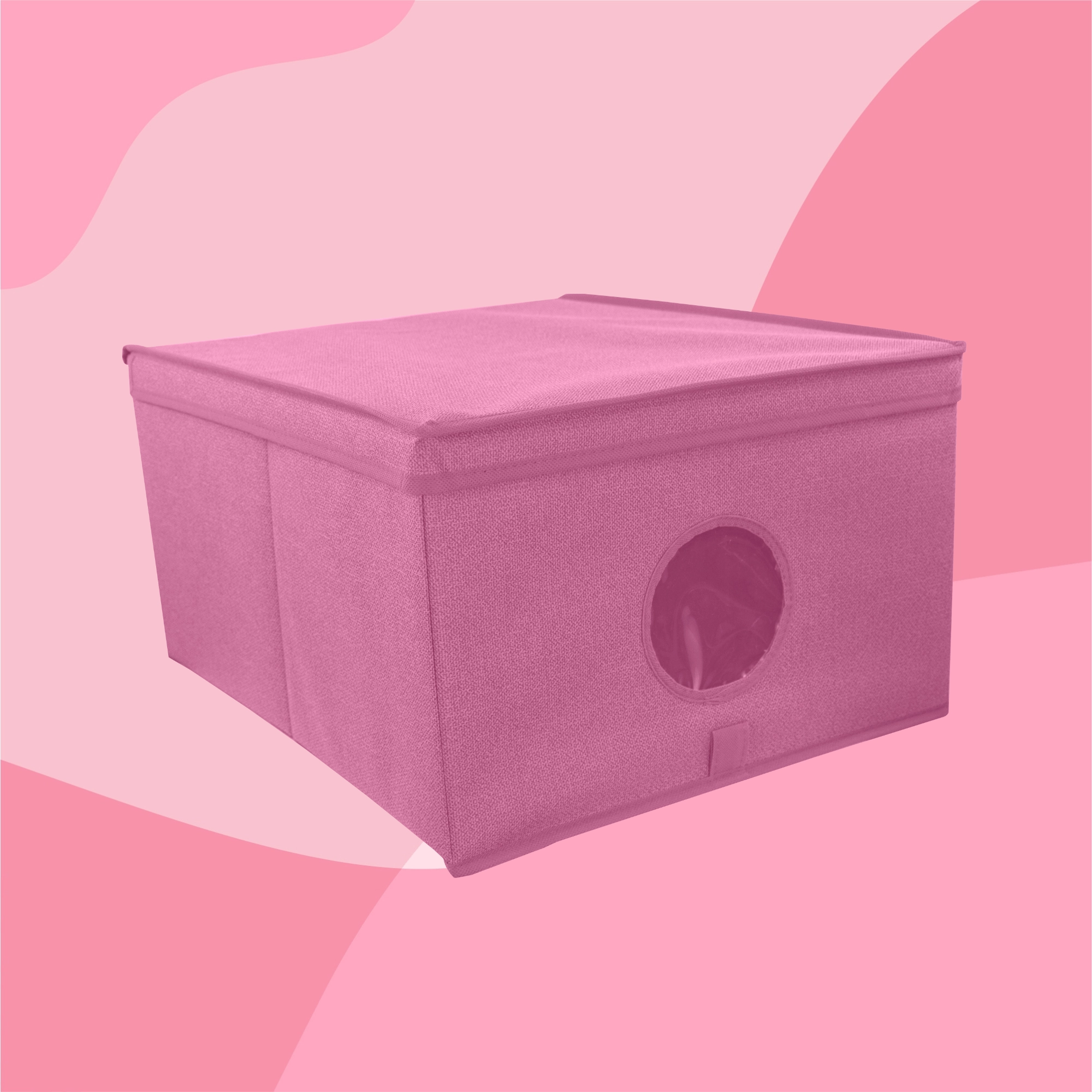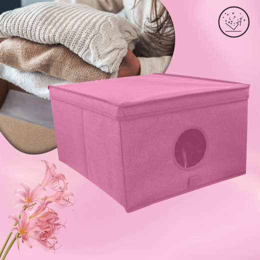 Breng orde en stijl in je opbergruimtes. De roze textielbox met deksel combineert een elegante look met praktische organisatie. Het transparante venster aan de voorkant geeft direct zicht op de inhoud zonder te hoeven openen.