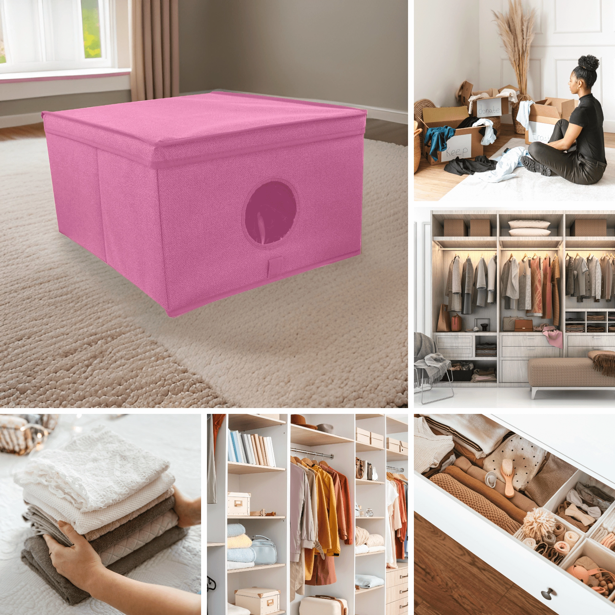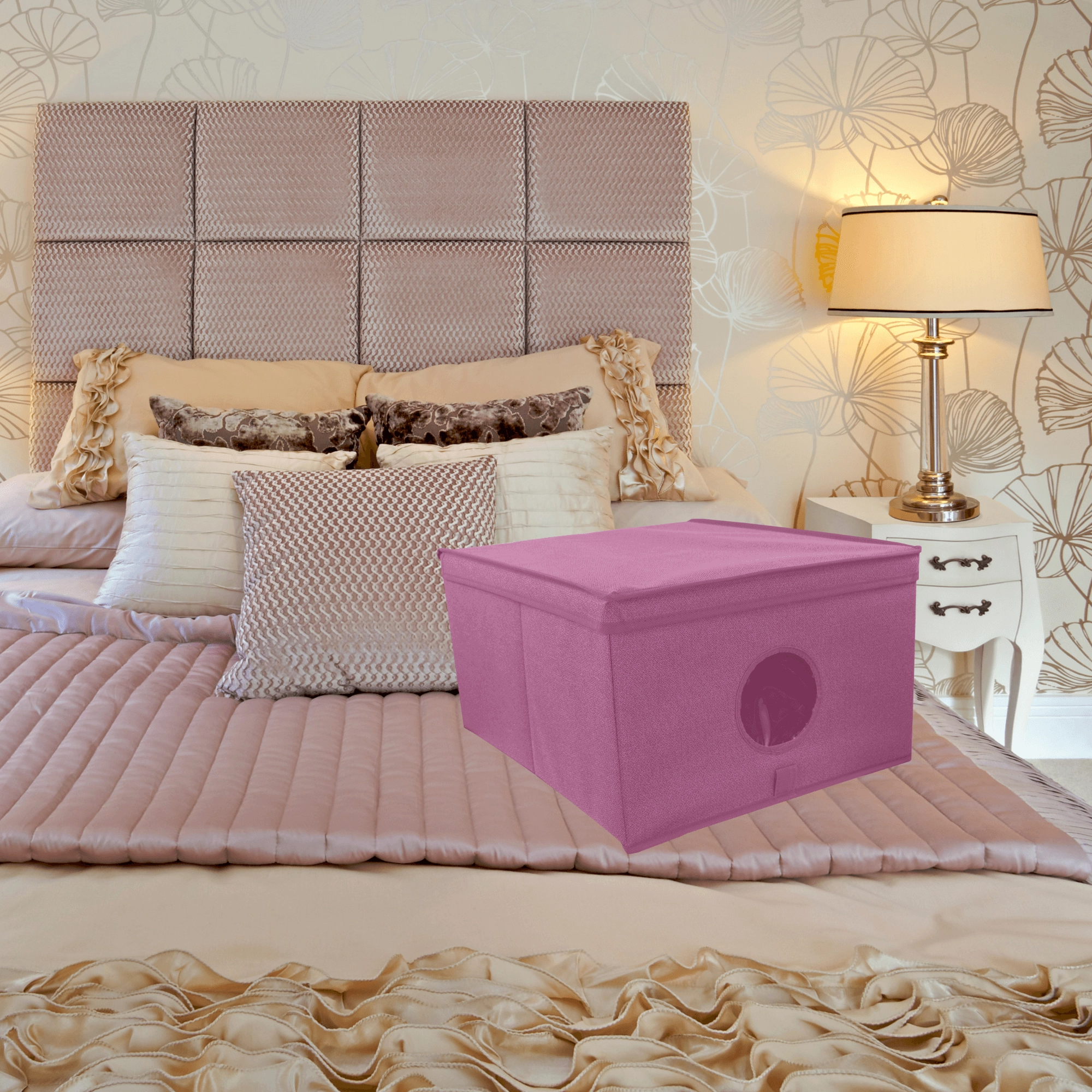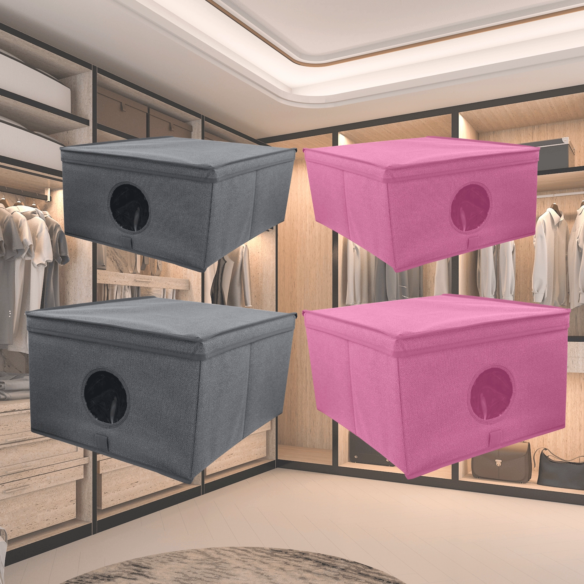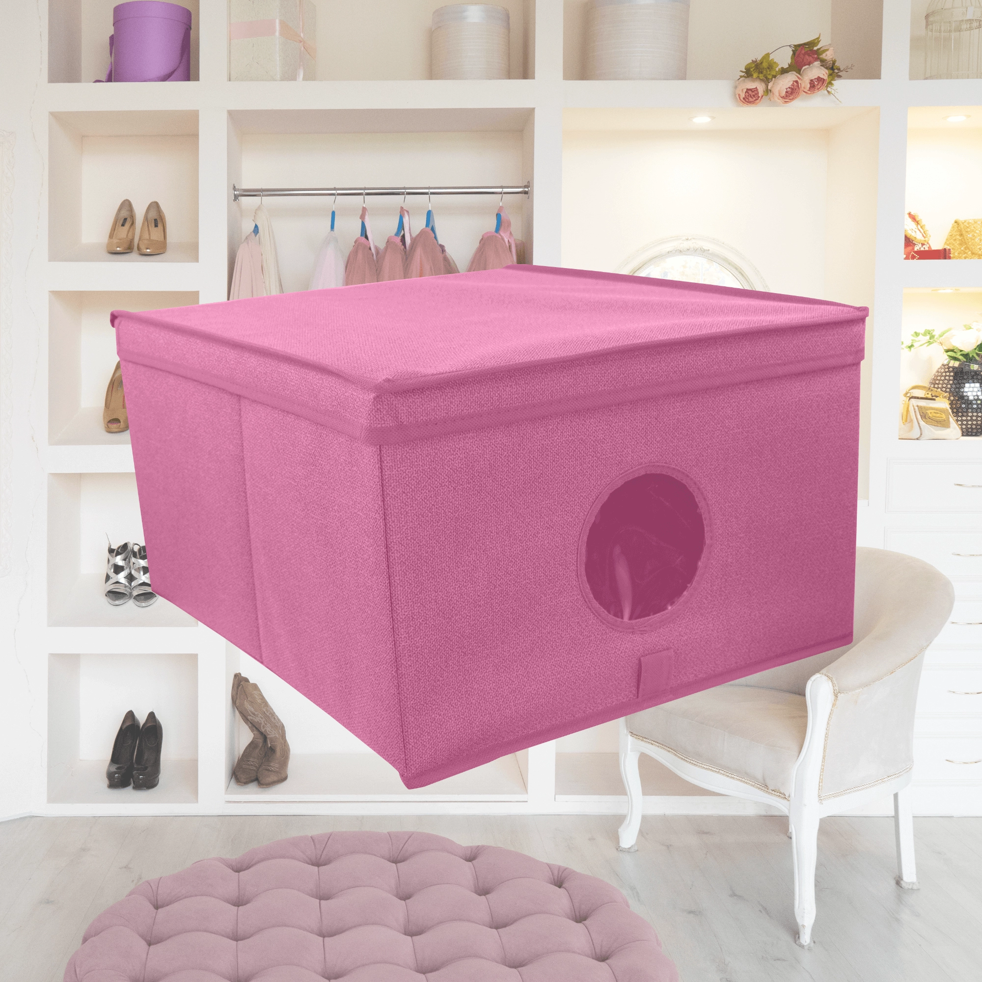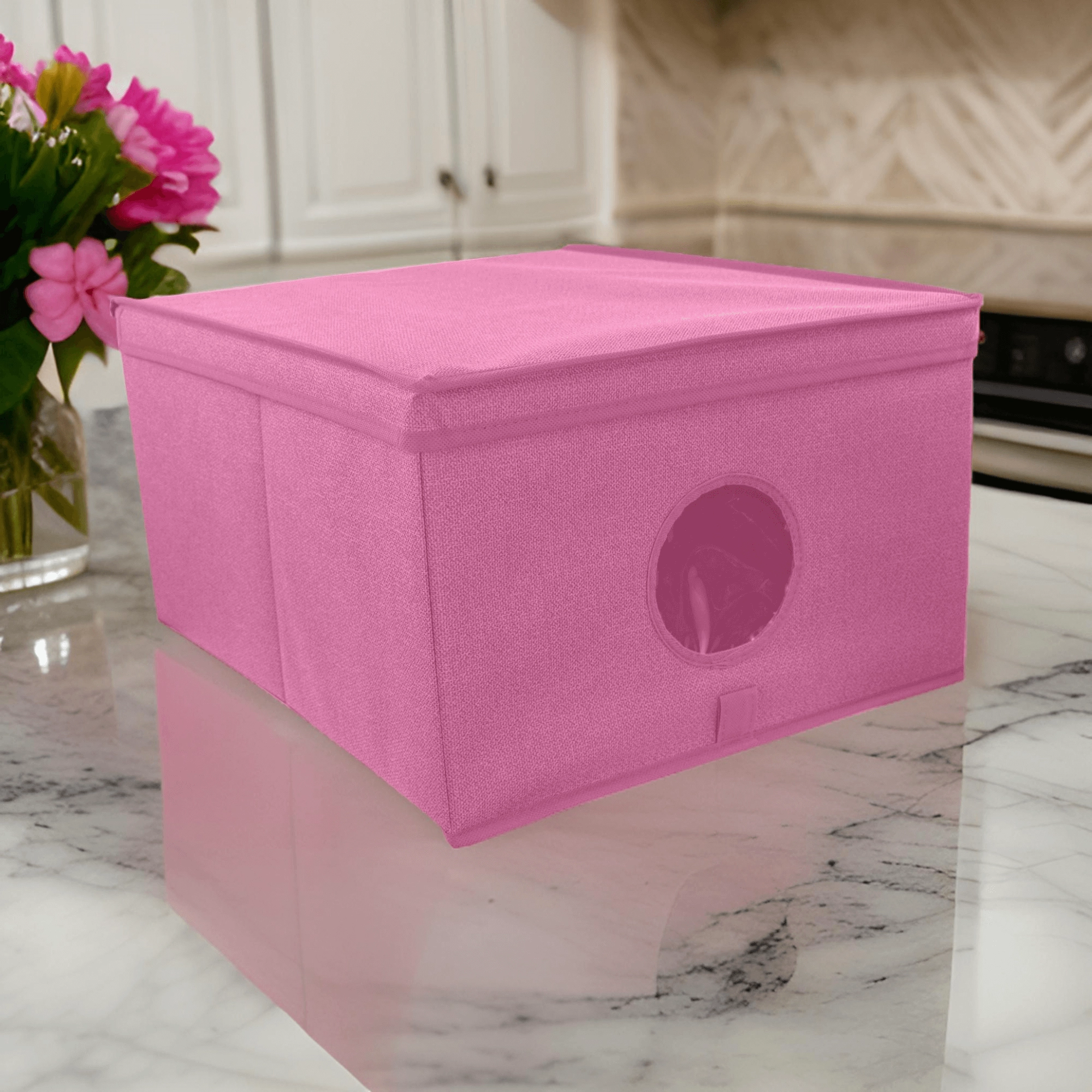 Breng orde en stijl in je opbergruimtes. De roze textielbox met deksel combineert een elegante look met praktische organisatie. Het transparante venster aan de voorkant geeft direct zicht op de inhoud zonder te hoeven openen.