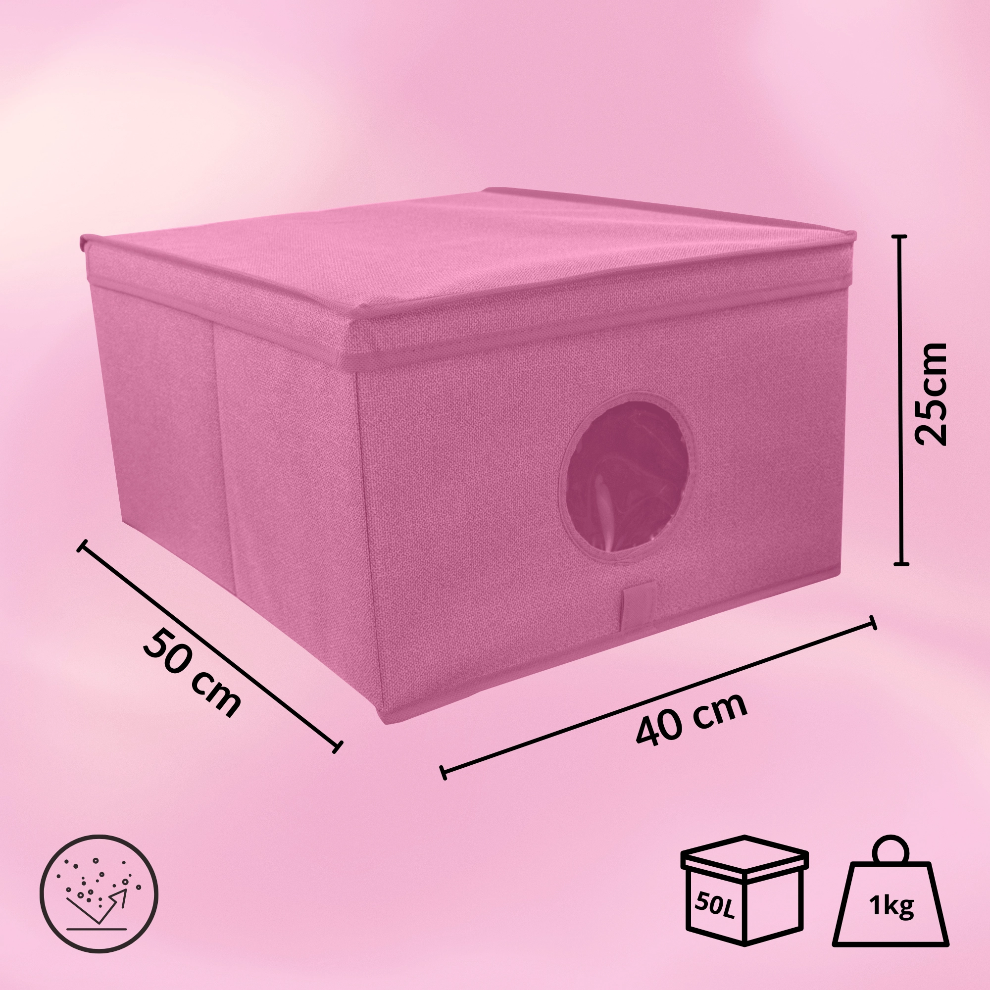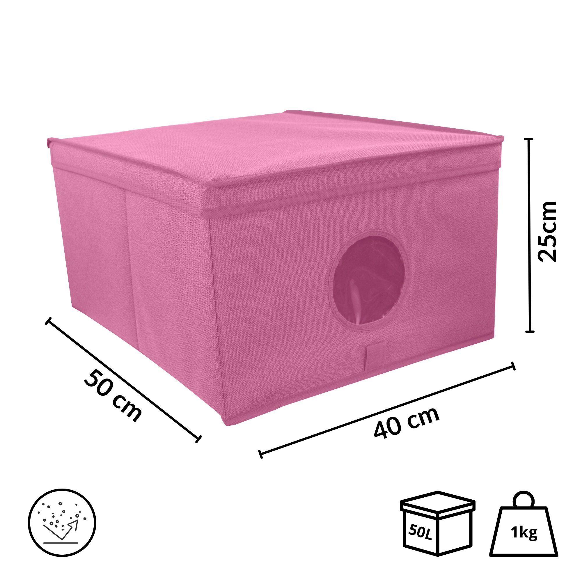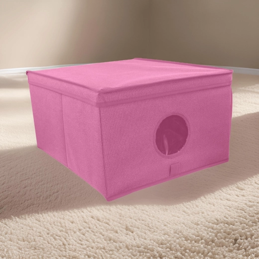 Houd je kledingkast en huis perfect overzichtelijk met deze roze opbergbox met deksel en transparant venster. Dankzij de afmetingen 50 × 40 × 25 cm past er comfortabel kleding, beddengoed, speelgoed en accessoires in. Het transparante venster laat je de inhoud snel controleren, het deksel beschermt tegen stof en de opvouwbare constructie bespaart ruimte wanneer je de box even niet gebruikt.