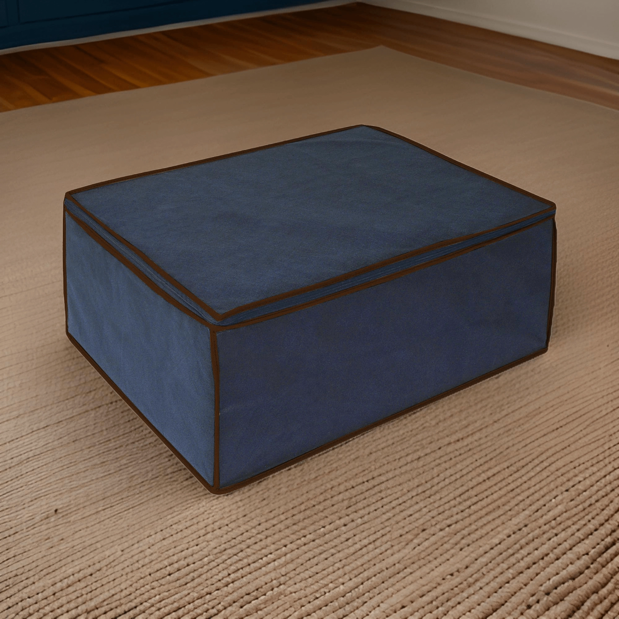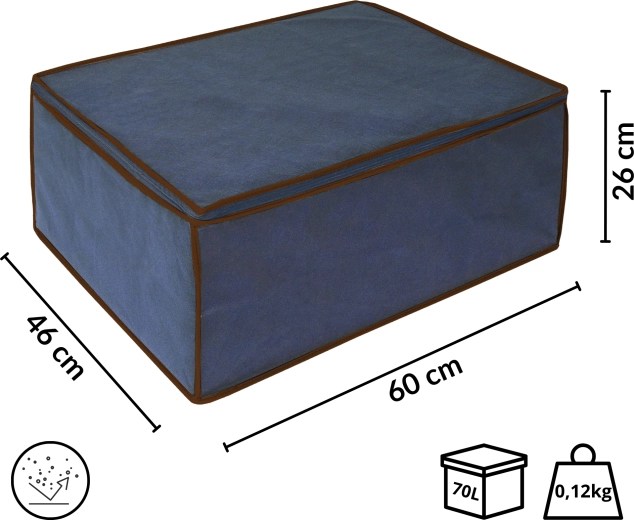 Breng orde in je kast en onder het bed met een praktische opbergbox van non-woven textiel. Dankzij de afmetingen 46 × 60 × 26 cm biedt hij plaats aan kleding, beddengoed en accessoires en houdt hij alles schoon. Het deksel met rits beschermt tegen stof, de lichte en opvouwbare constructie bespaart ruimte en het moderne donkerblauwe design past perfect in elk interieur.