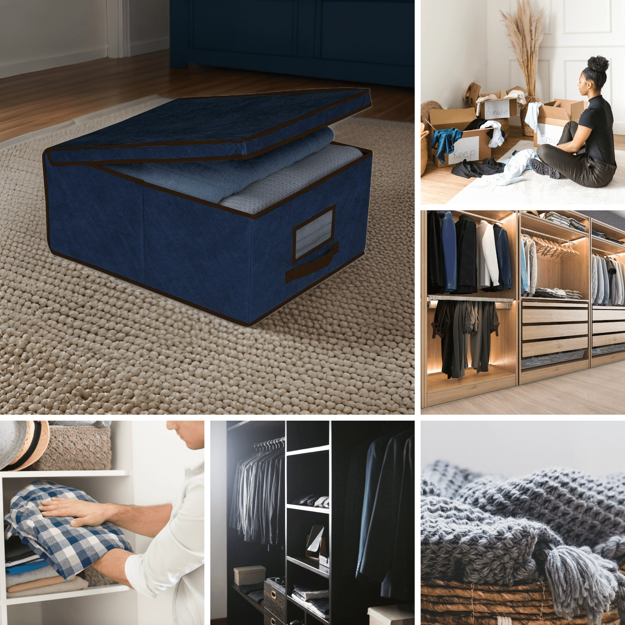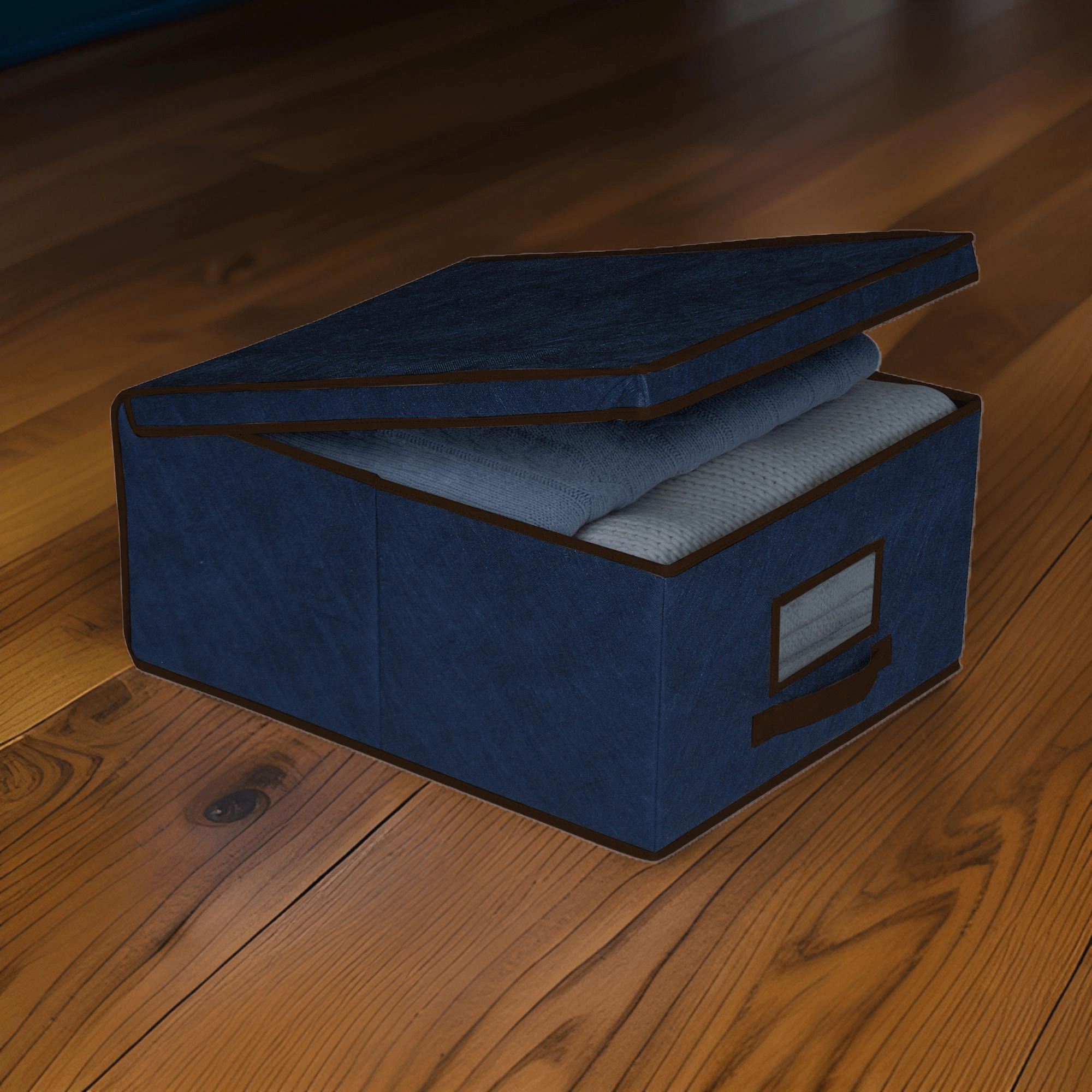 Het stevige deksel beschermt opgeborgen textiel tegen stof en houdt de kast overzichtelijk, ook wanneer meerdere boxen worden gestapeld.