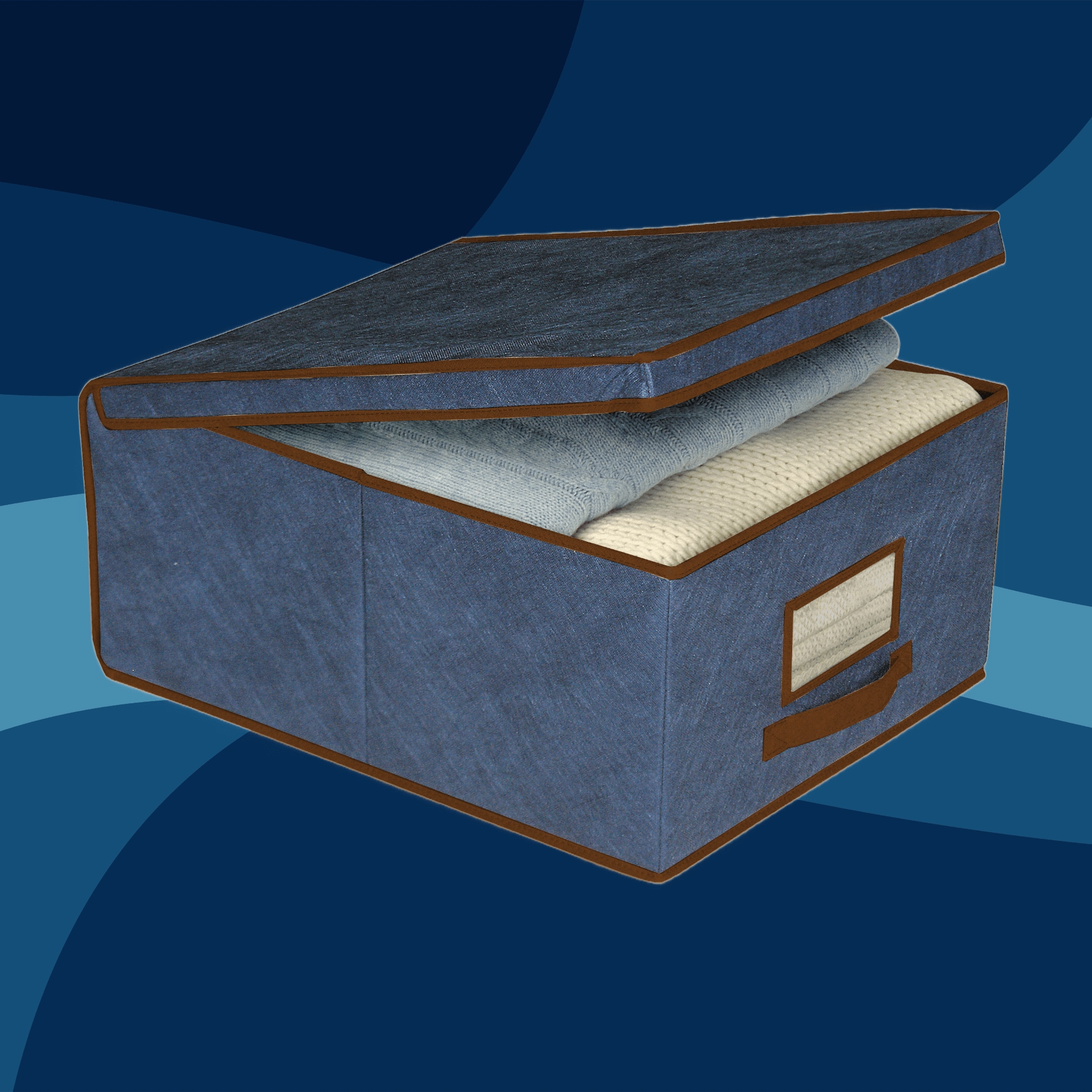 Textiele opbergbox met deksel en venster 50 × 40 × 25 cm, blauw
