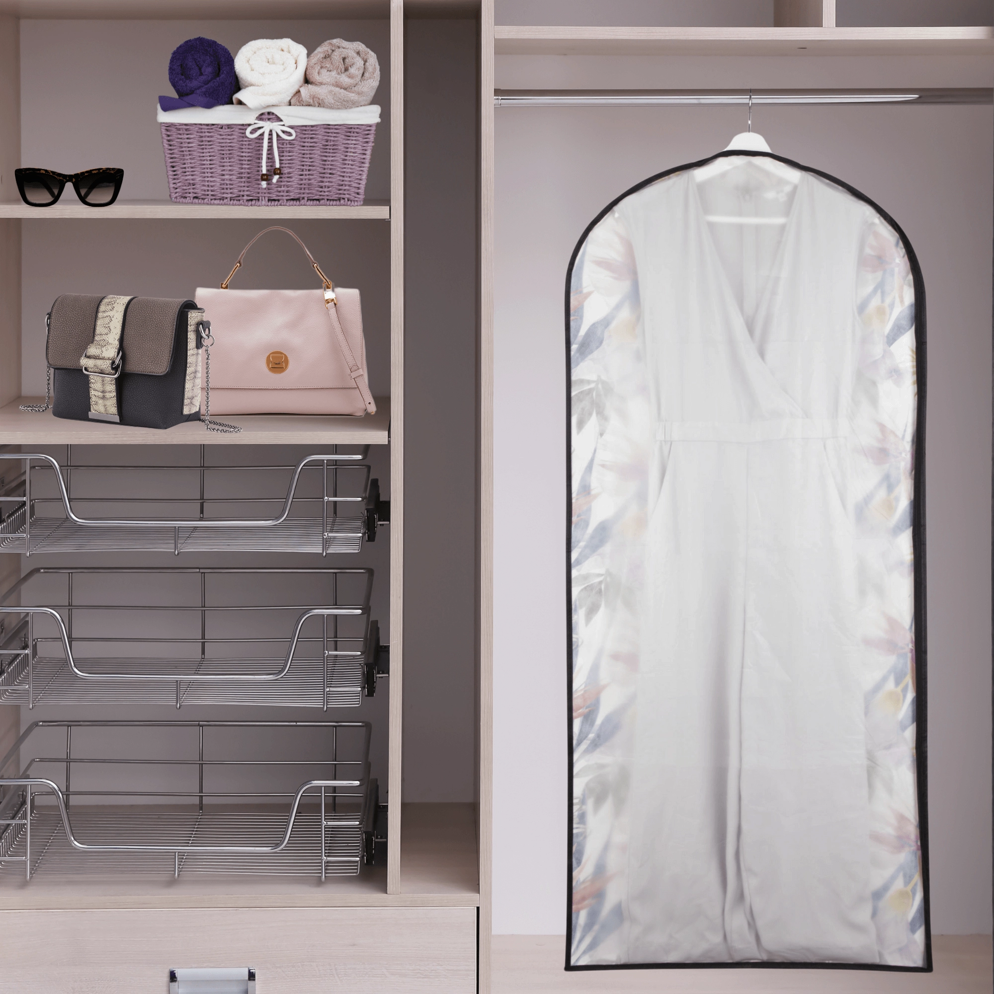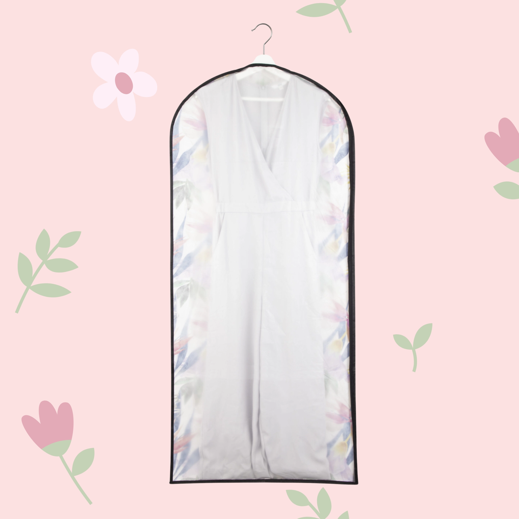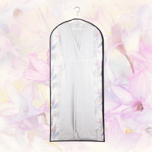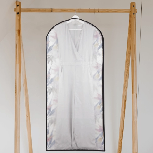 De vrolijke floral print maakt het interieur knus en verandert praktische kledingbescherming in een elegante accessoire.