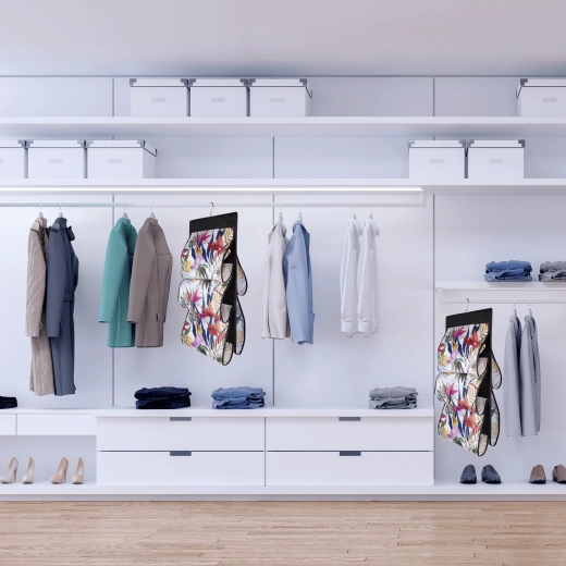 Installatie duurt slechts seconden – hang hem simpelweg aan de kledingroede. Het bloemmotief in levendige kleuren brengt frisheid en stijl in je garderobe, of je hem nu in de slaapkamer, inloopkast of hal plaatst.